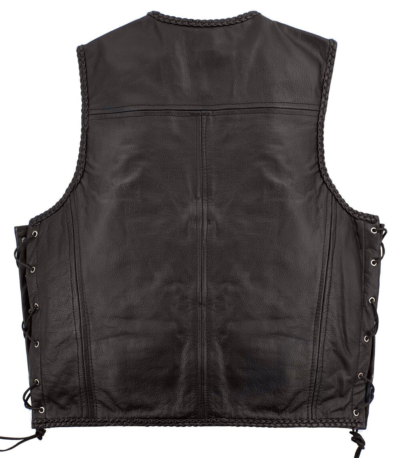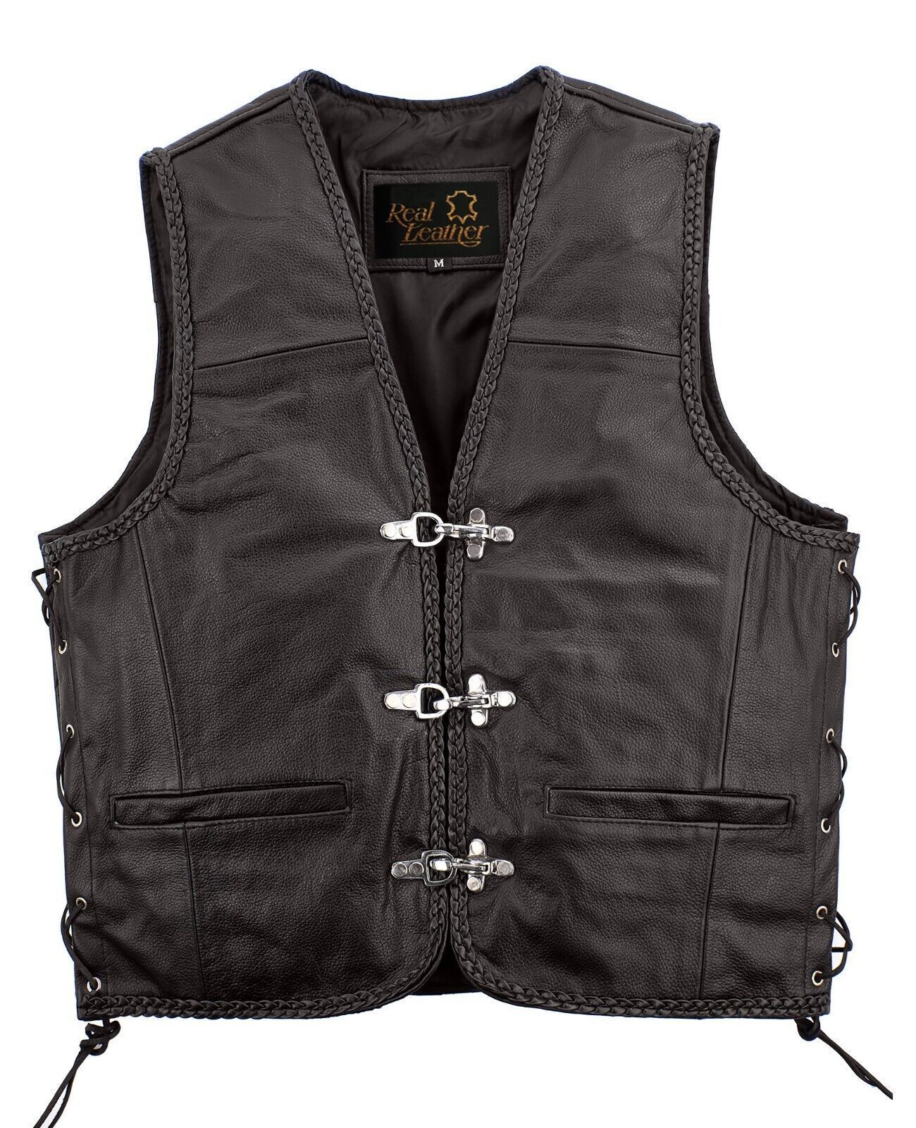 Herren Motorrad Biker Rindsleder Weste Club Weste Chopper Vest Braided Gr S 5XL