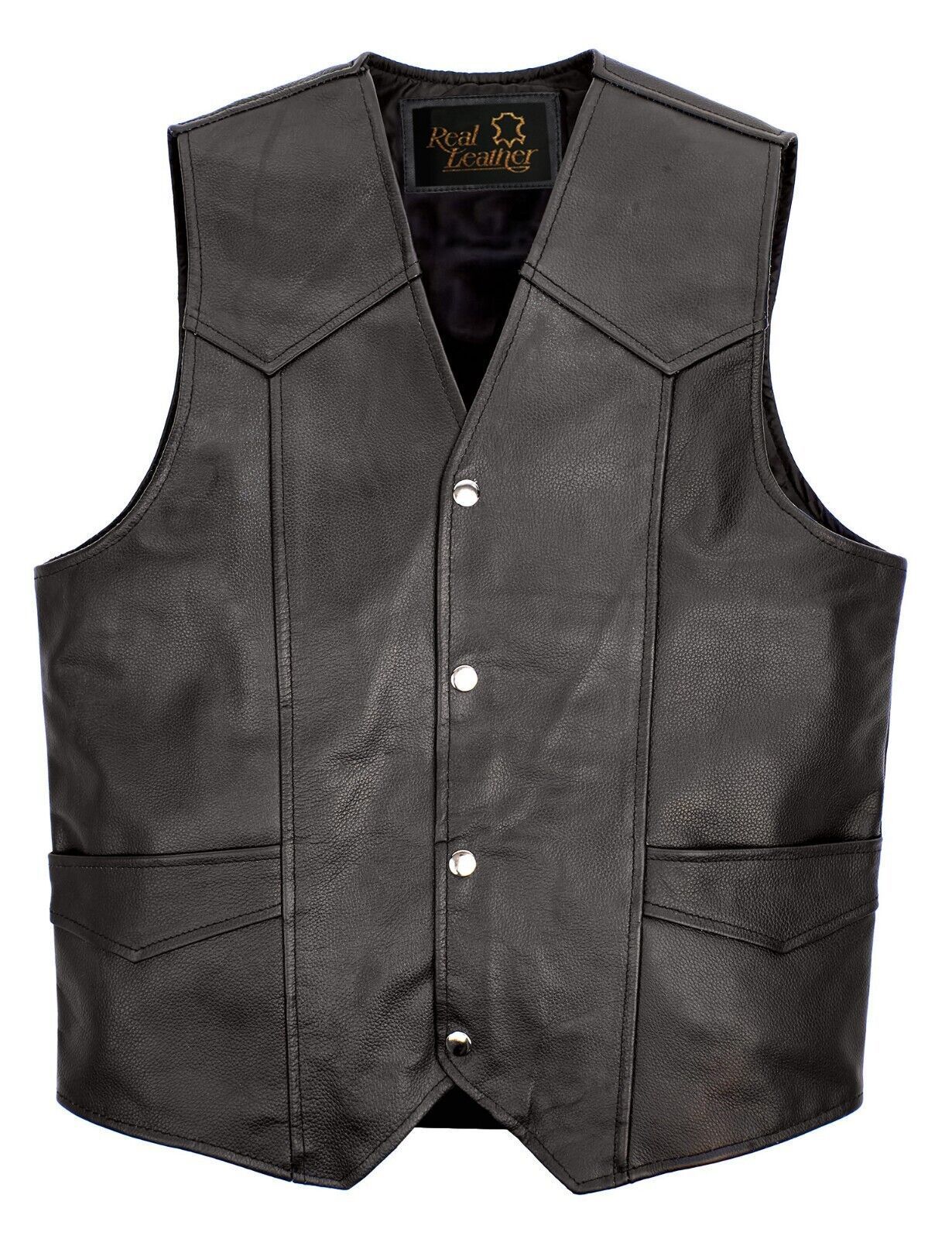 Herren Motorrad Biker Rindsleder Weste Club Weste Classic Plain Chopper Gr S 5XL