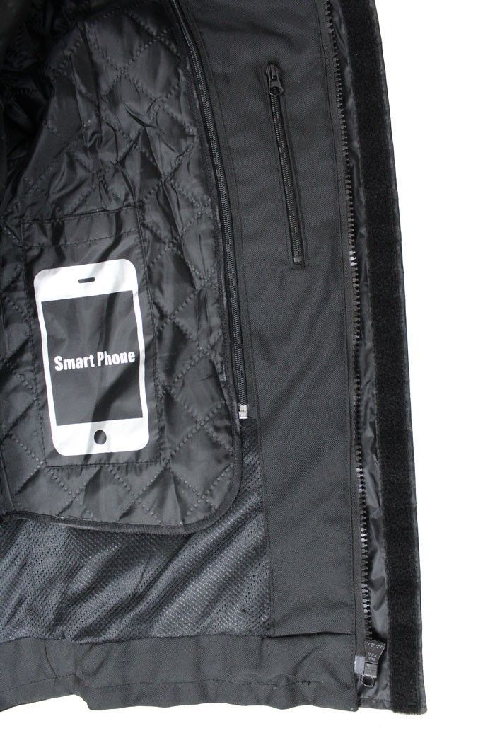 100 % Polyamid & Polyester Herausnehmbare Polyester Innerfutter & 2 Innen Taschen Herausnehmbare Protektoren an der Ellbogen Schulter & Rücken Belüftungsreißverschlüsse auf den Ärmel, Brust & Rücken Seitlich mit Reißverschluss verstellbar YKK Wasserfest Reißverschlüsse R eflektierend