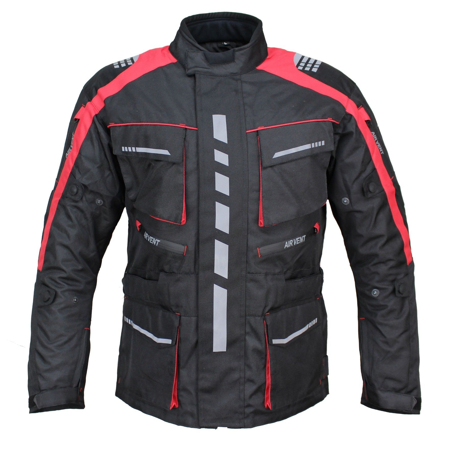 Herren Motorrad Textil Jacke Biker Polyester Sport Touring Jacke mit Protektoren Rot