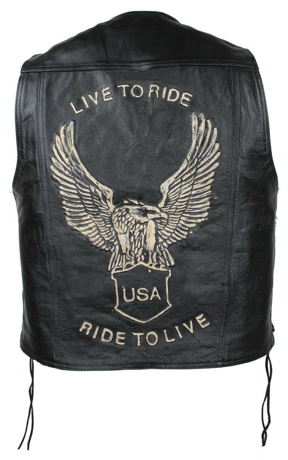 Herren Motorrad Weste Ride to Live Lederweste Bikerkutte Custom Lederkutte