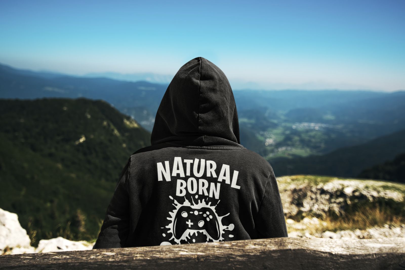 Herren Natural Born Gamer Killer Player Kapuenjacke Geek Nerd Pullover Merch