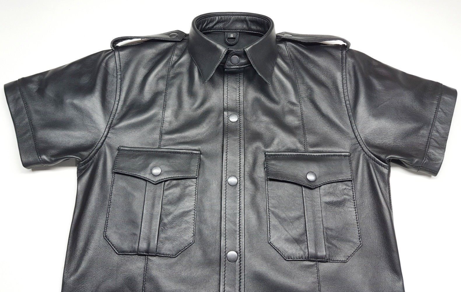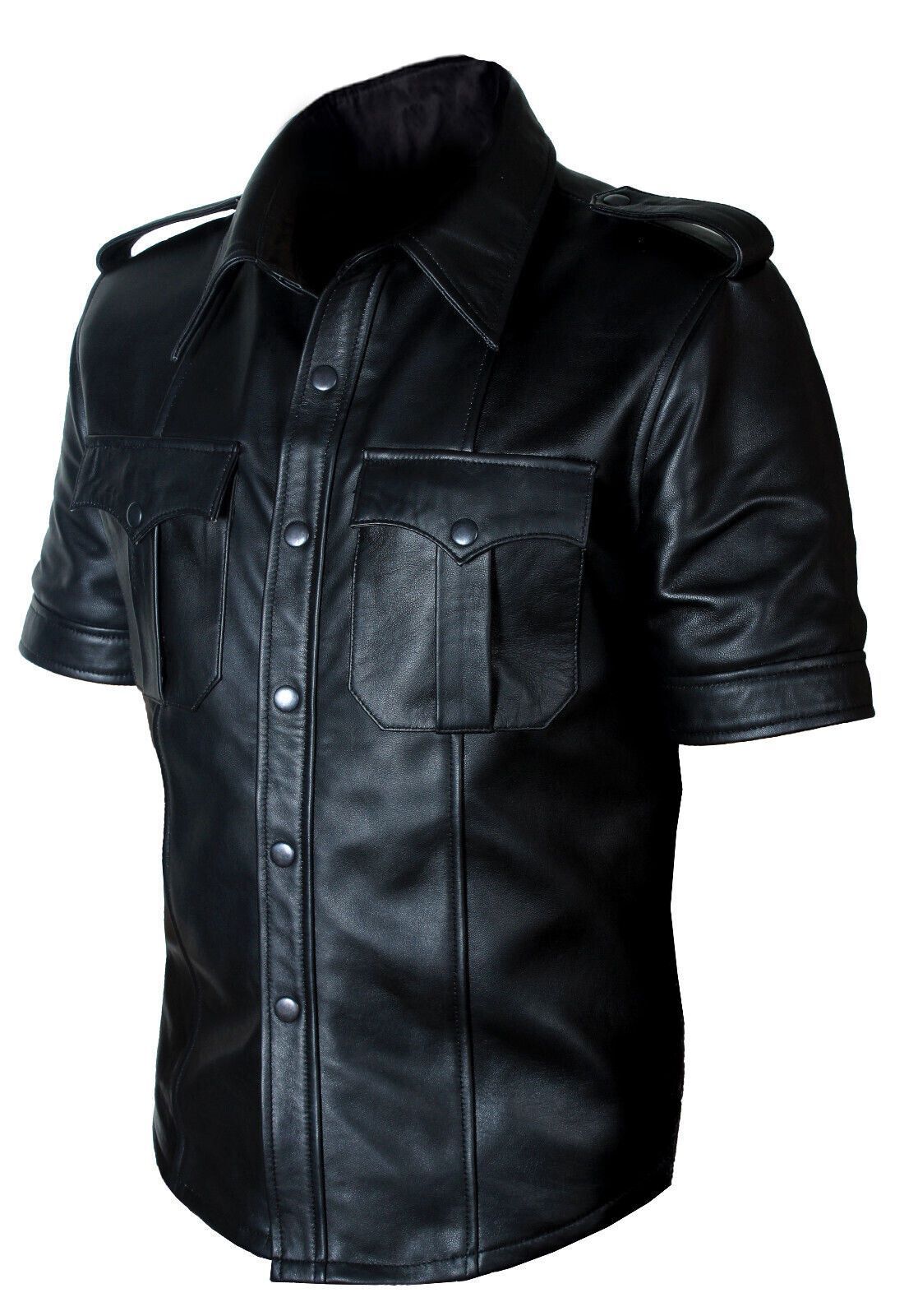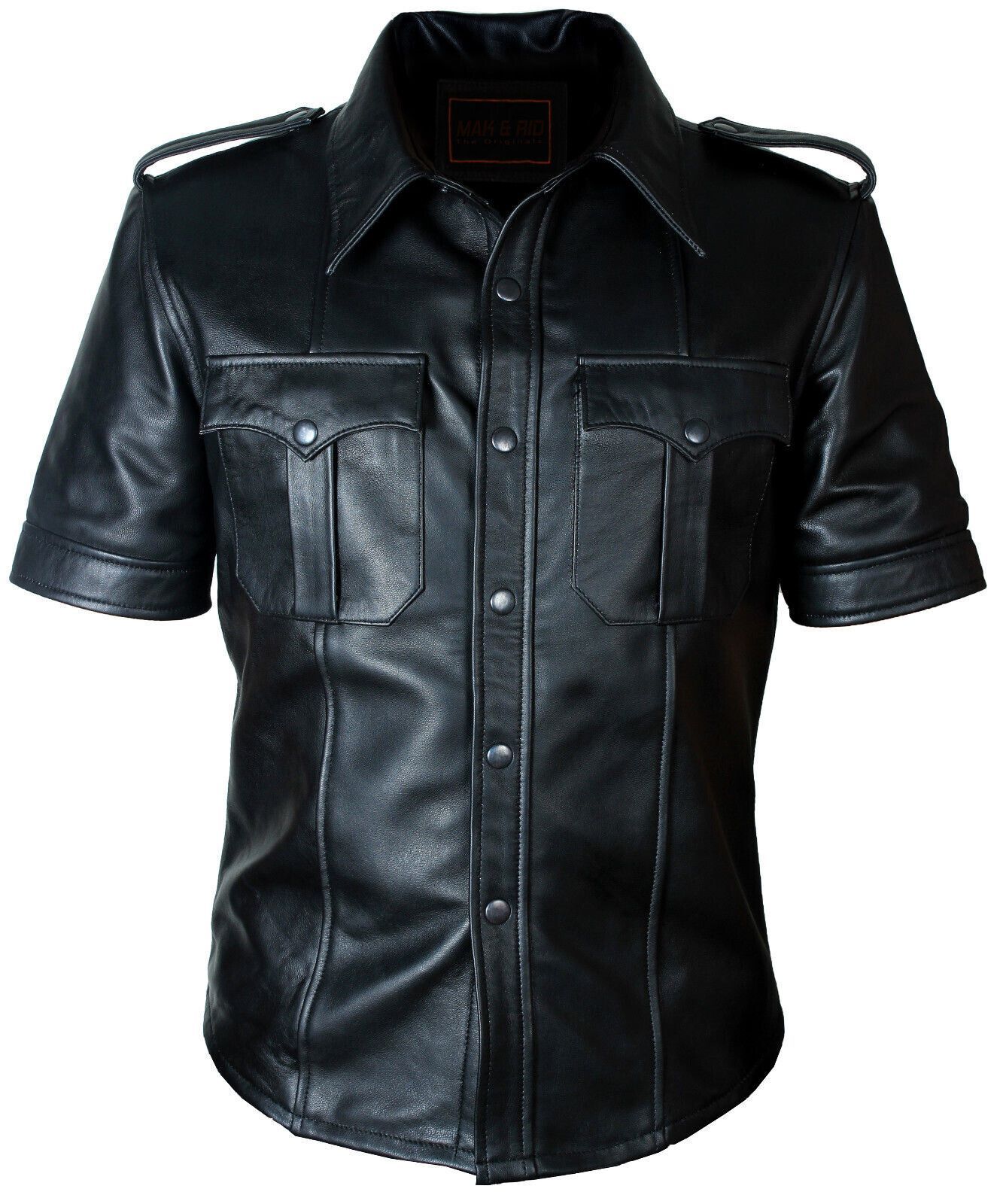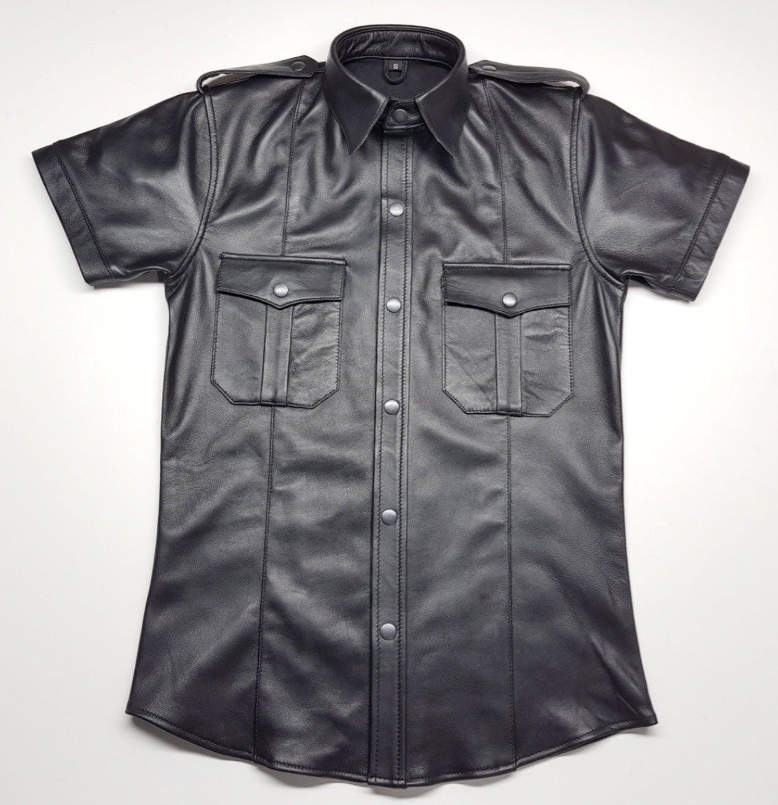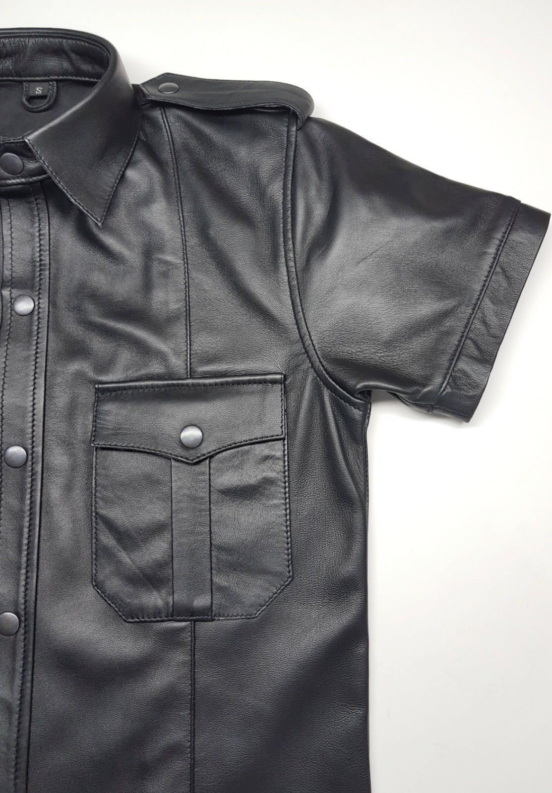 Herren Police Style Taschen Schafsleder mit kurzen Ärmeln Shirt Fashion