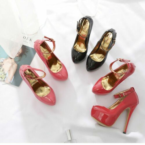 Herren Pumps Drag Queen Knochelriemen Crossdresser High Heels Damenschuhe Plus J1
