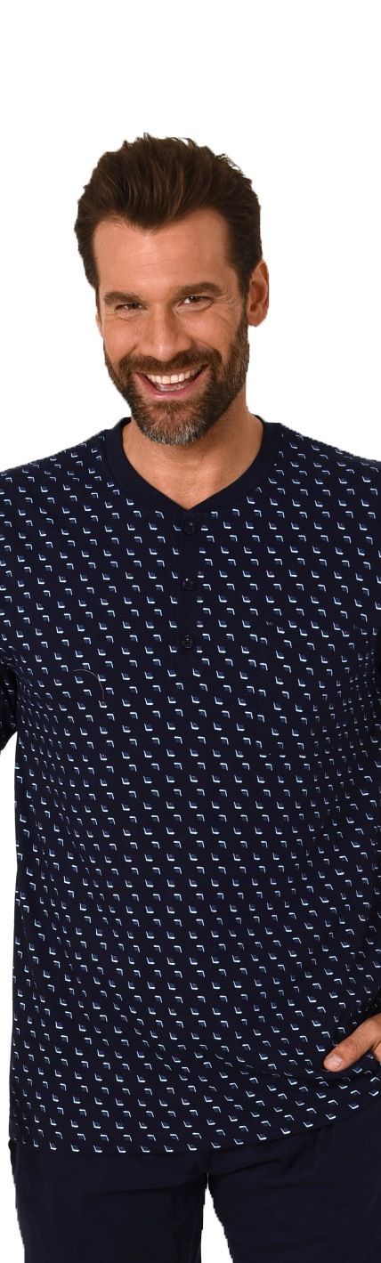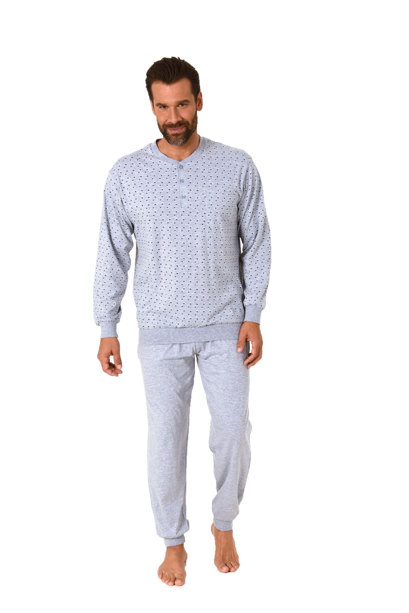 Herren Pyjama lang Schlafanzug mit Bündchen und Knopfleiste am Hals