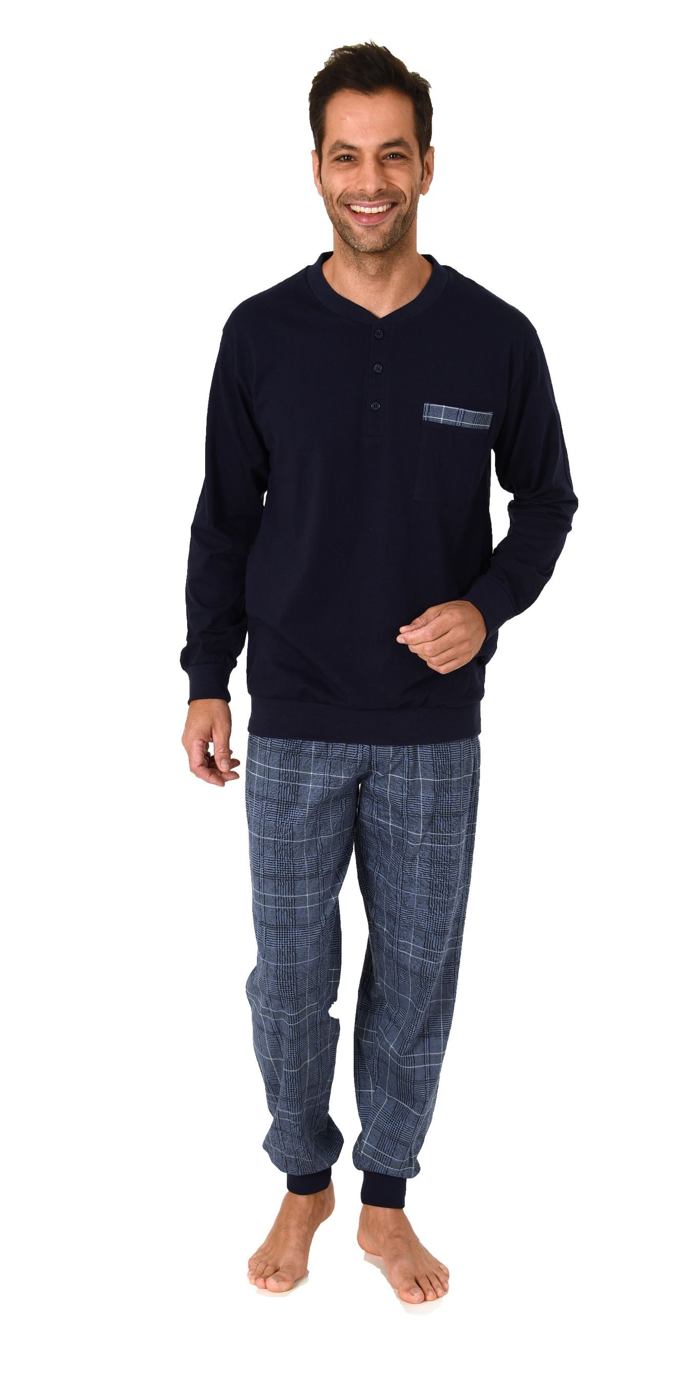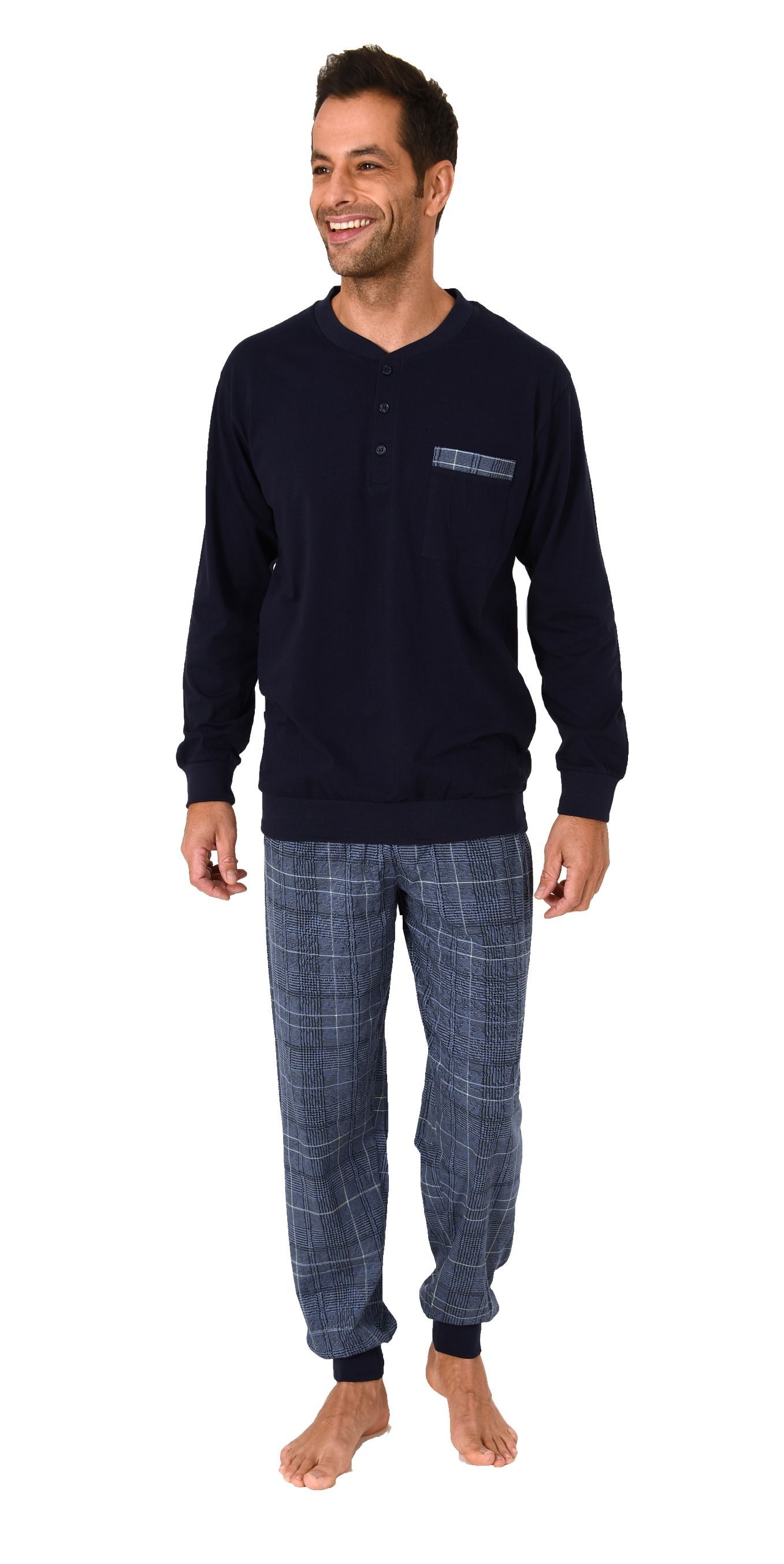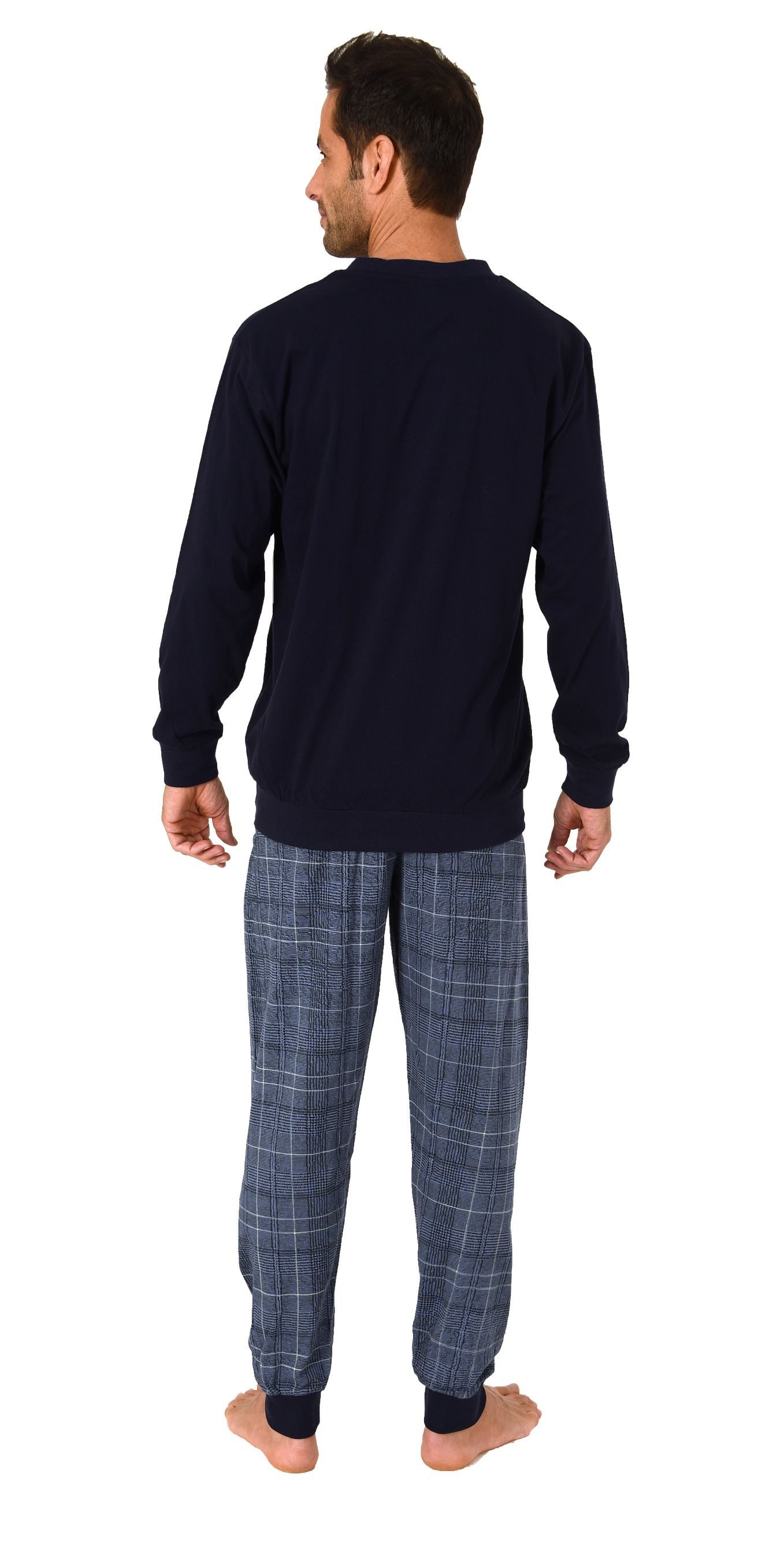 Herren Pyjama Schlafanzug mit Bündchen und karierter Jersey Hose -122 101 10 701