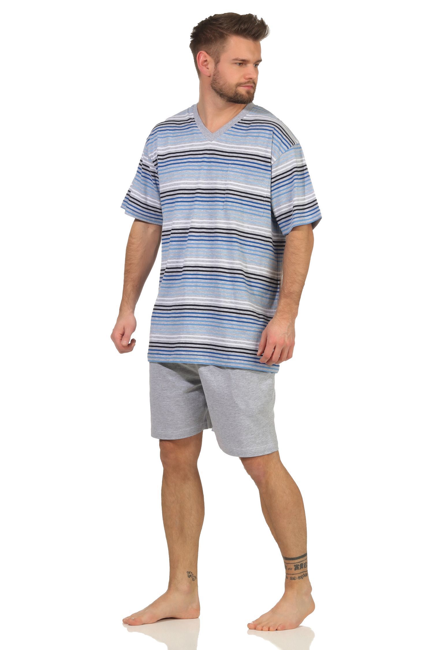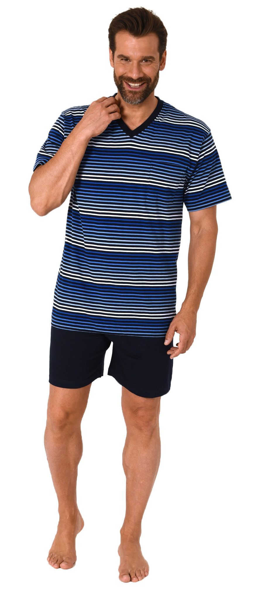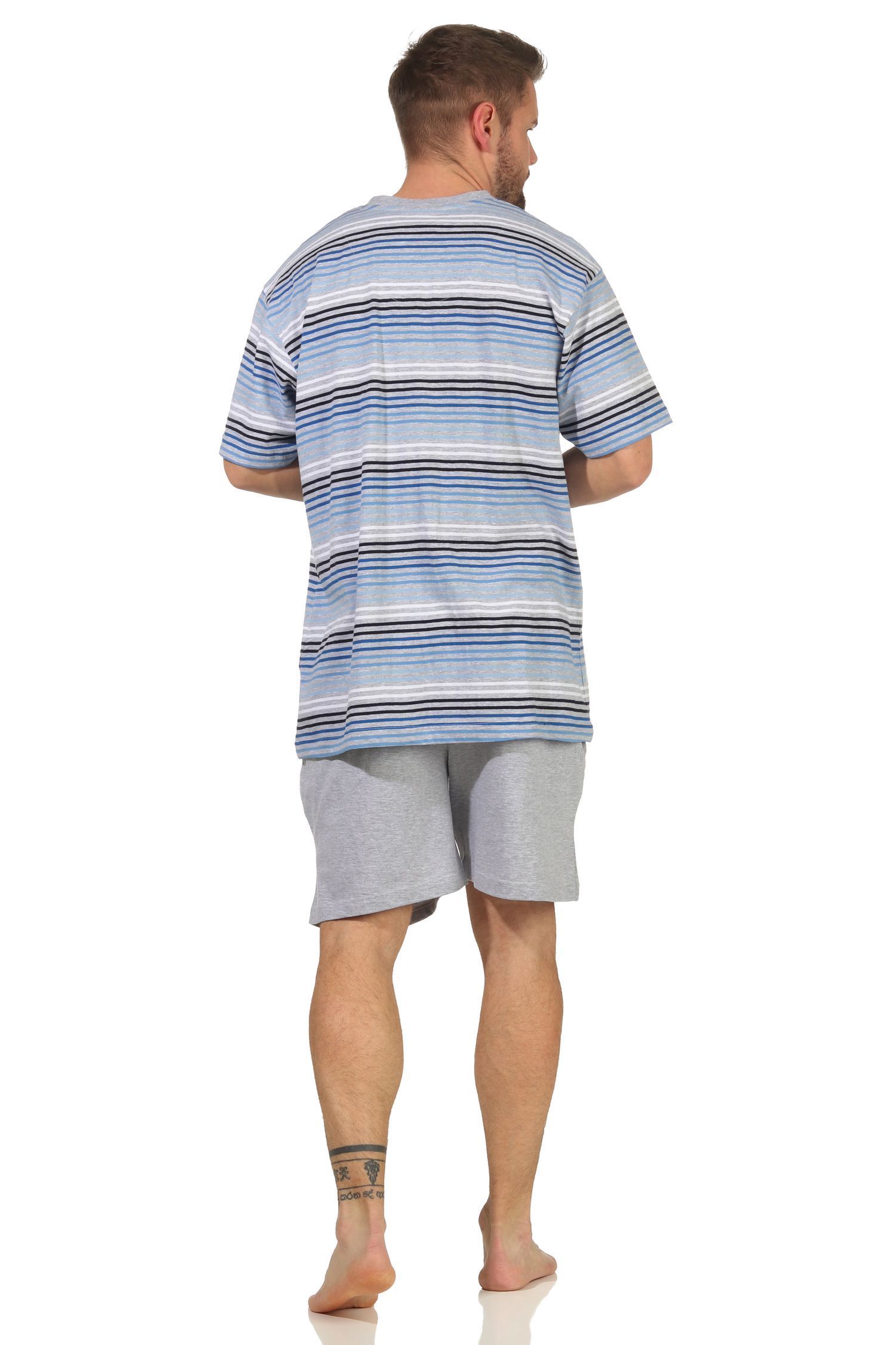 Herren Schlafanzug kurzarm Shorty Pyjama in toller Streifenoptik - 112 105 90 746