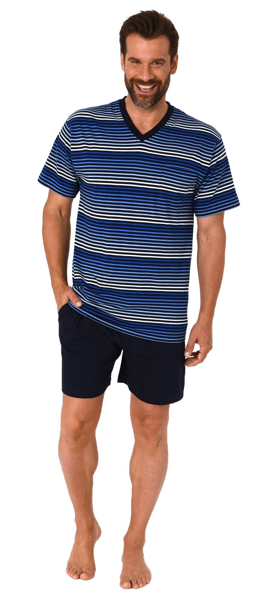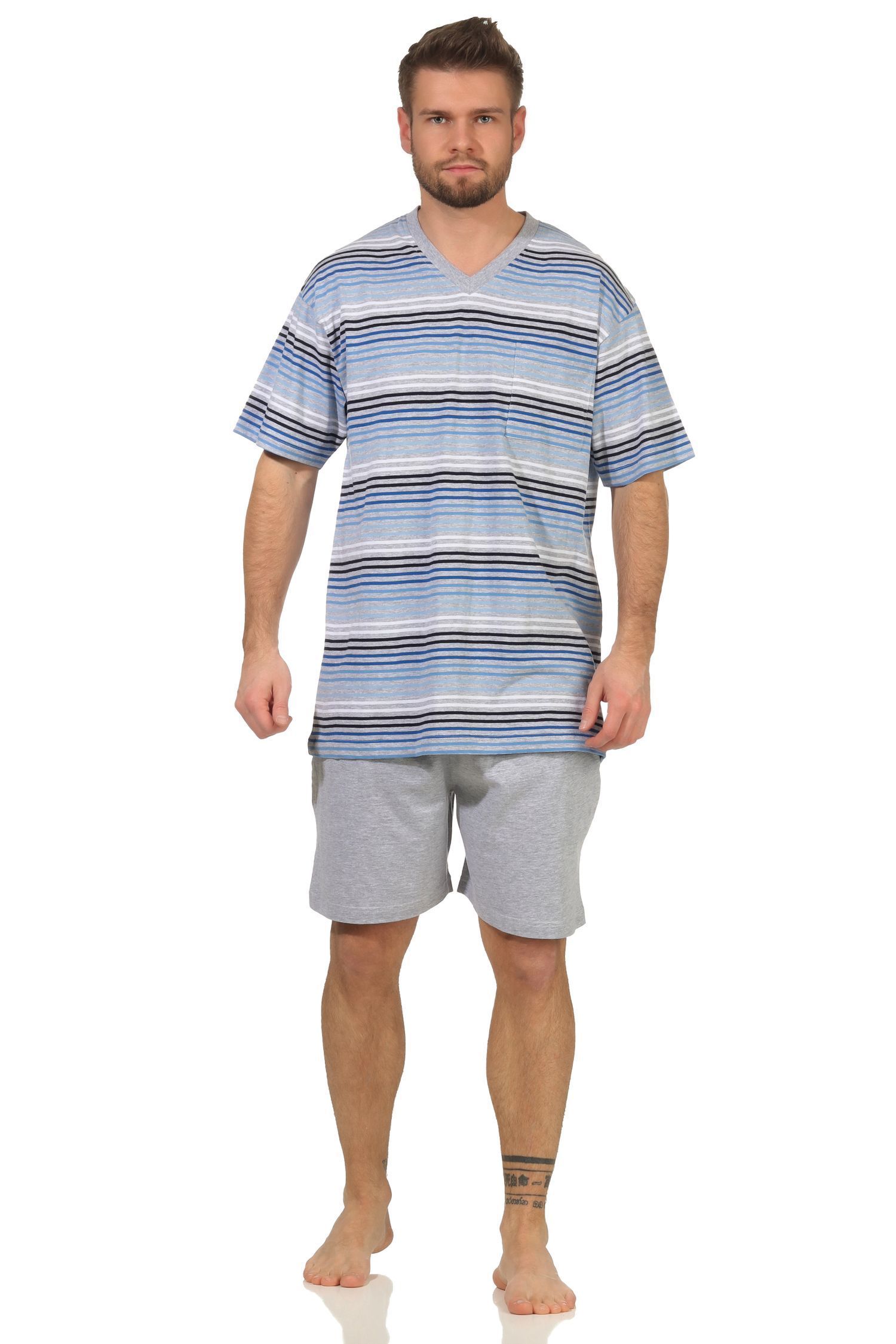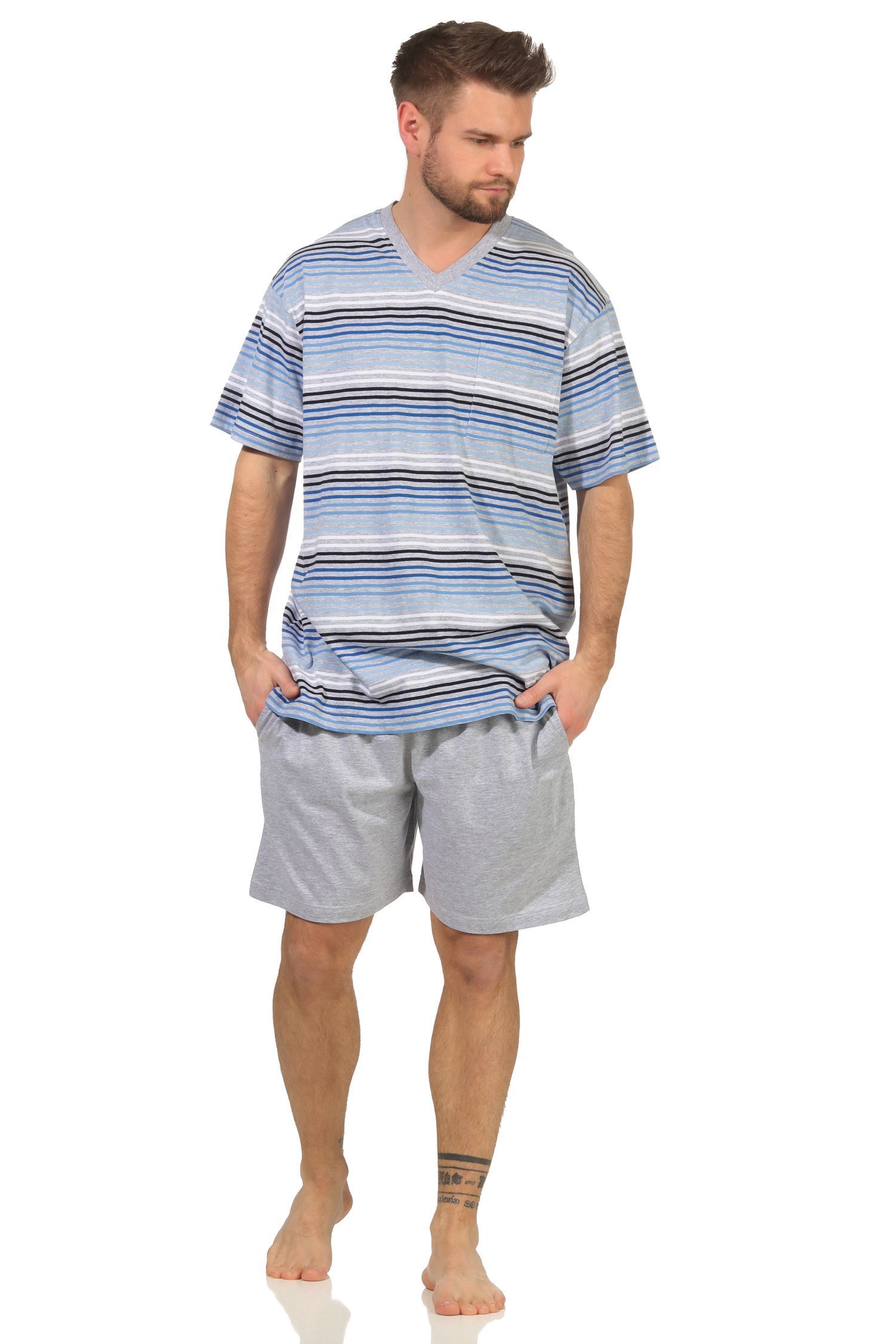 Herren Schlafanzug kurzarm Shorty Pyjama in toller Streifenoptik - 112 105 90 746