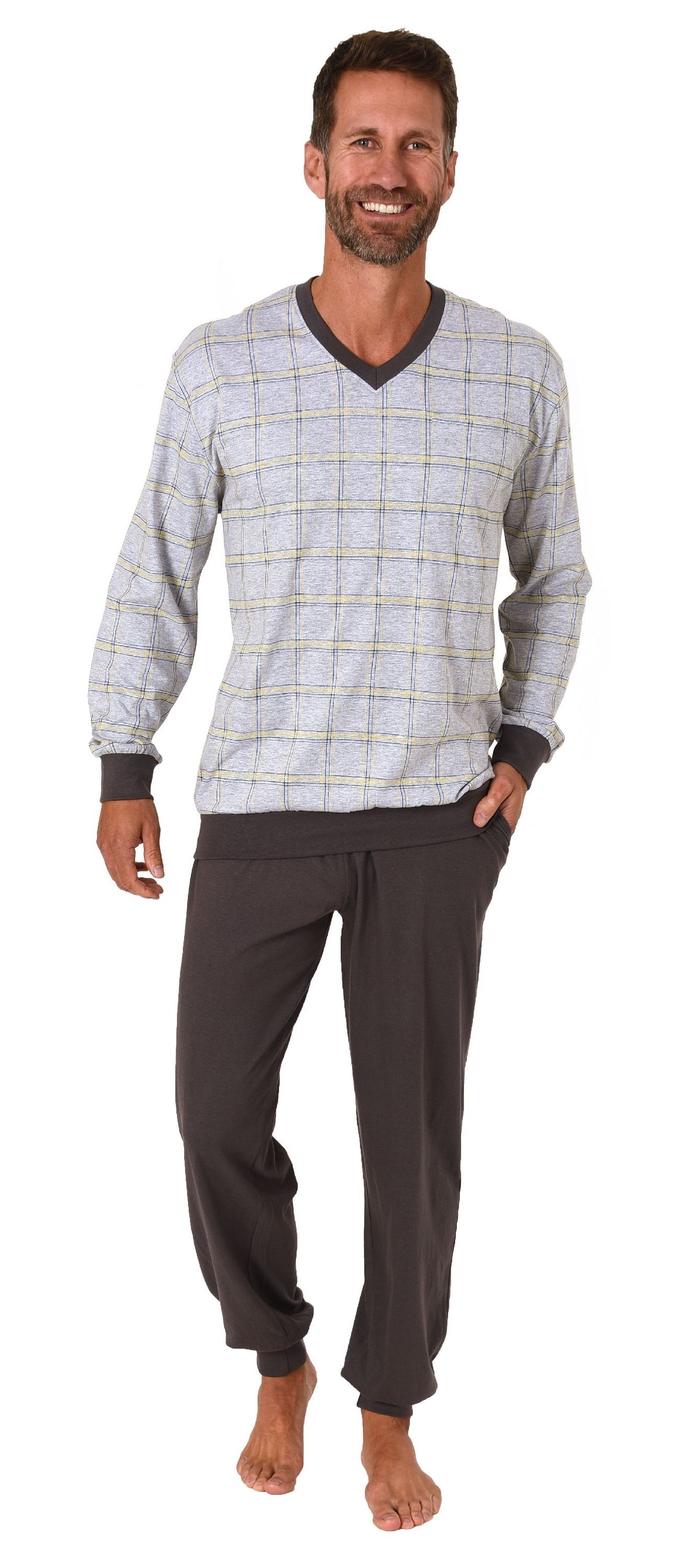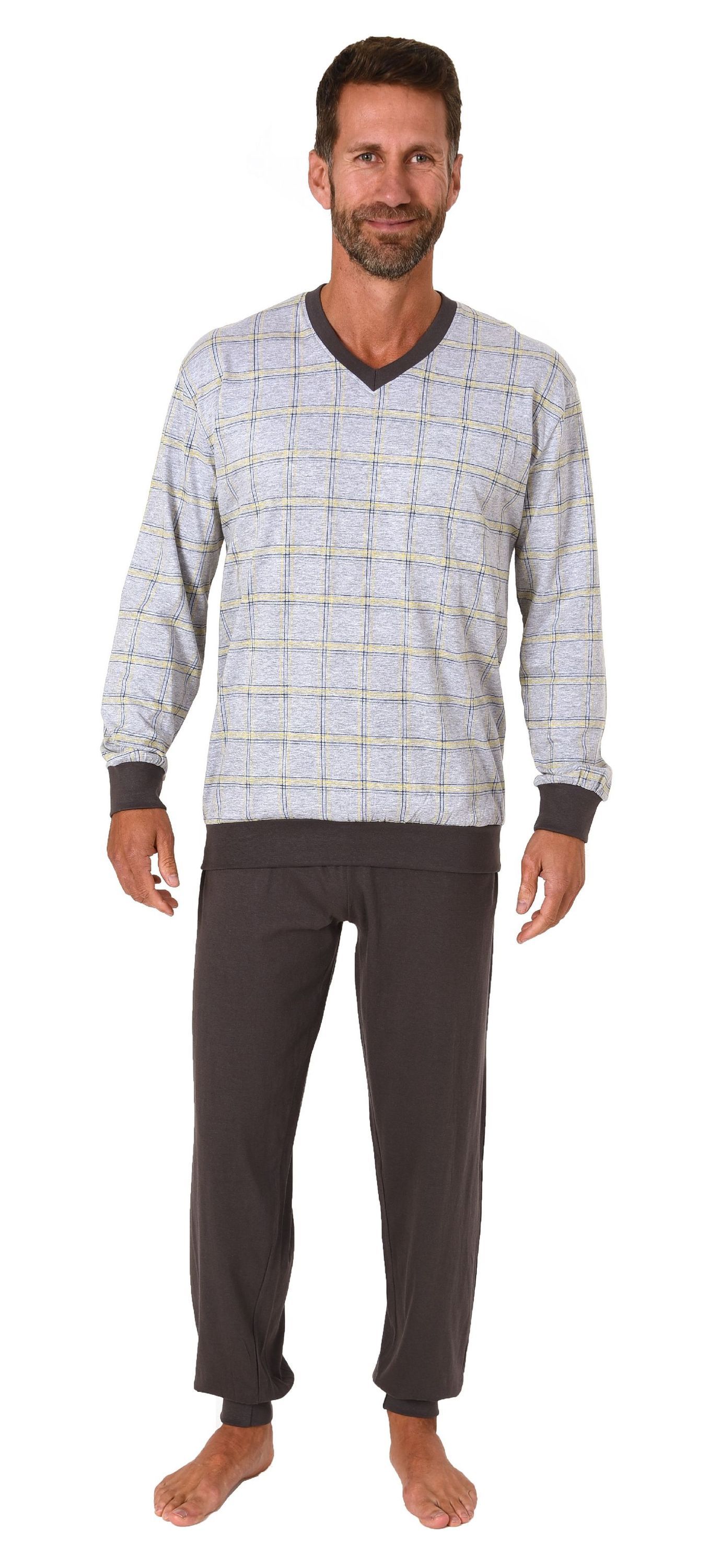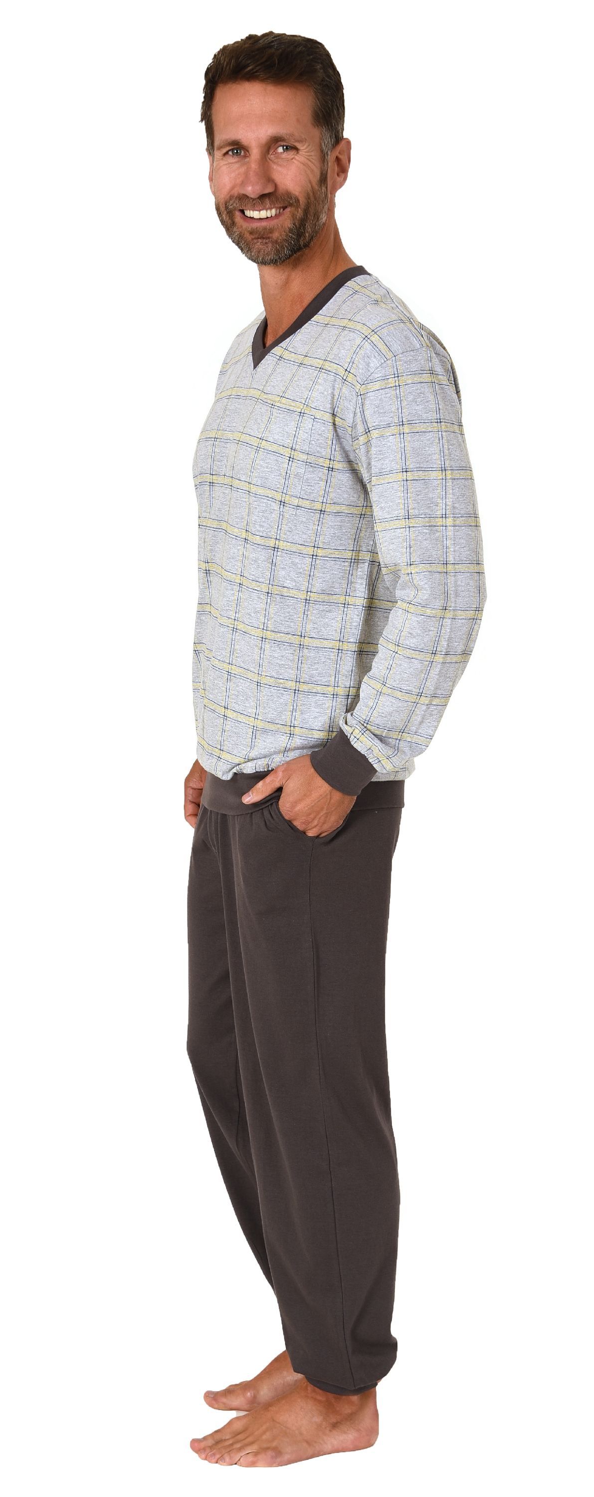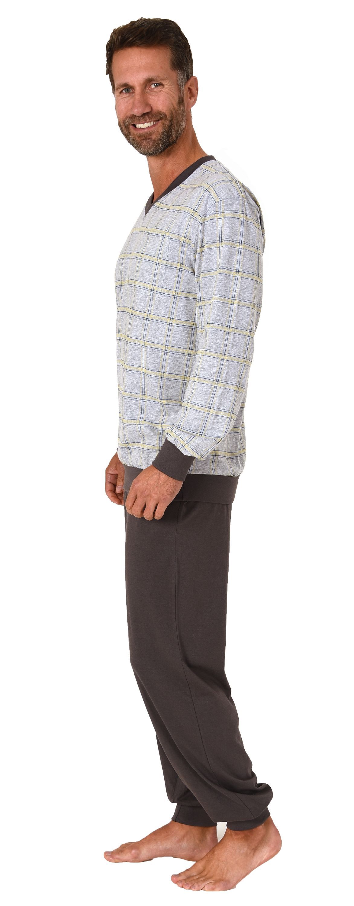 NORMANN Herren Schlafanzug langarm Pyjama mit Bündchen - 122 101 90 445