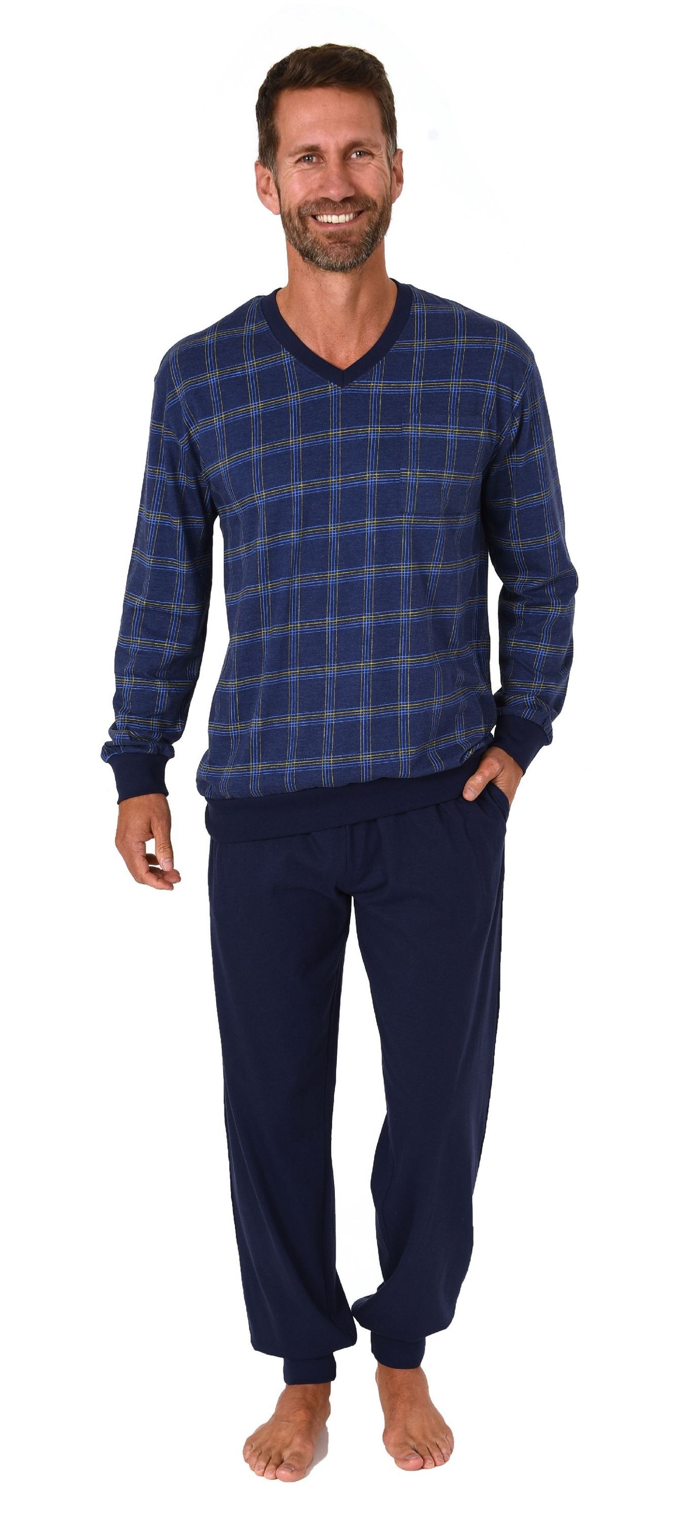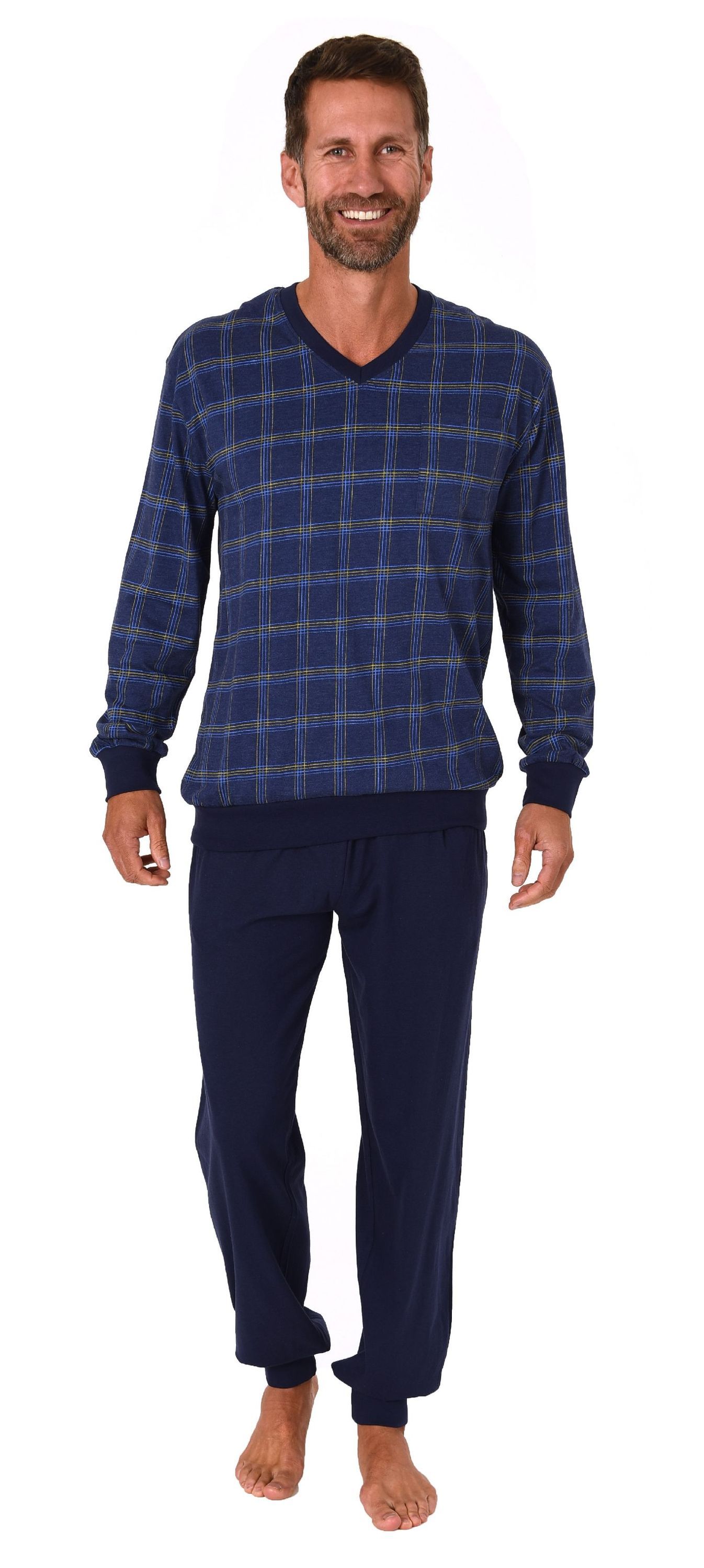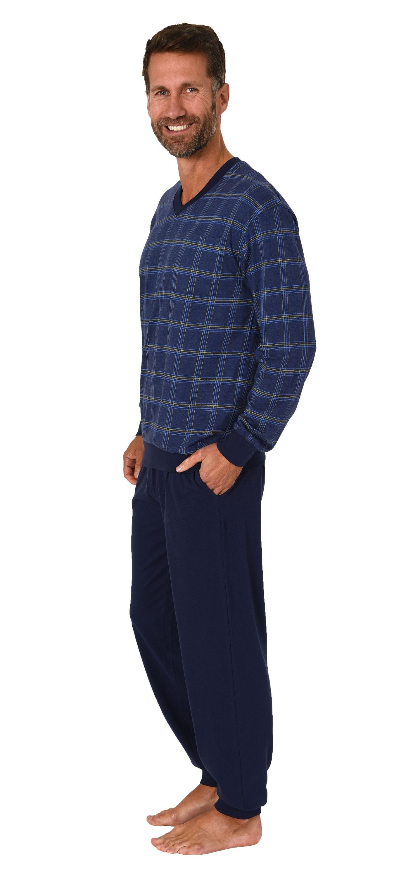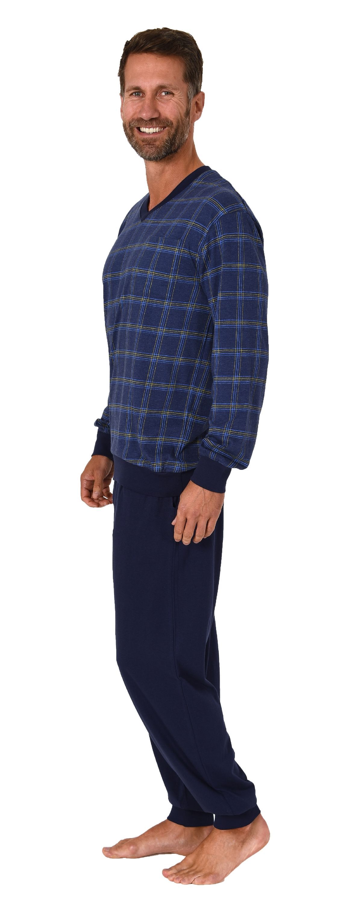 NORMANN Herren Schlafanzug langarm Pyjama mit Bündchen - 122 101 90 445