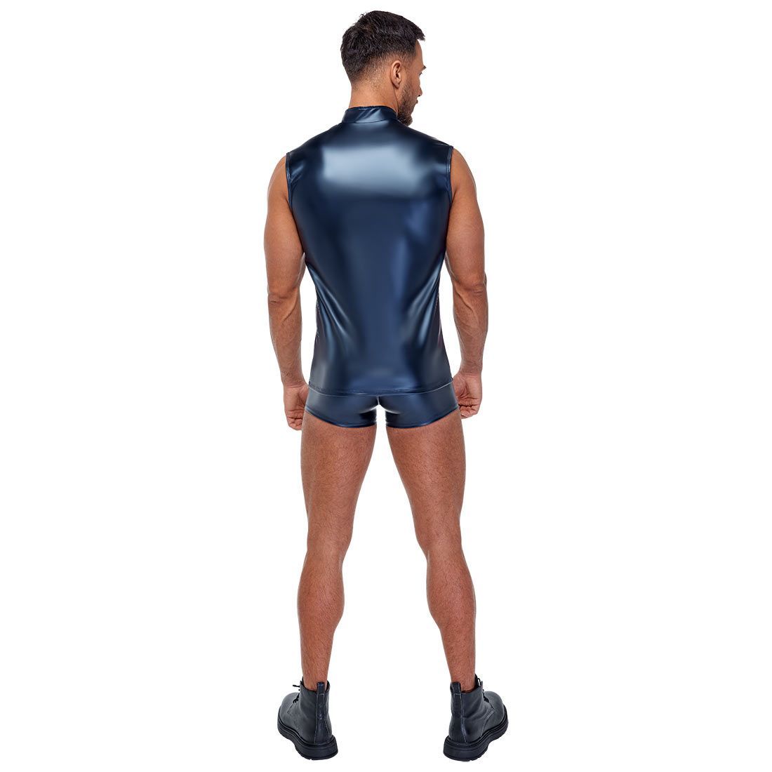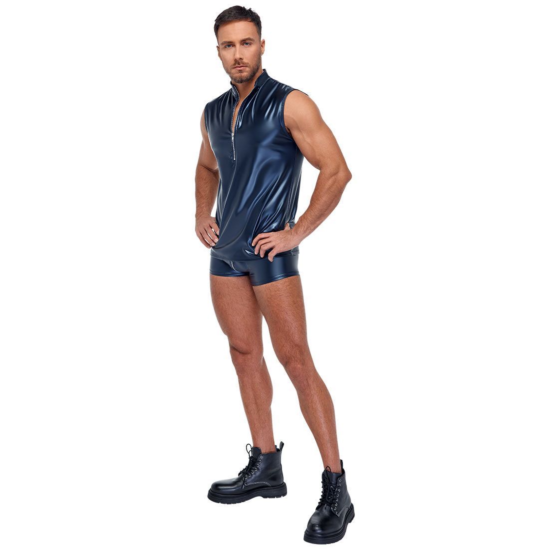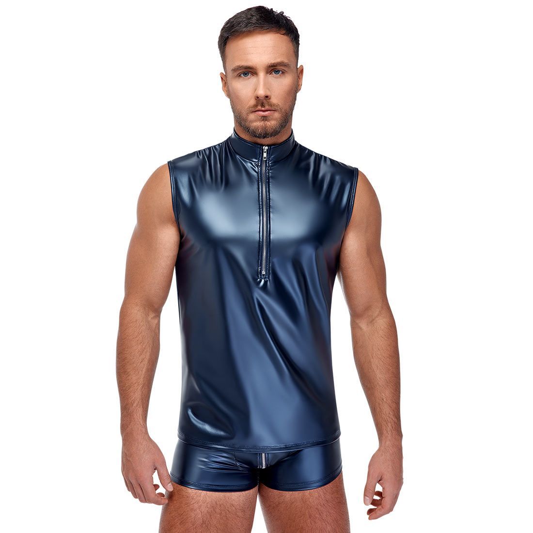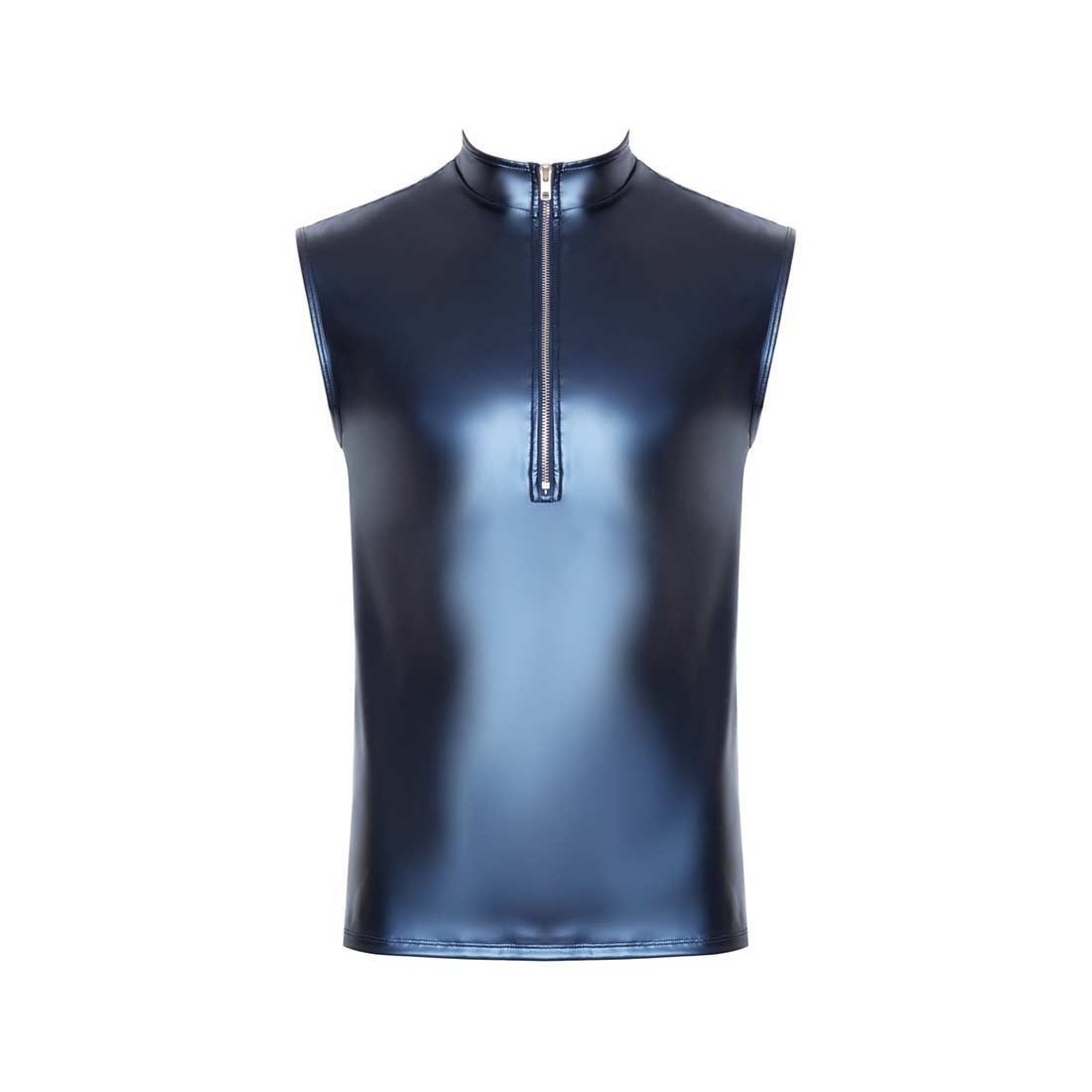 Herren Shirt Blau M-2XL Metallic Glanz mit Reißverschluss Party Club Sexy "Grant