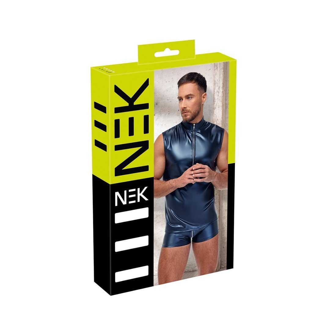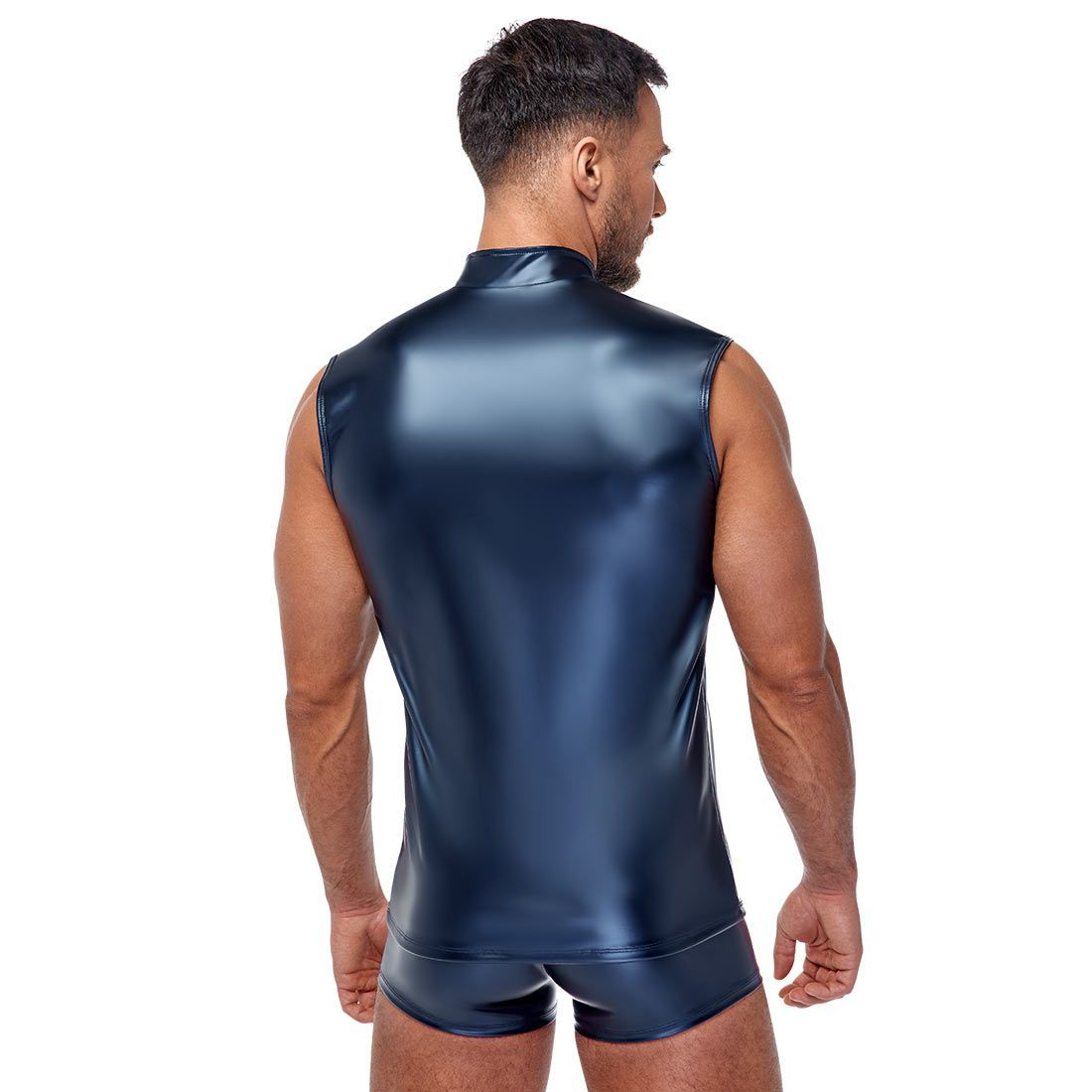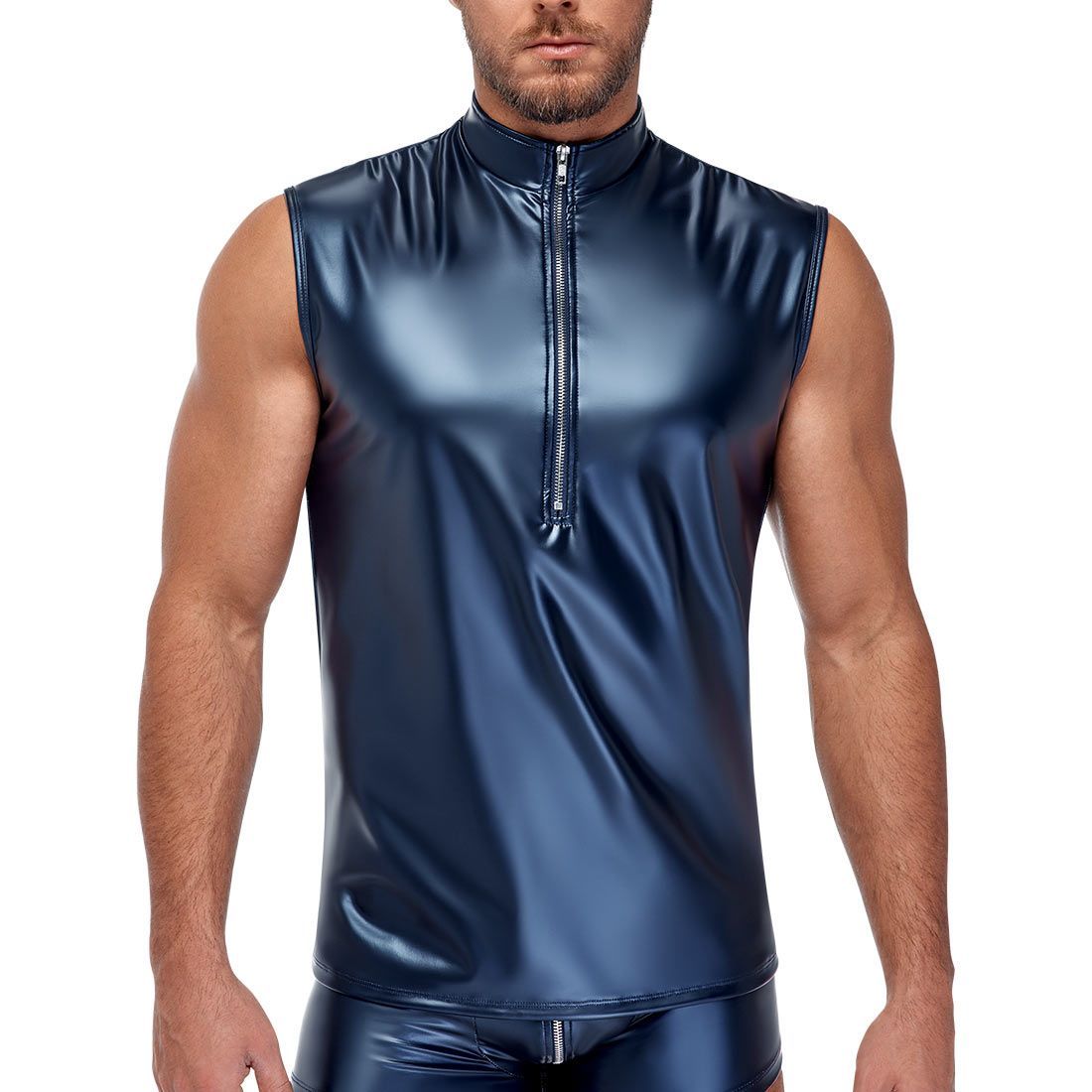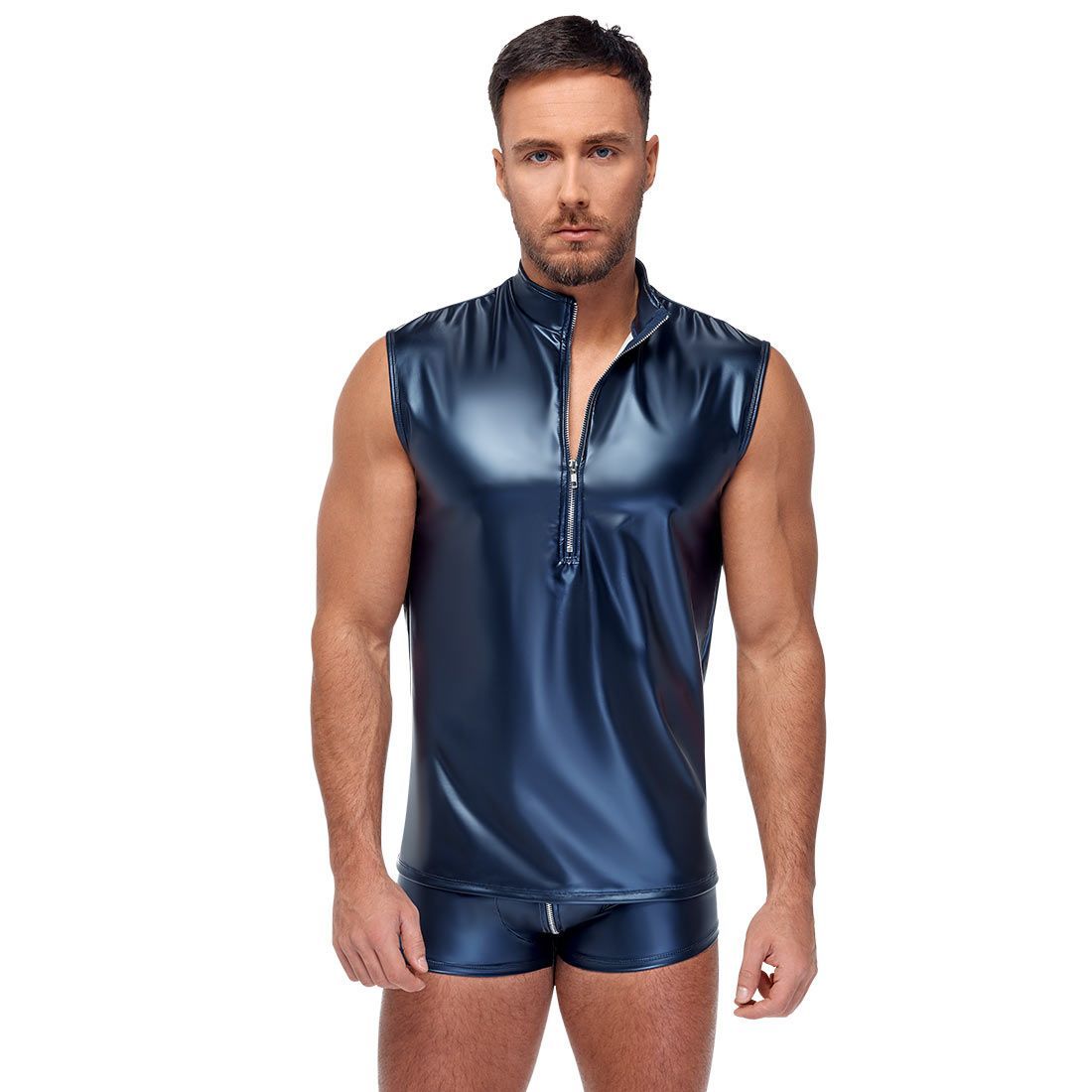Herren Shirt Blau M-2XL Metallic Glanz mit Reißverschluss Party Club Sexy "Grant