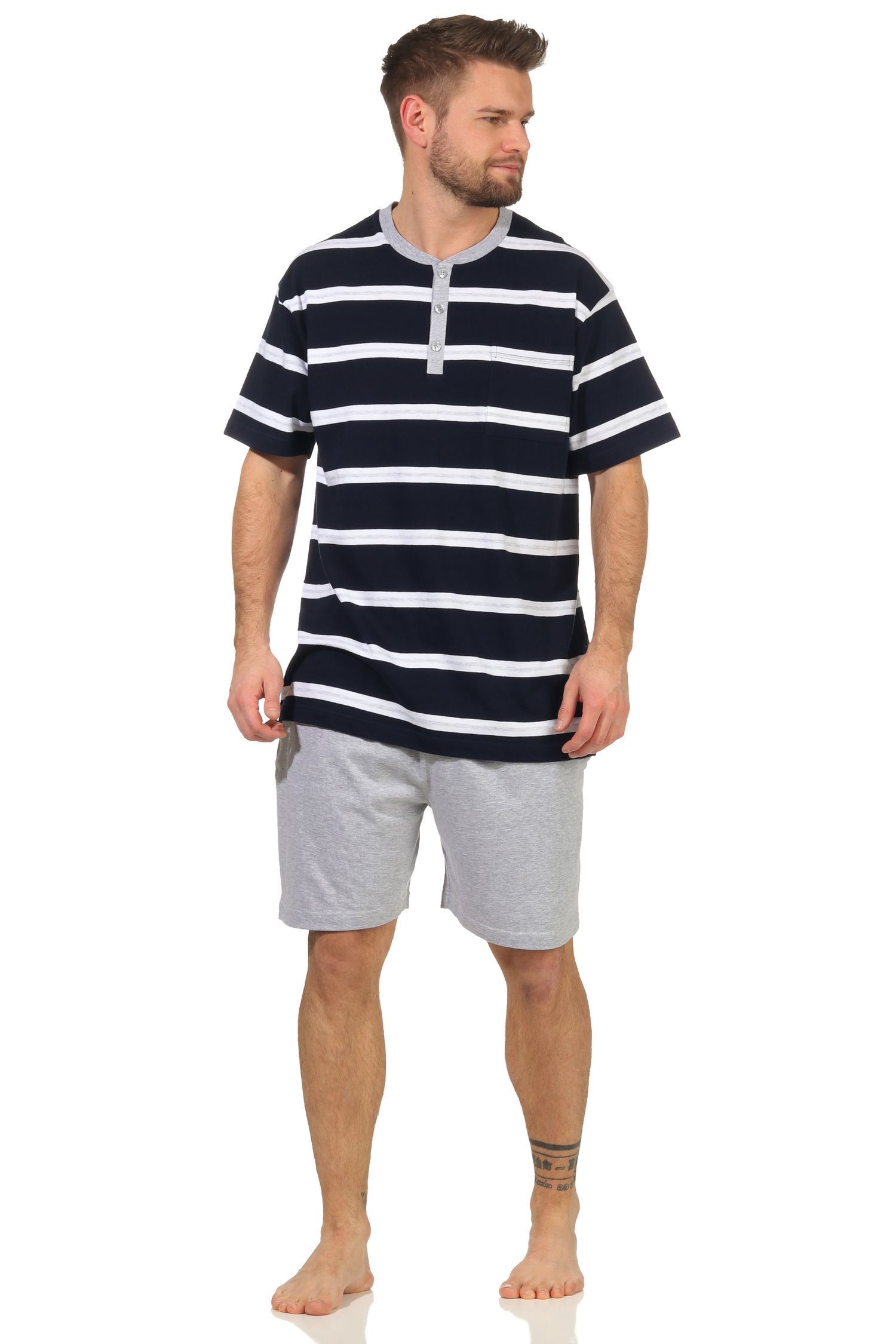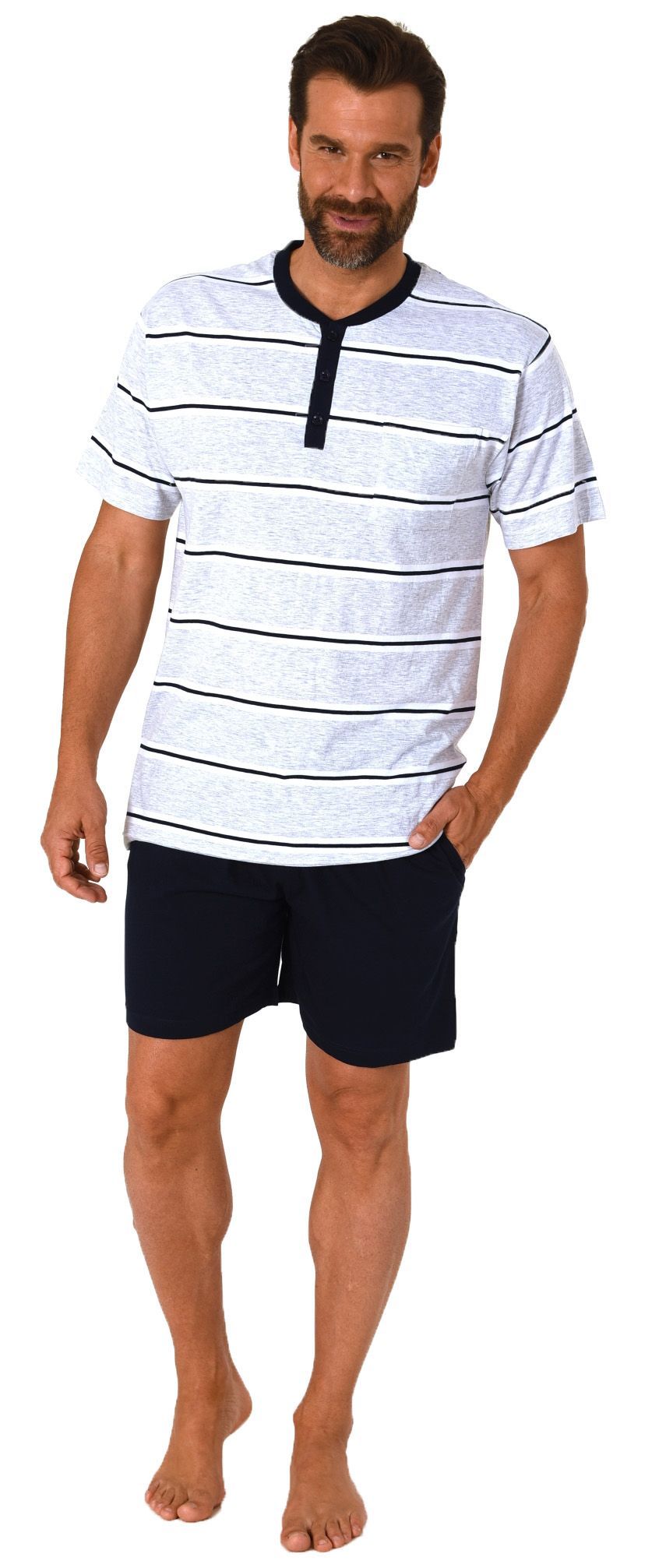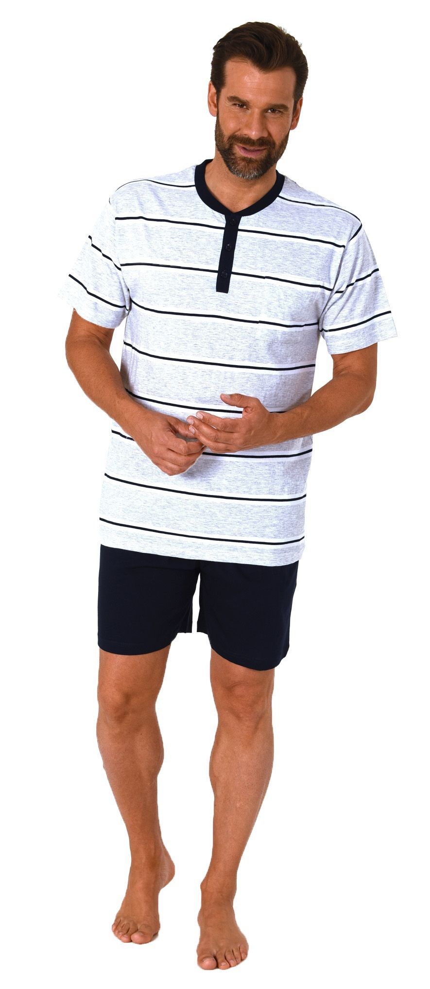 Herren Shorty kurzarm Schlafanzug in Streifenoptik und mit Knopfleiste - 112 90 714