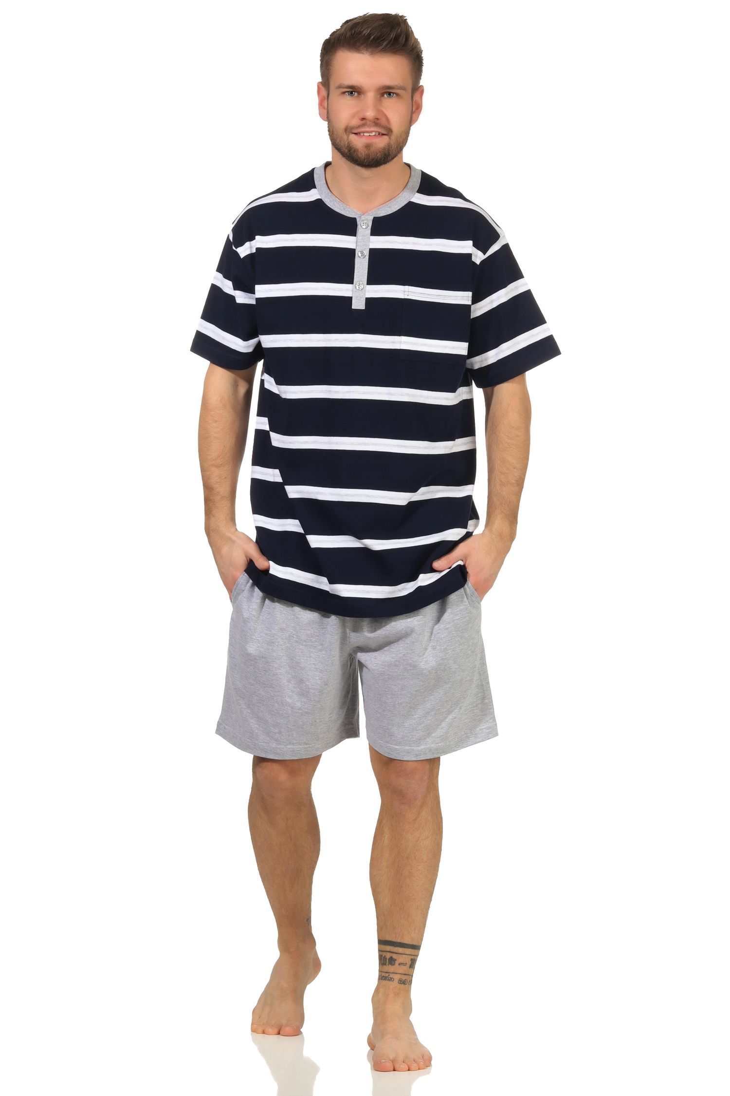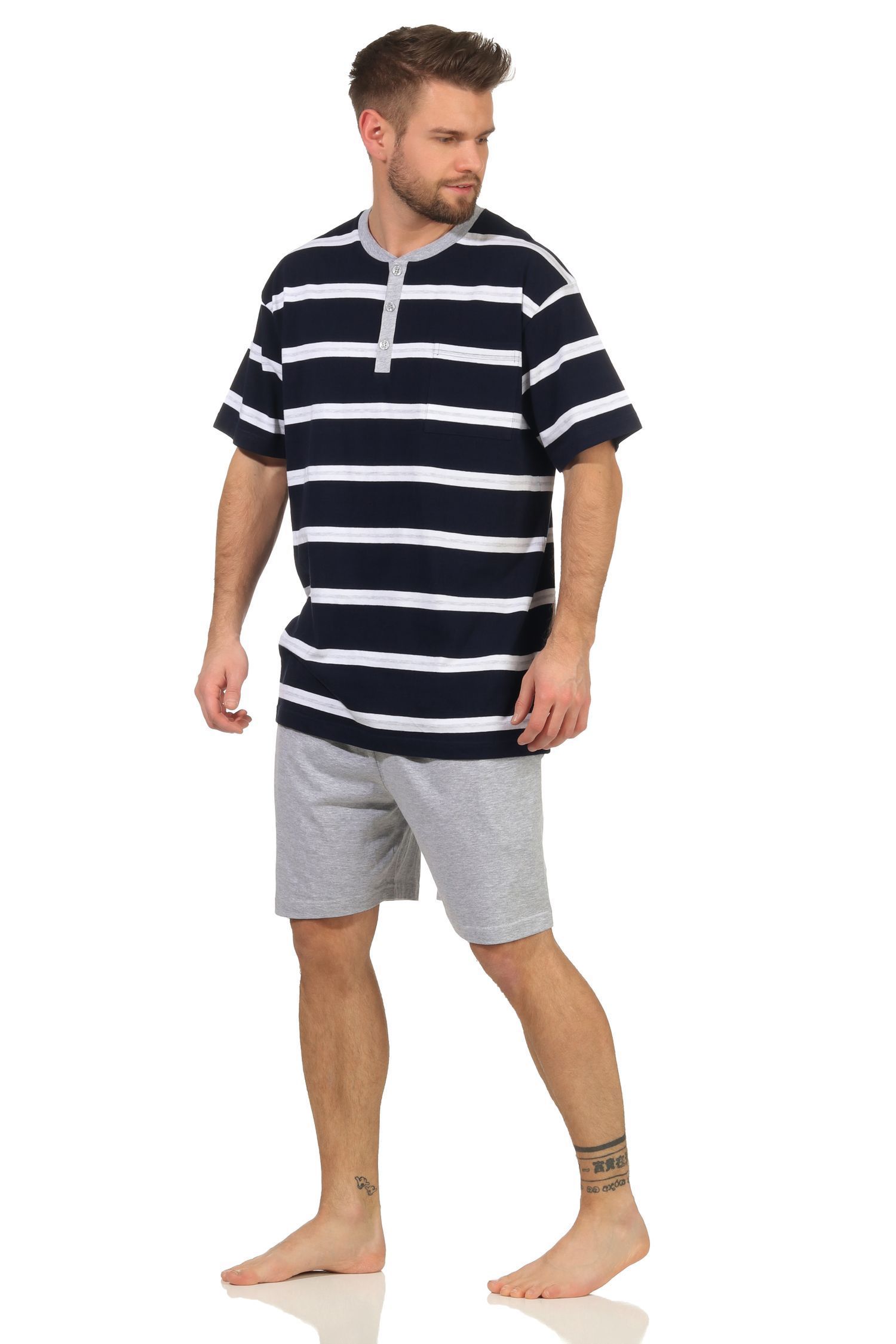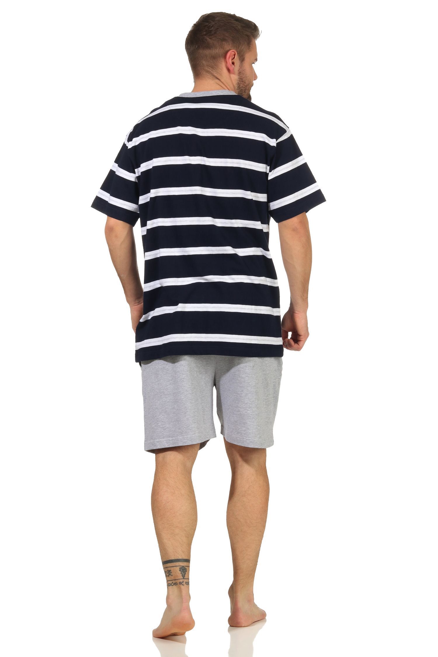 Herren Shorty kurzarm Schlafanzug in Streifenoptik und mit Knopfleiste - 112 90 714