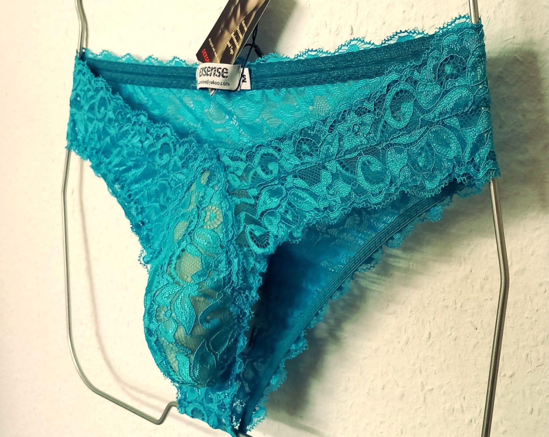 Herren Slip aus Spitze in Türkis Panty Femboy Hipster Fetisch