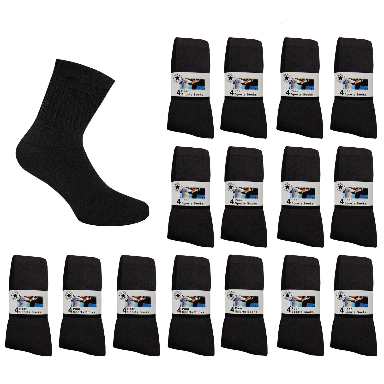 Herren Socken Sport Tennis Freizeit Arbeit schwarz weich Größe 39-42 43-46 47-50