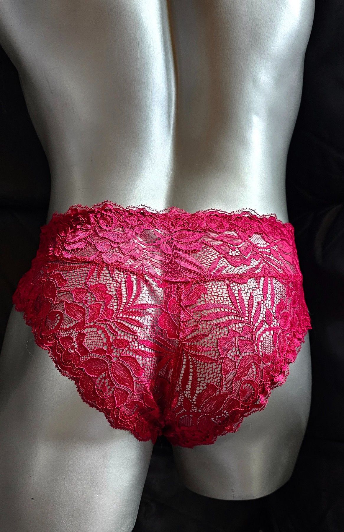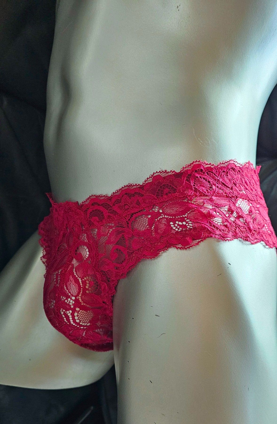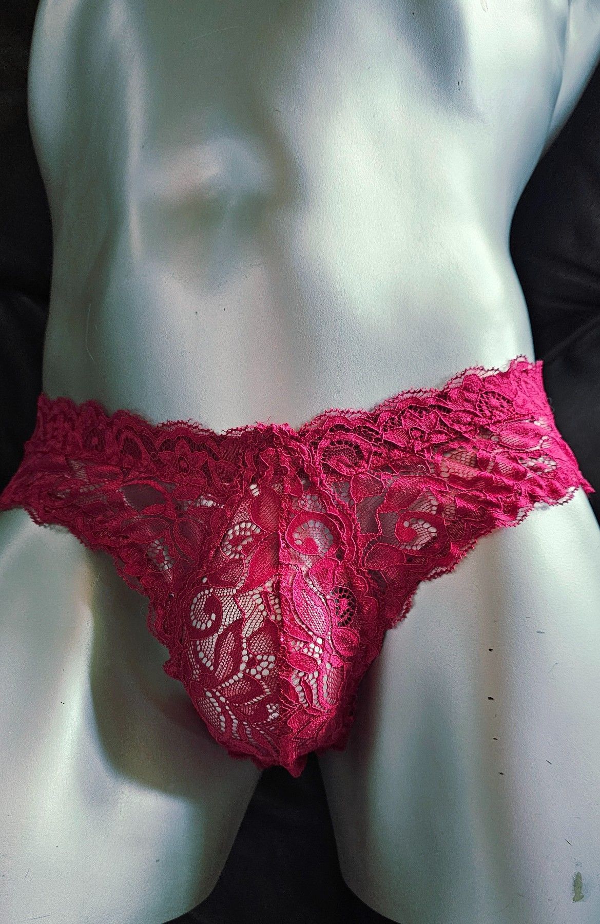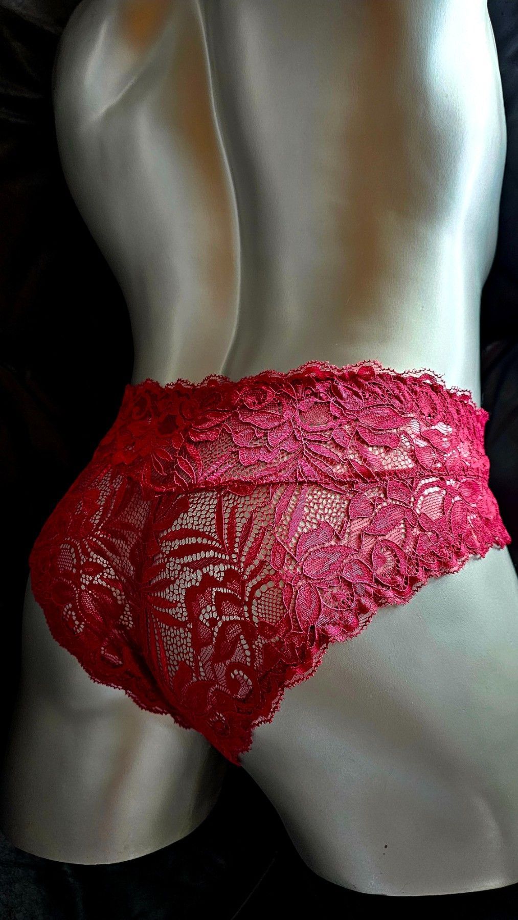 Dunkelrote Spitze mit maskuliner Raffinesse Weniger Stoff, mehr Aussage: Dieser tief Rote Herren-Spitzen-Slip im Hipster-Stil verbindet weiche französische Spitze mit klarer Schnittführung für ein modernes, feminines Tragegefühl. Die originalen Spitzenabschlüsse an Bund und Beinen bleiben erhalten –