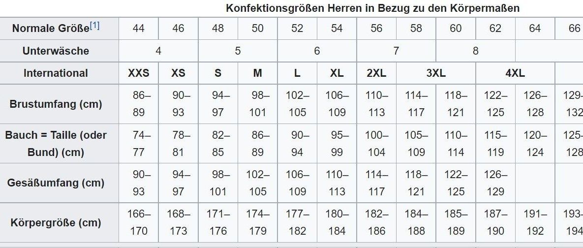 S, M, L und XL