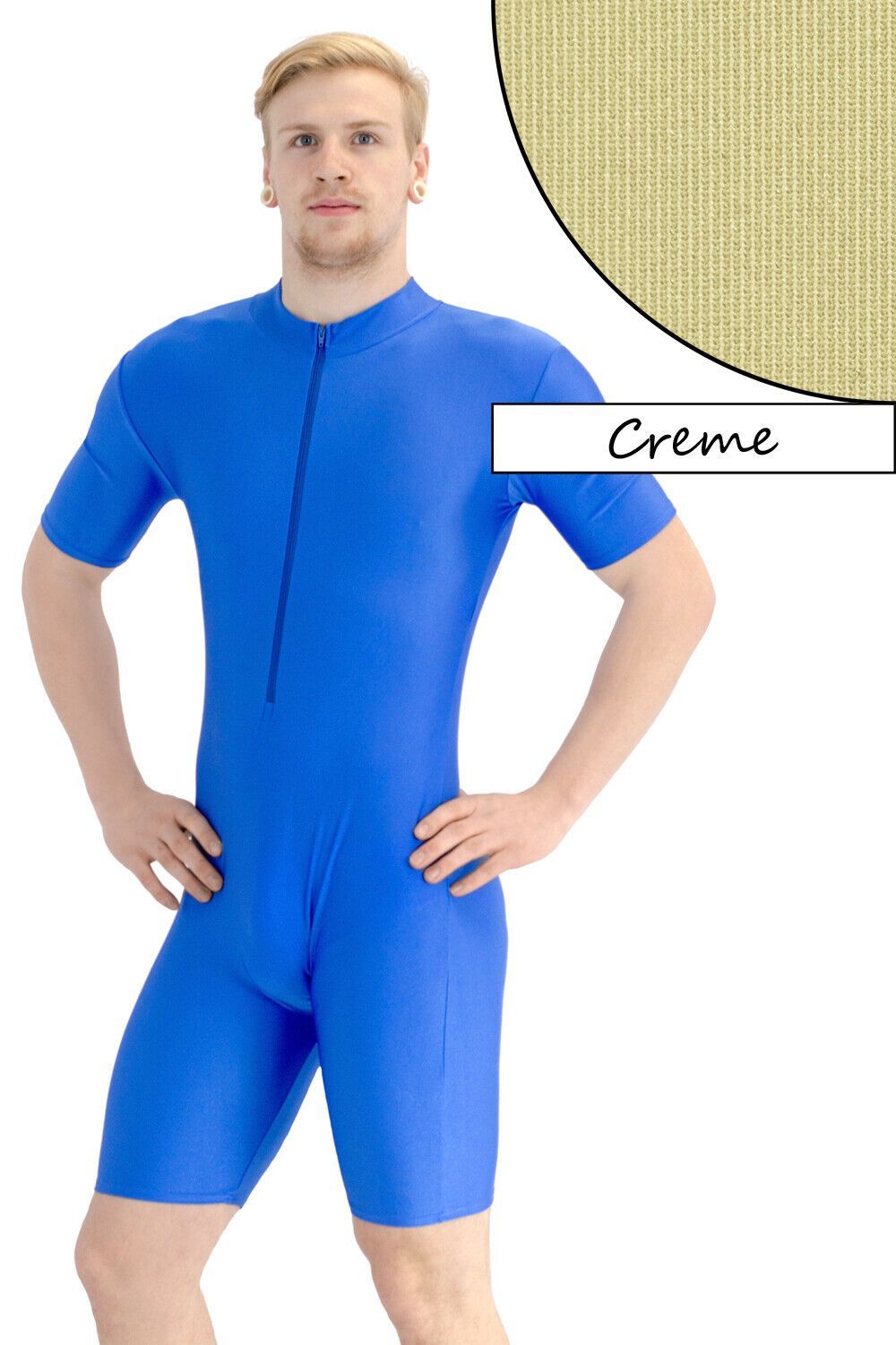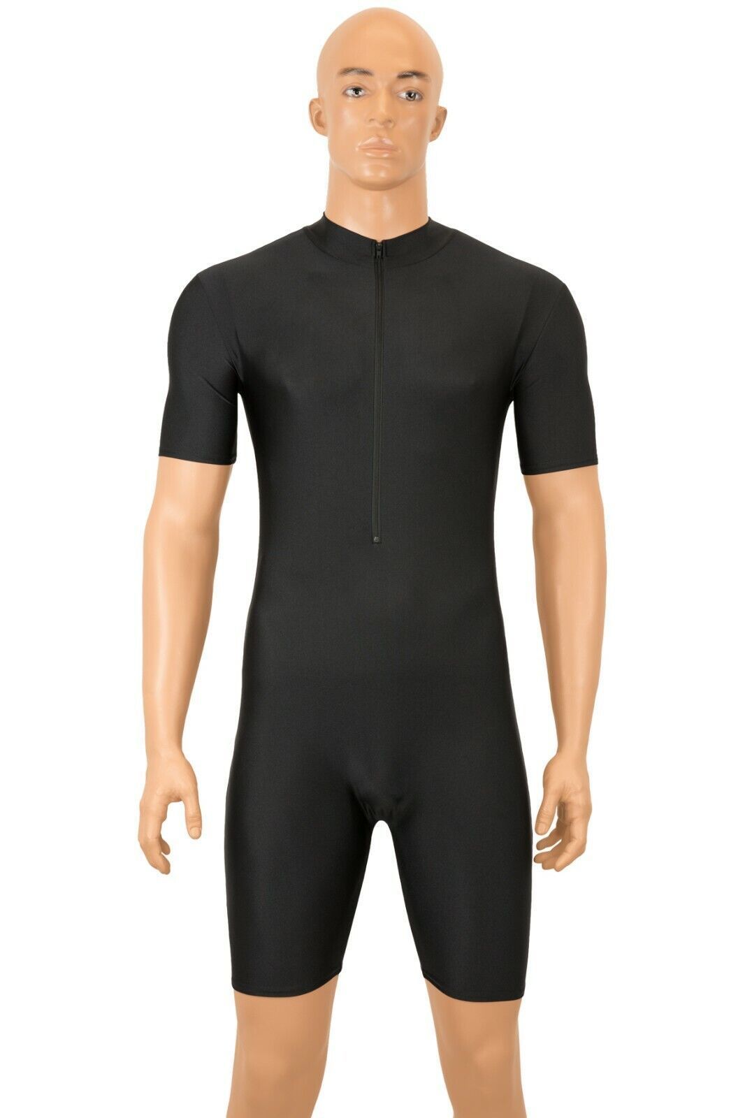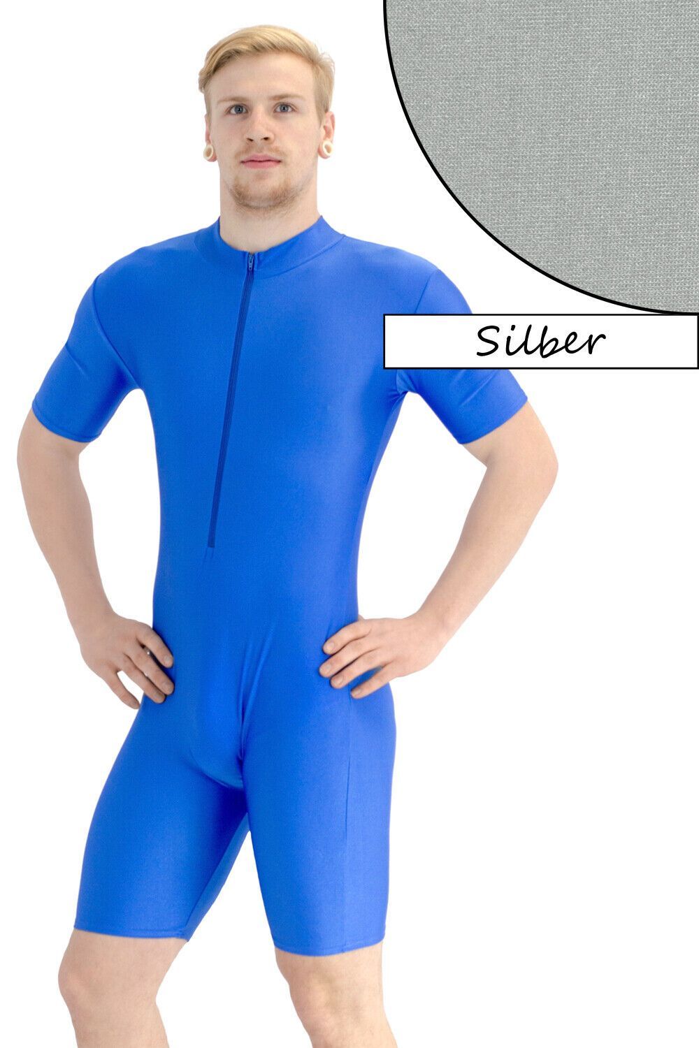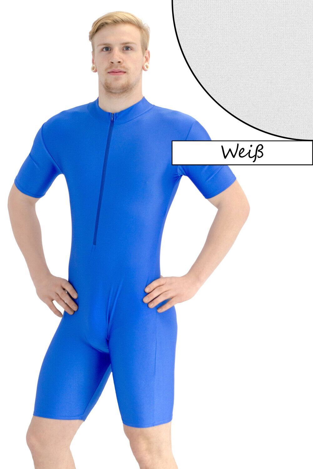 Herren Sportanzug kurze Ärmel u. Beine Front-RV Fitness stretch shiny glänzend