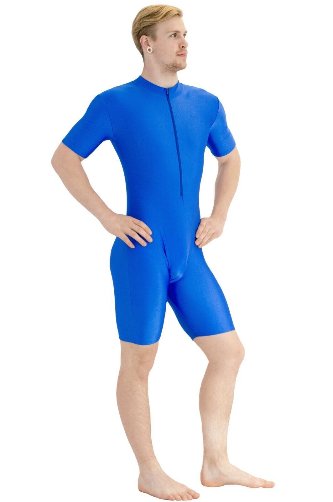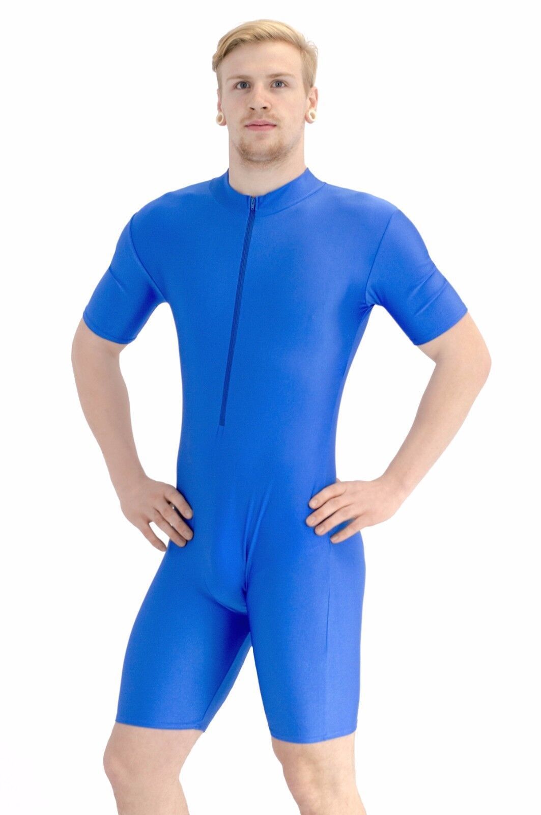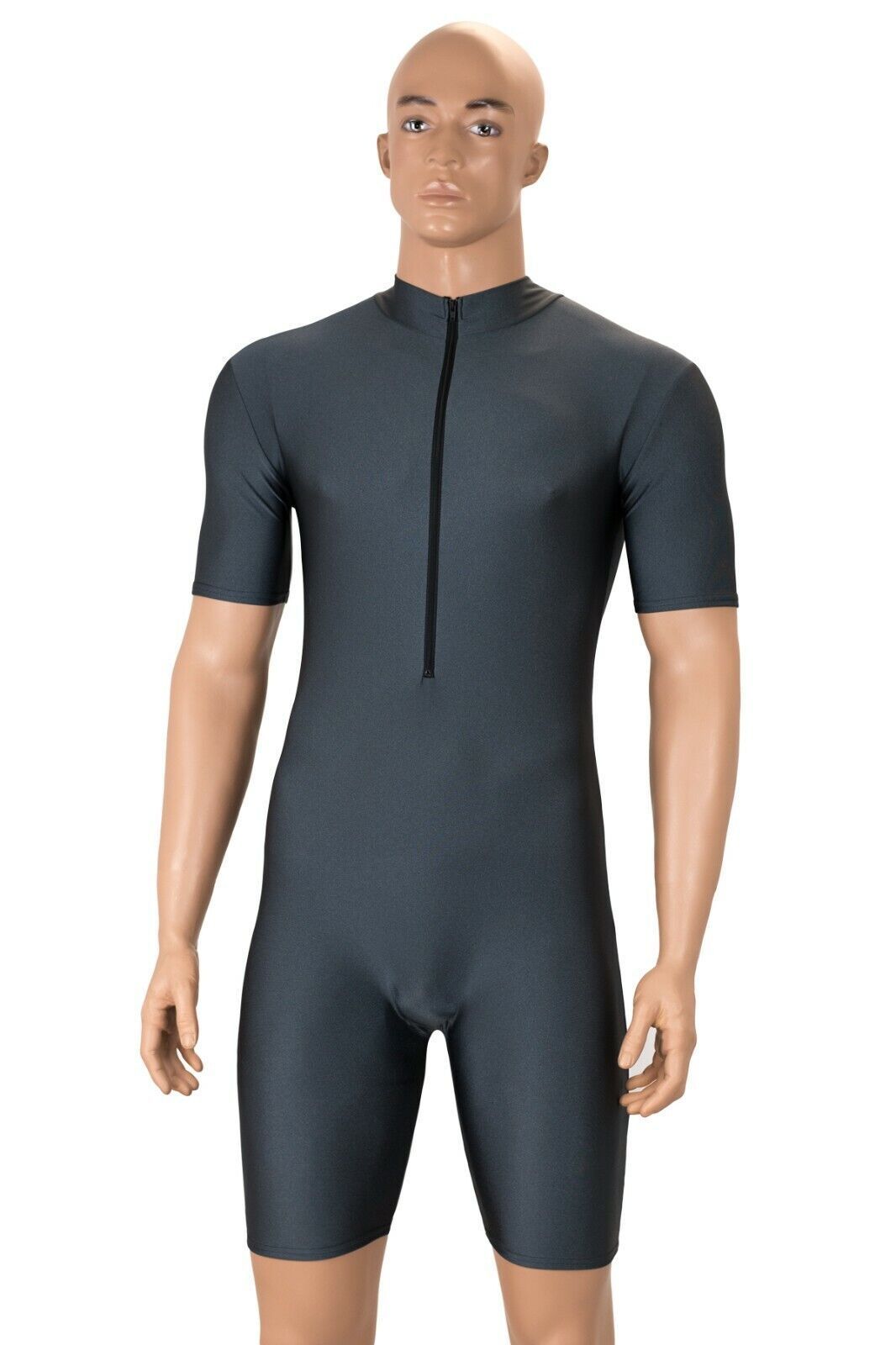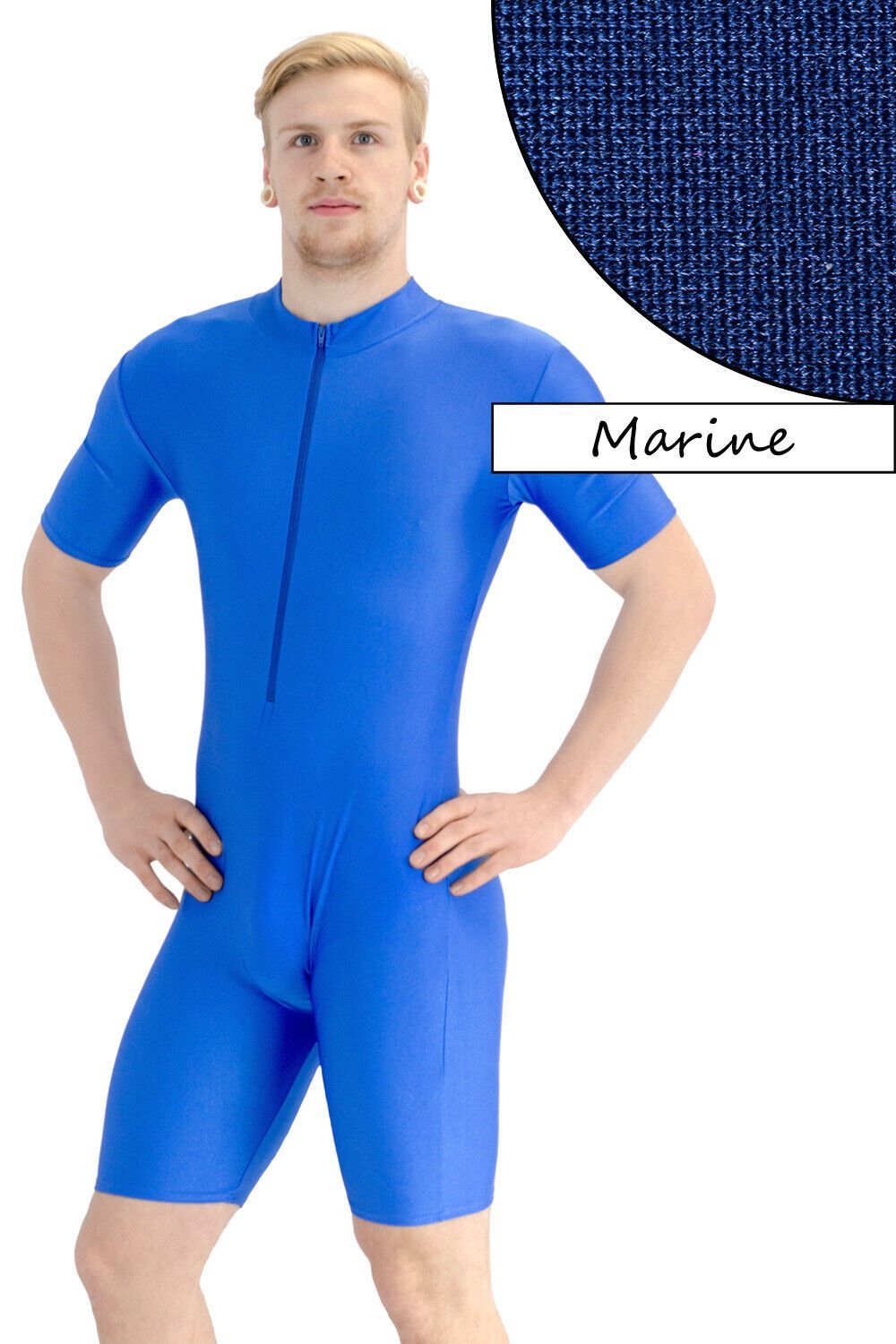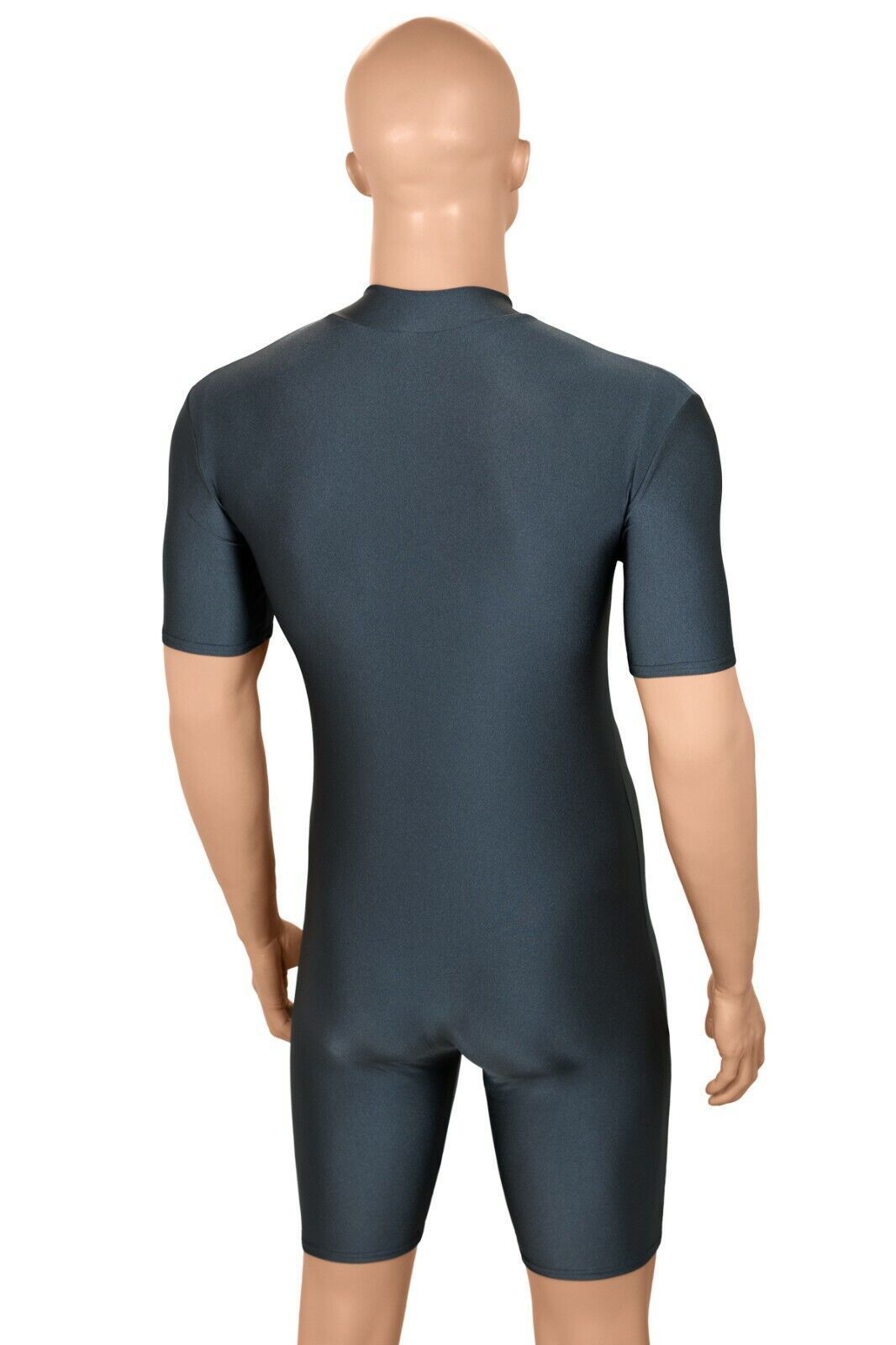 Herren Sportanzug kurze Ärmel u. Beine Front-RV Fitness stretch shiny glänzend