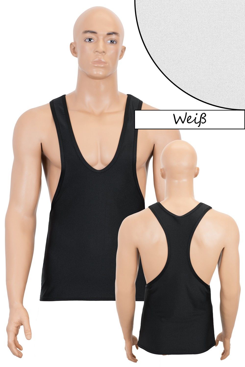 Herren Stringer-Top Weiß Tanktop hauteng elastisch stretch shiny Sport Shirt