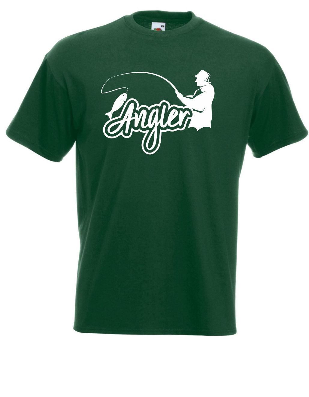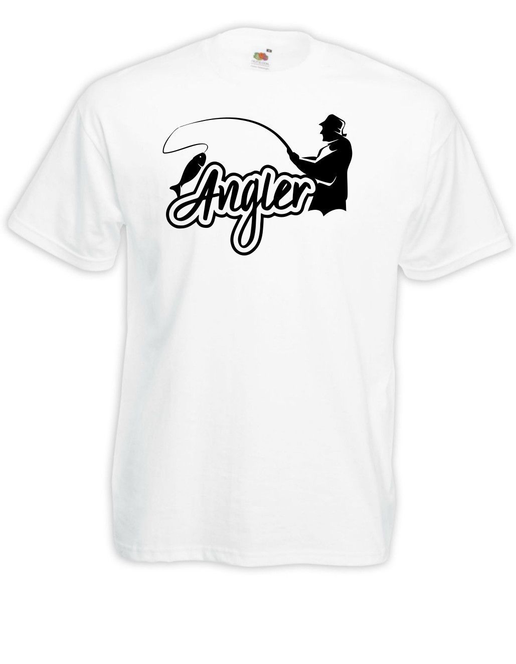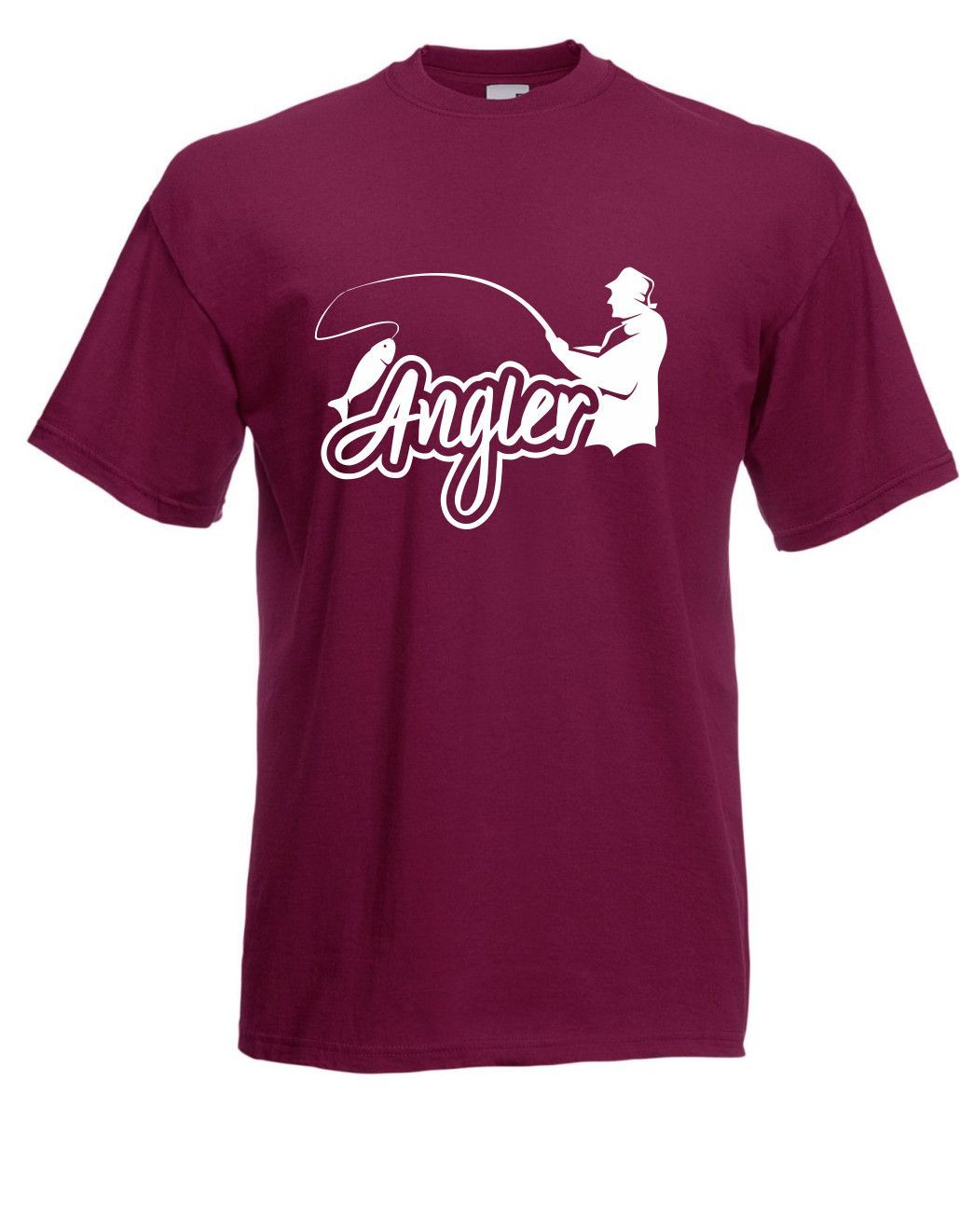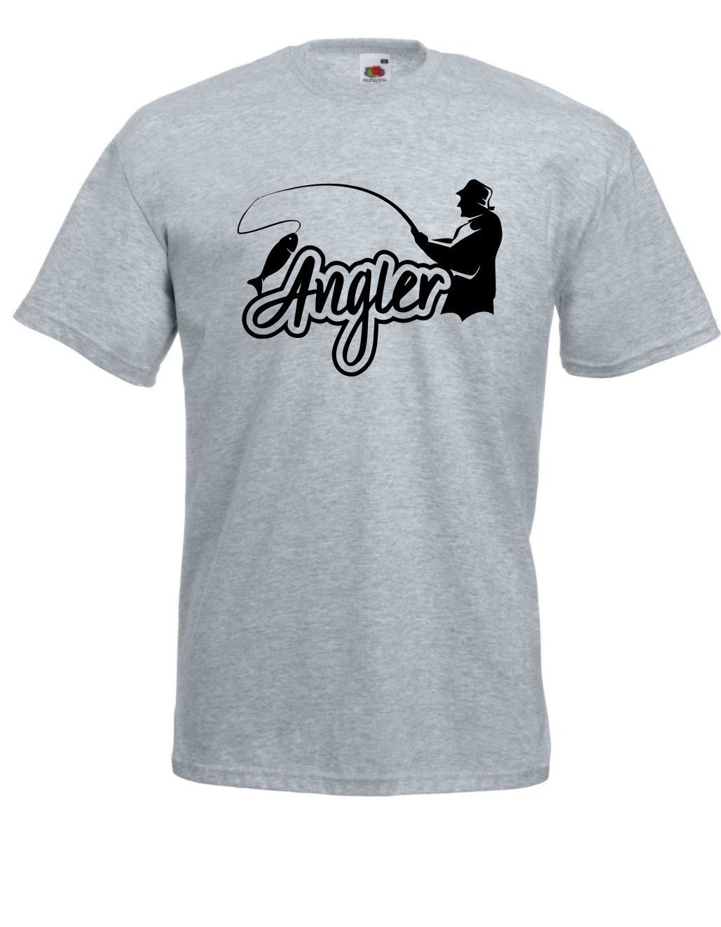 Herren T-Shirt Angler Angeln Fischer Essen Fisch Boot Fluss See Baggerloch