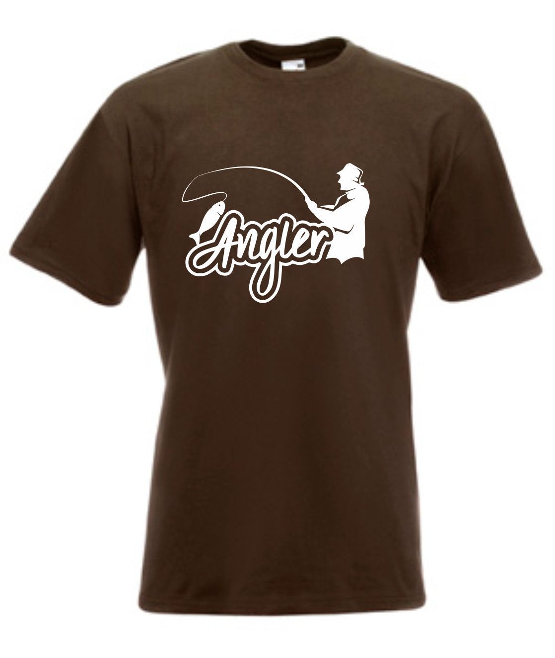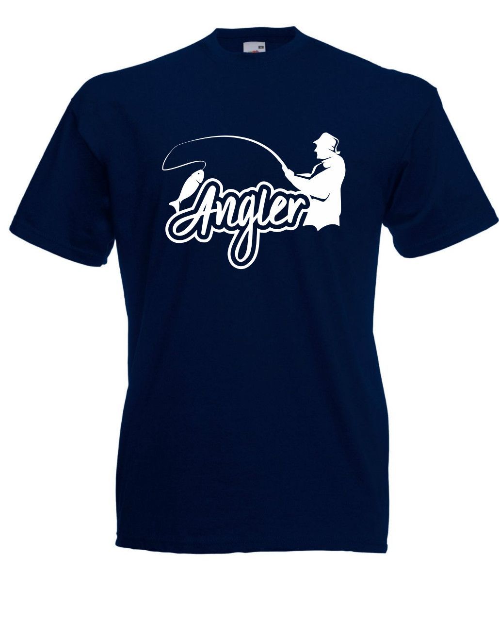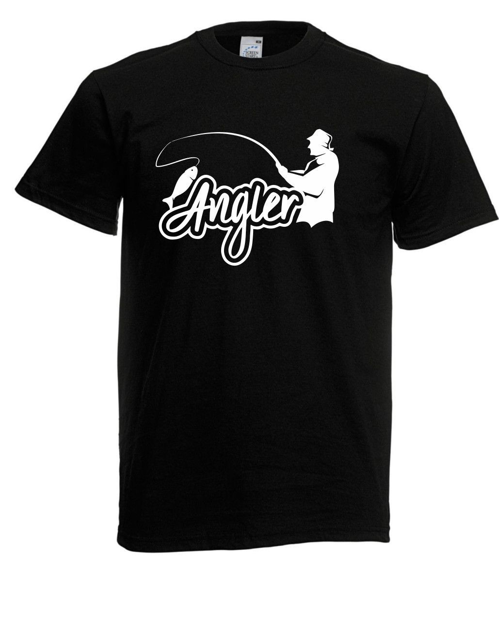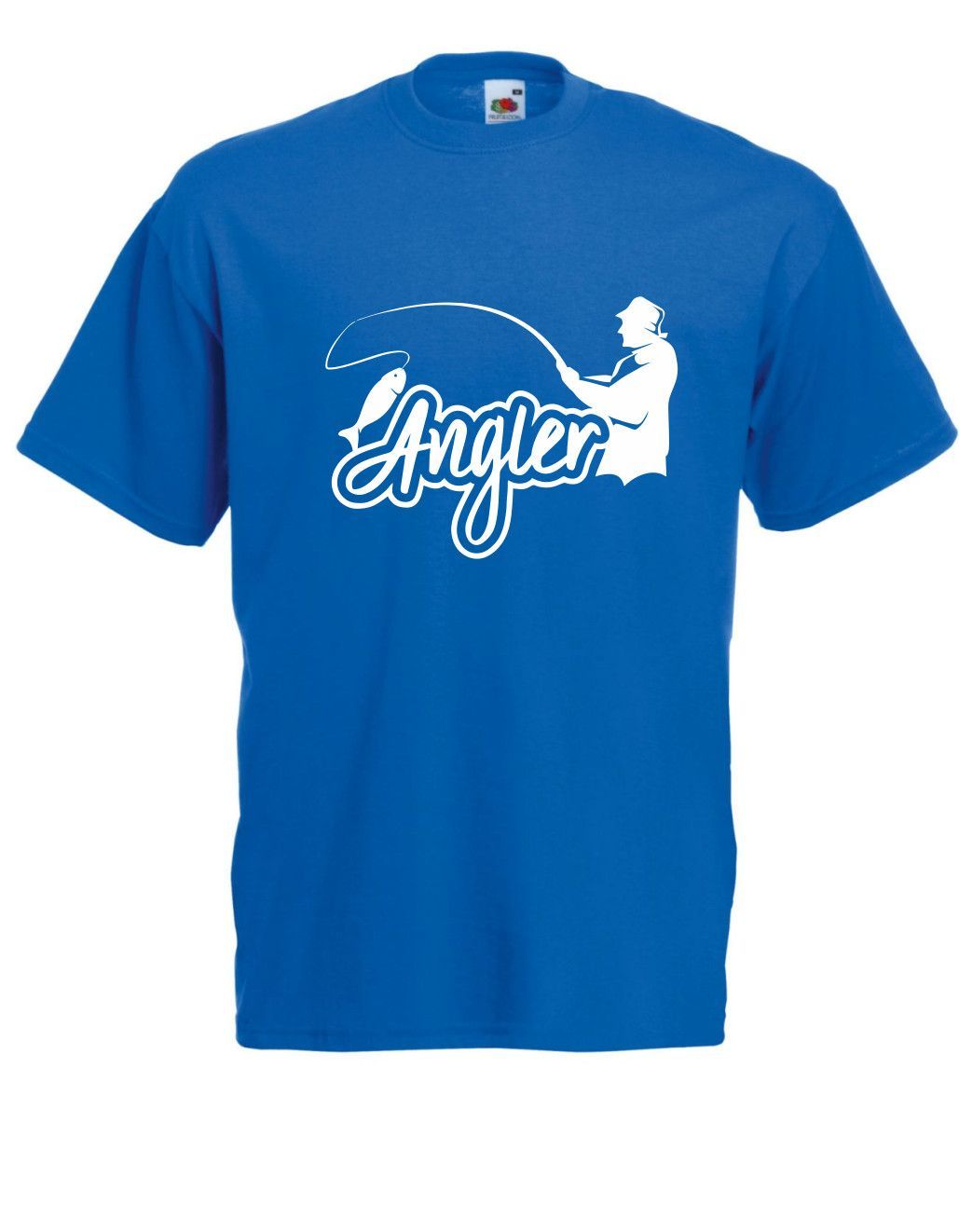 Herren T-Shirt Angler Angeln Fischer Essen Fisch Boot Fluss See Baggerloch