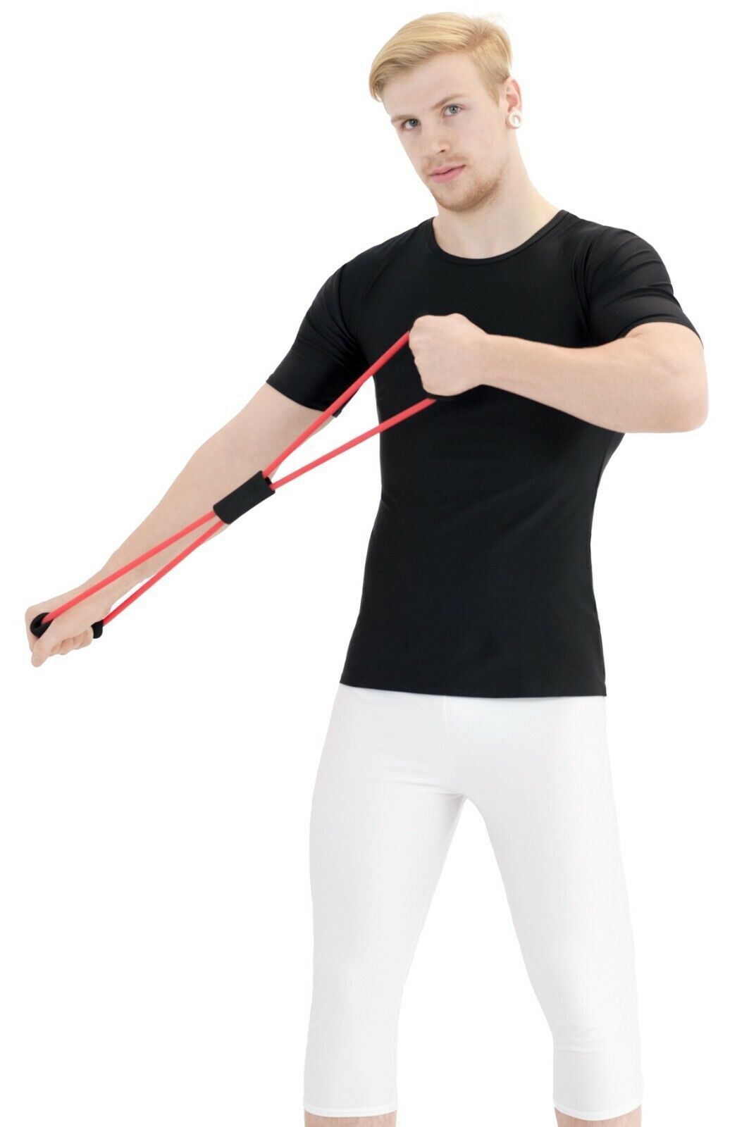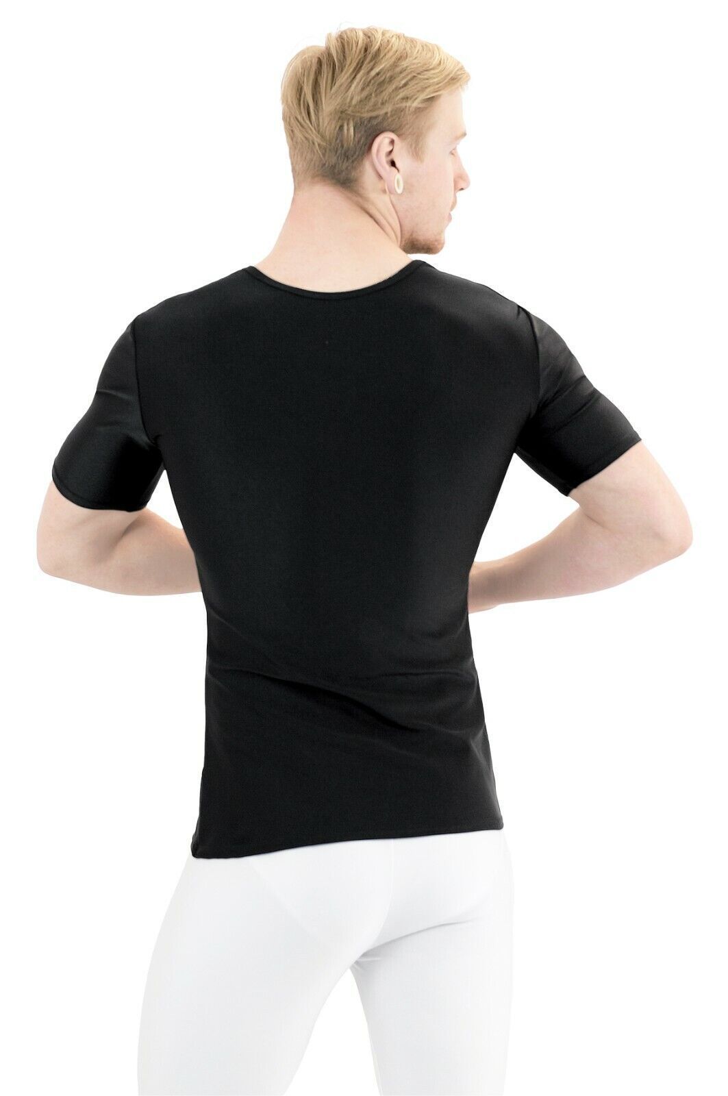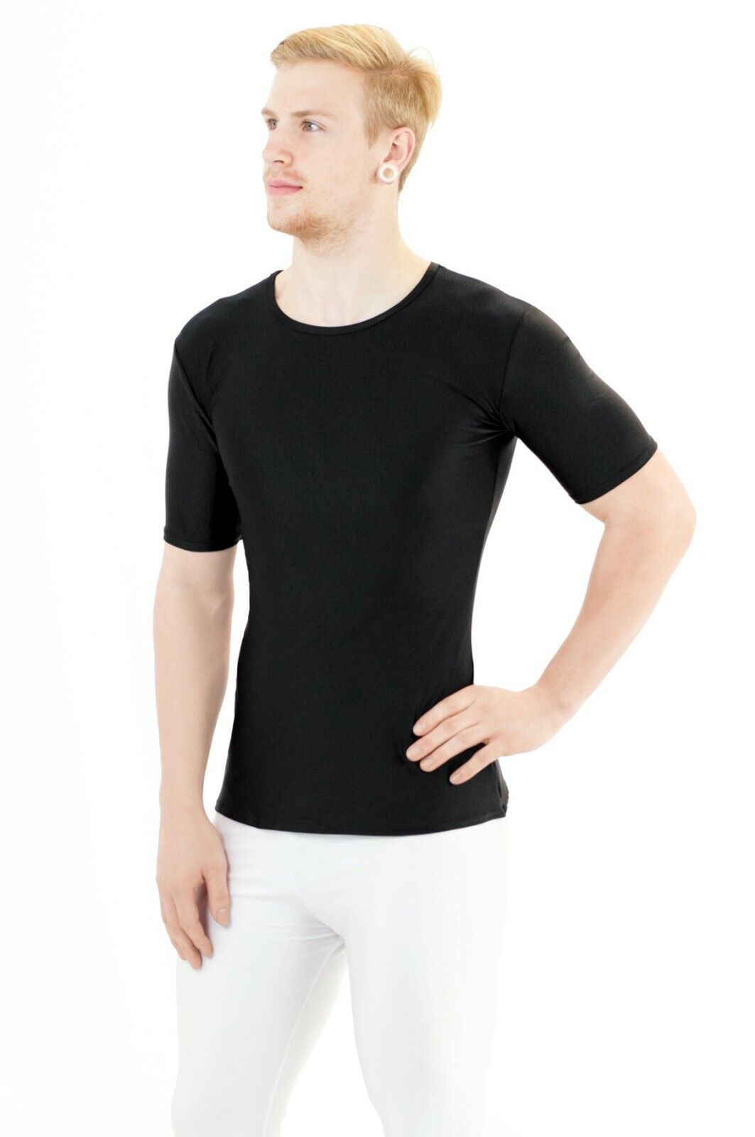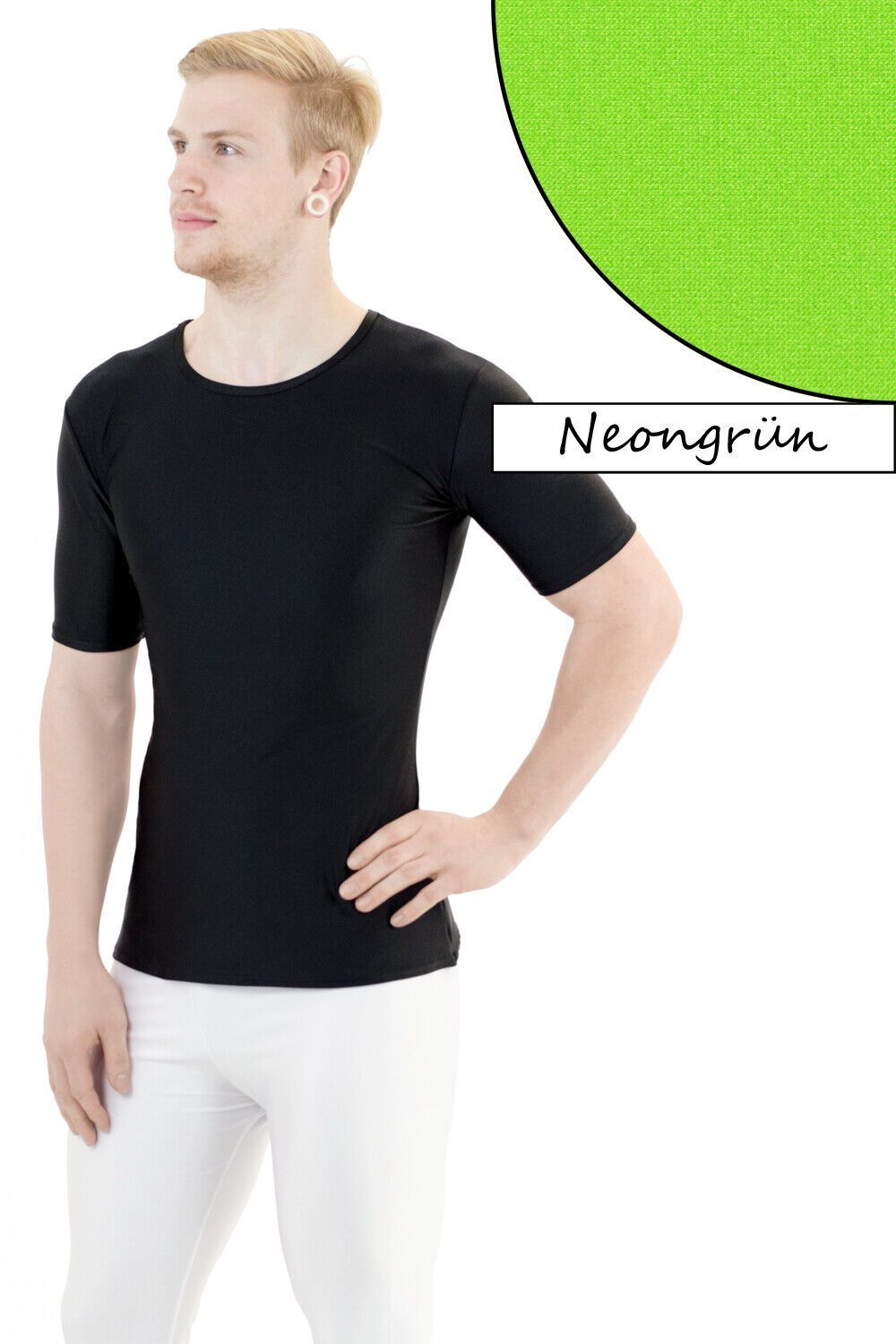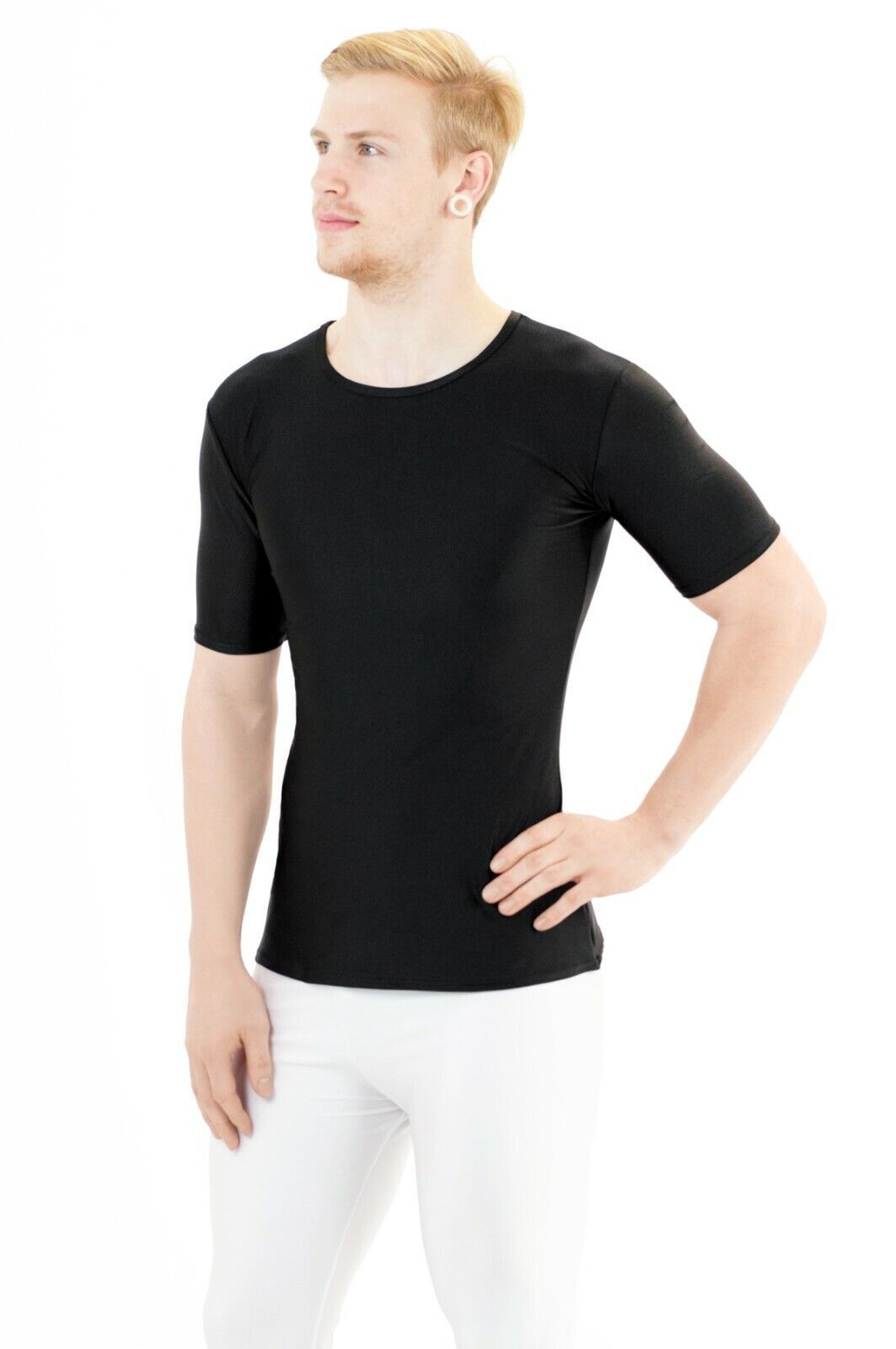 T-Shirt mit kurzen Ärmeln, figurbetont - tailliert geschnitten (wie ein Body). Hoch elastisch und glänzend. Material: 80% Polyamid, 20% Elasthan. Made in Germany, by us – ML-Sport24!