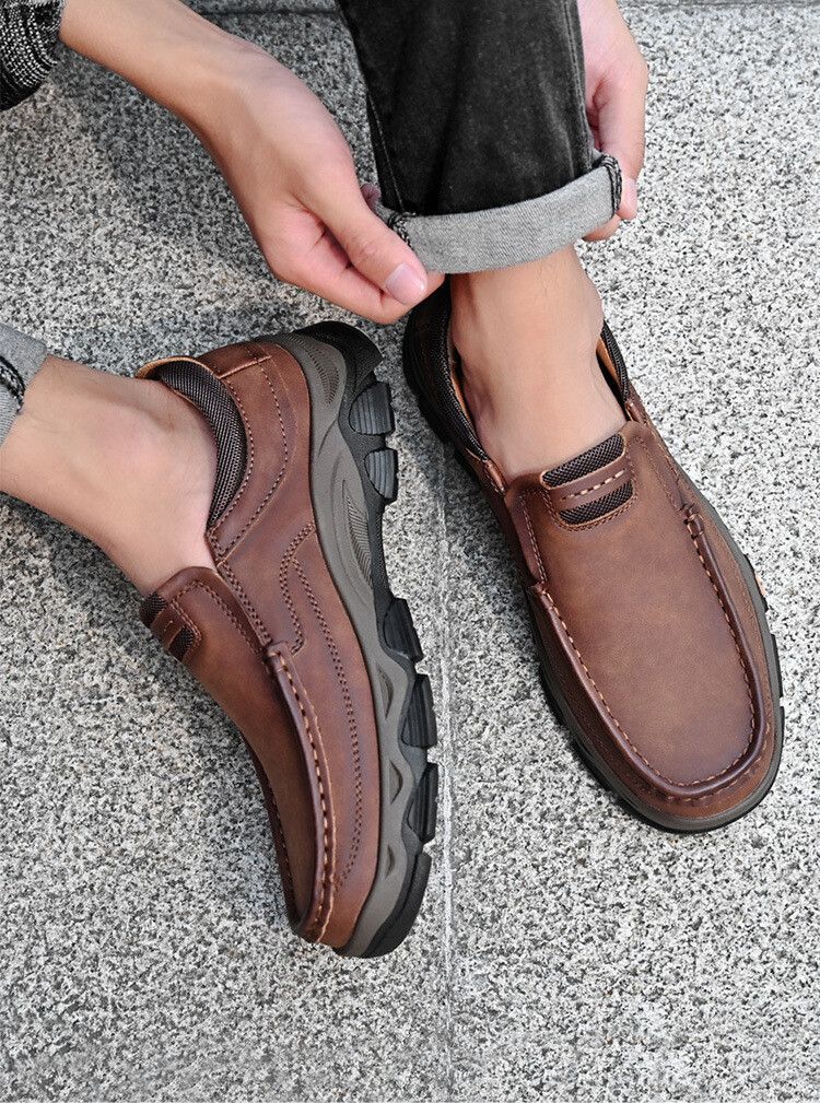 Herren Weiches Leder Freizeitschuhe Mode Fahrschuhe Flache Halbschuhe Mokassins