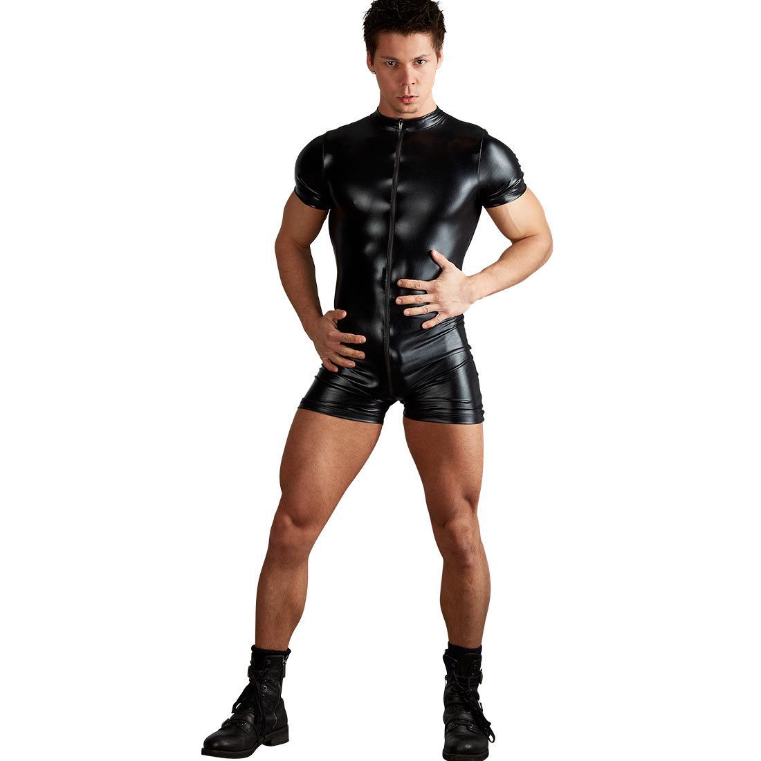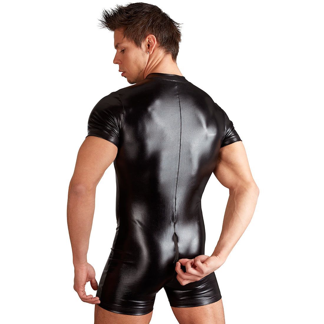 Herren Wetlook Body M L XL Zip schwarz Männer Overall Sexy Bodysuit "Mika"