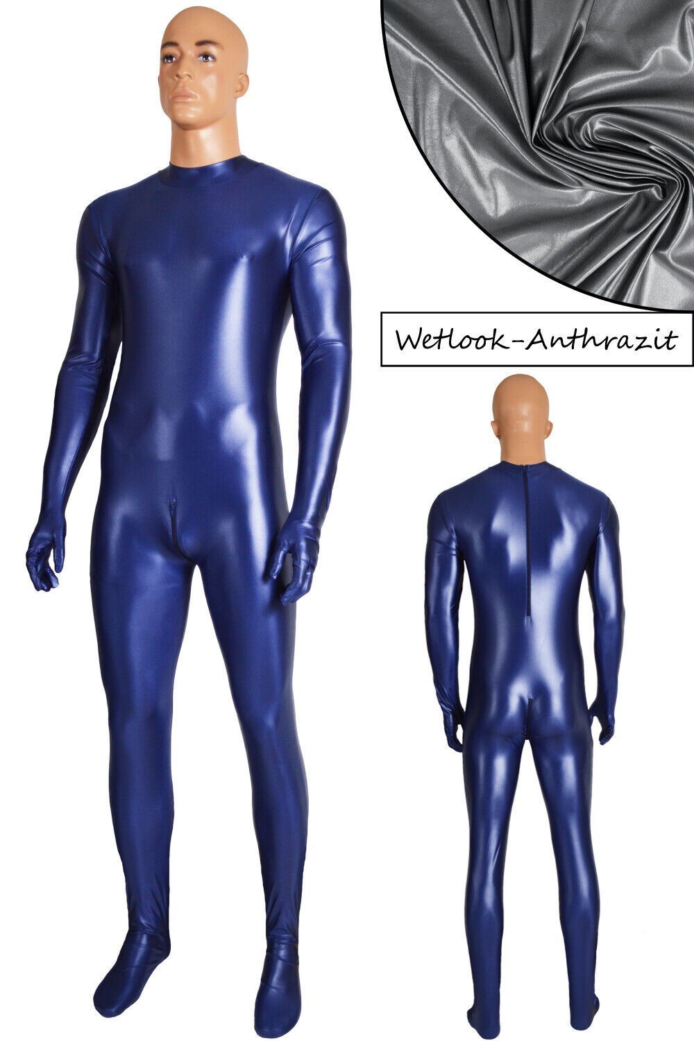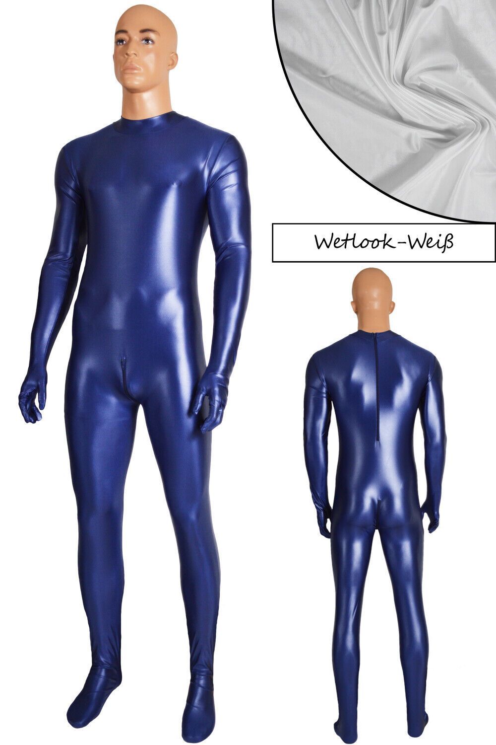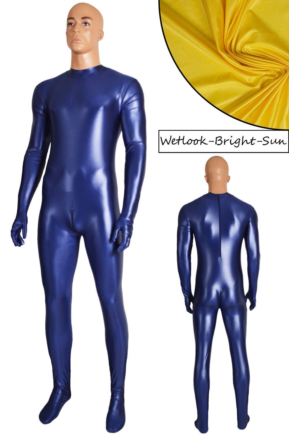 Herren Wetlook Ganzanzug Rücken- + Schritt-RV Hand + Fuß stretch elastisch glänzend