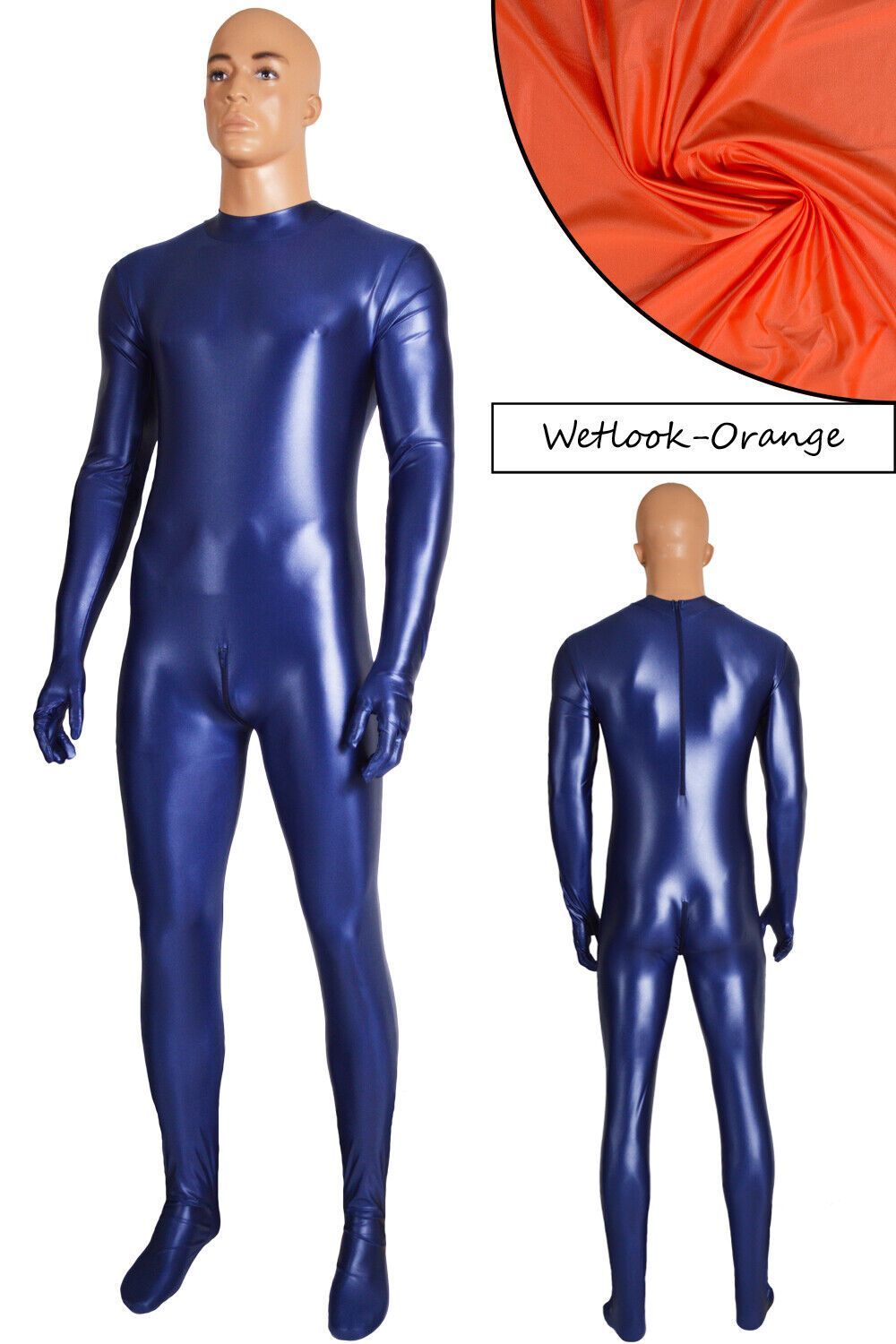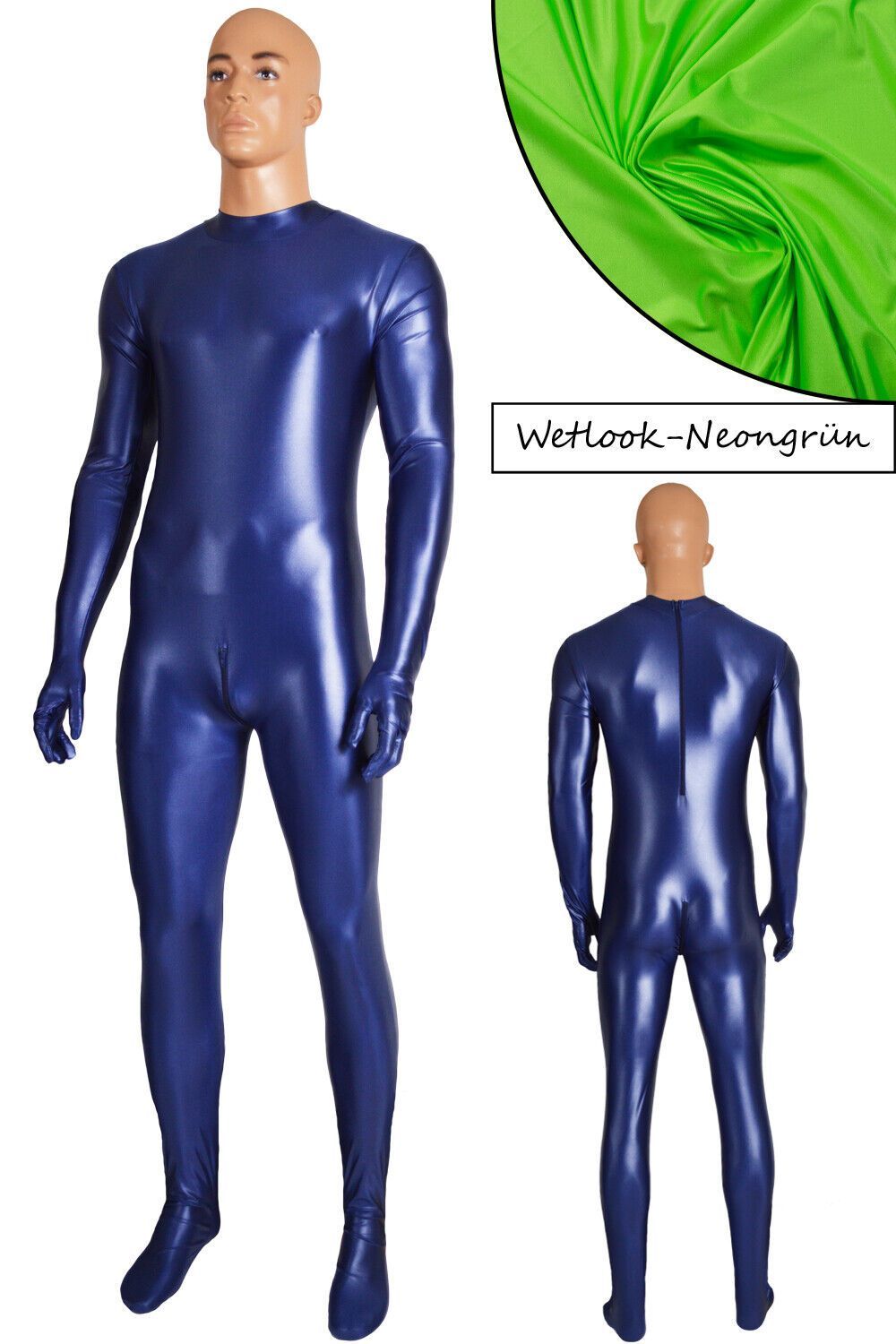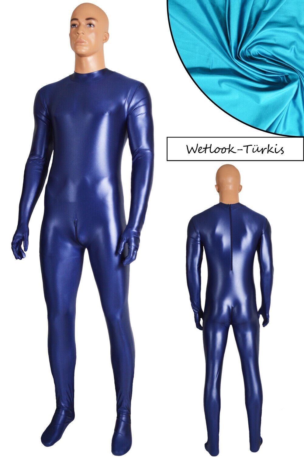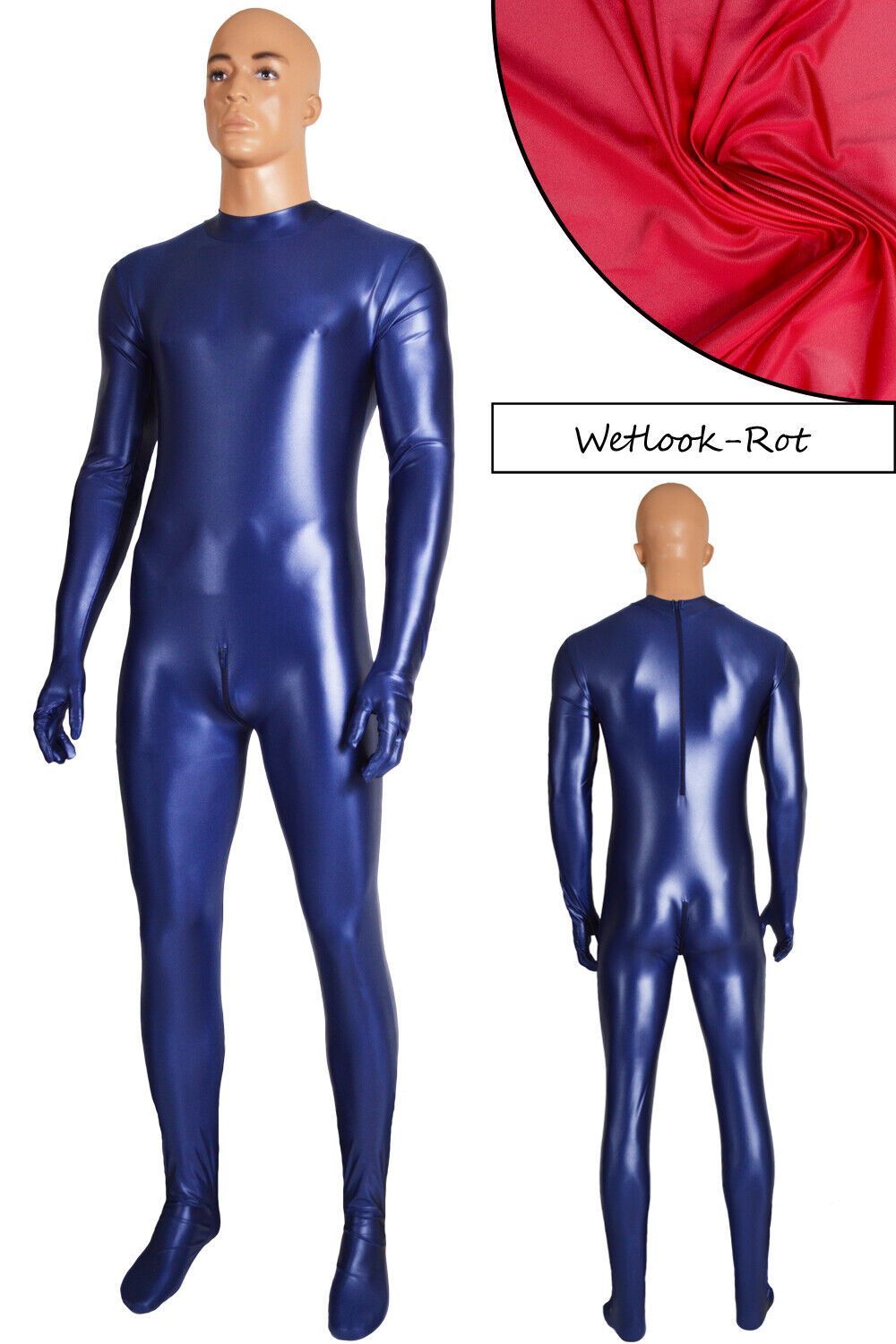 Herren Wetlook Ganzanzug Rücken- + Schritt-RV Hand + Fuß stretch elastisch glänzend