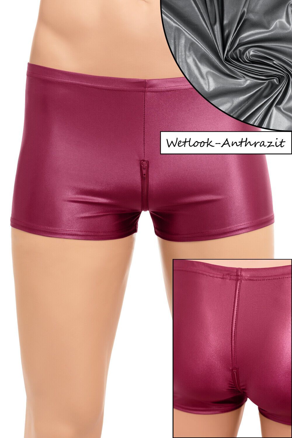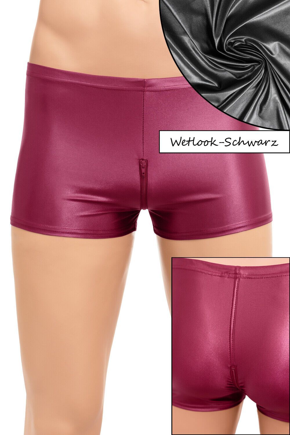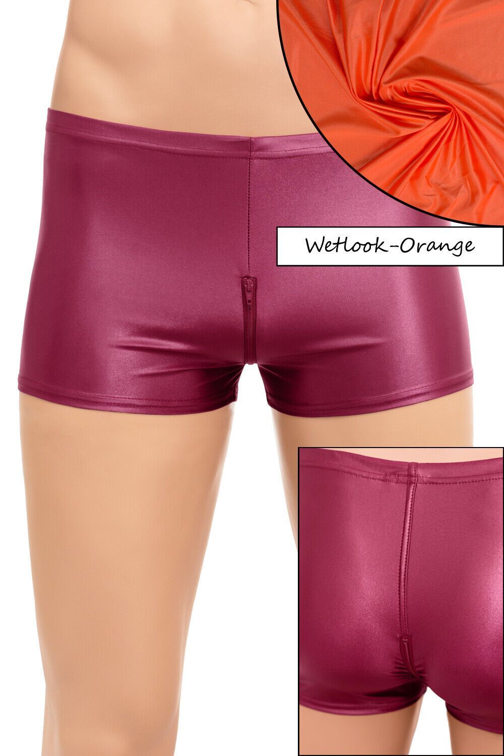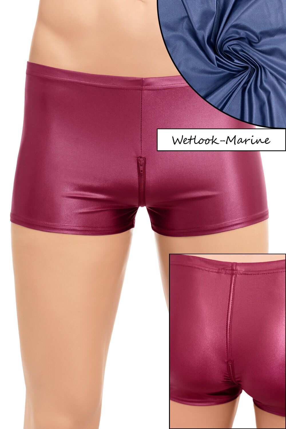 Herren Wetlook Shorty Schritt-RV Po-Konturnaht Hüftsitz stretch shiny hauteng