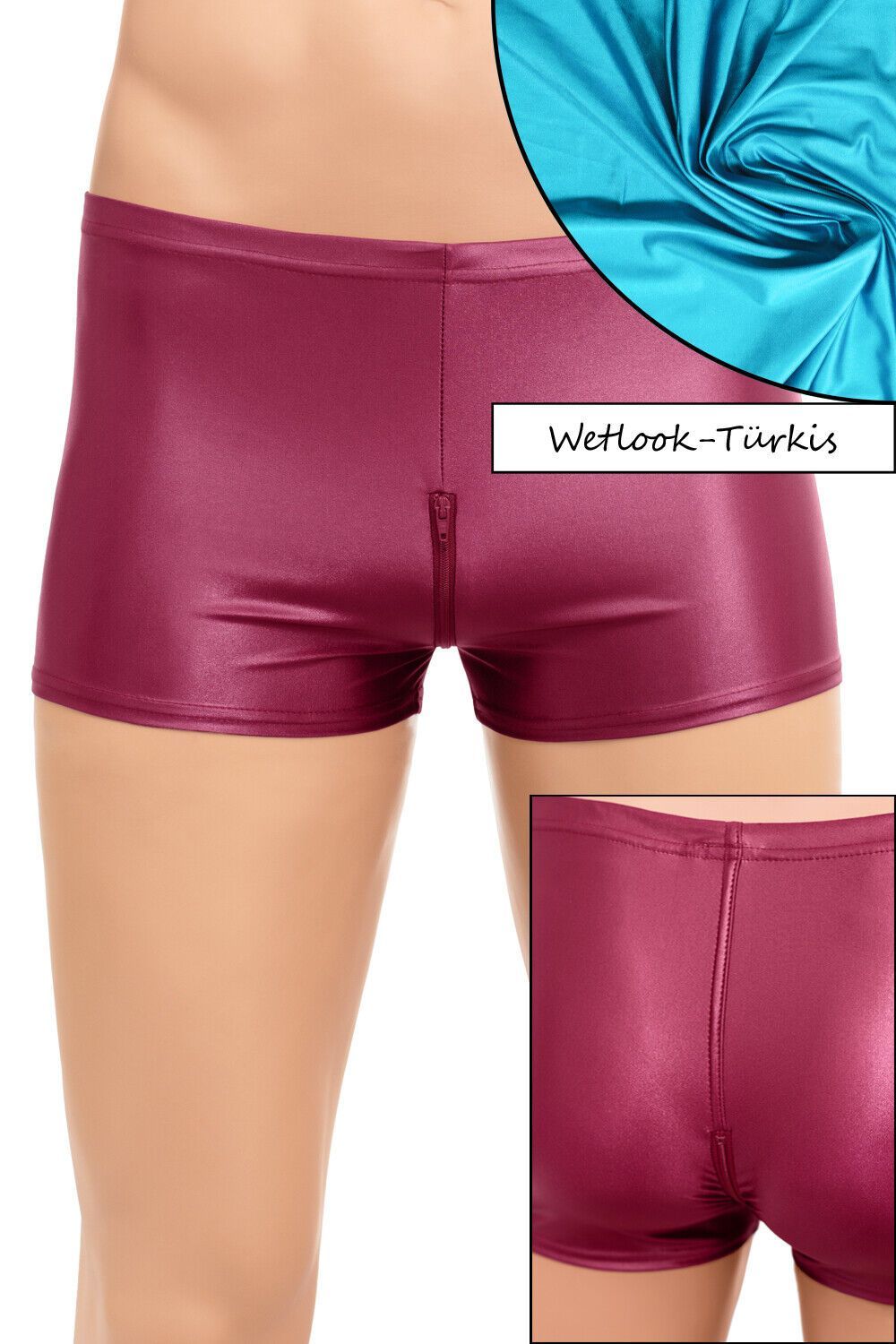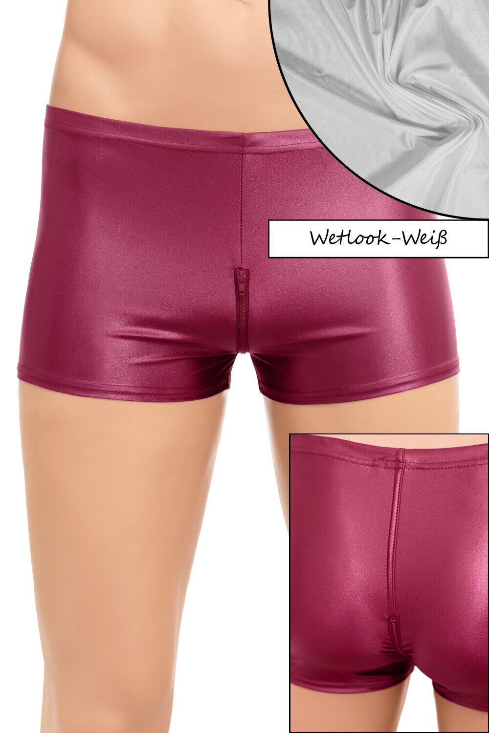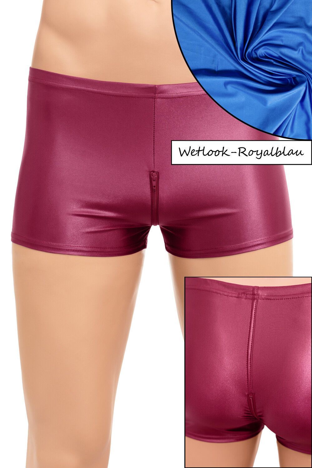 Herren Wetlook Shorty Schritt-RV Po-Konturnaht Hüftsitz stretch shiny hauteng