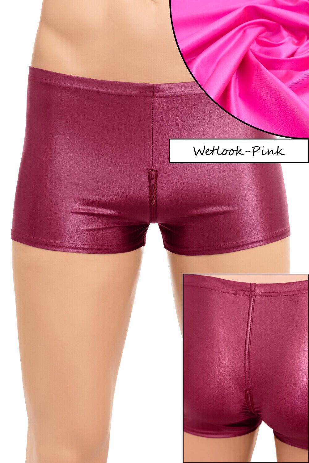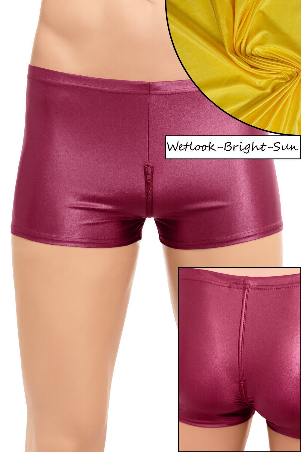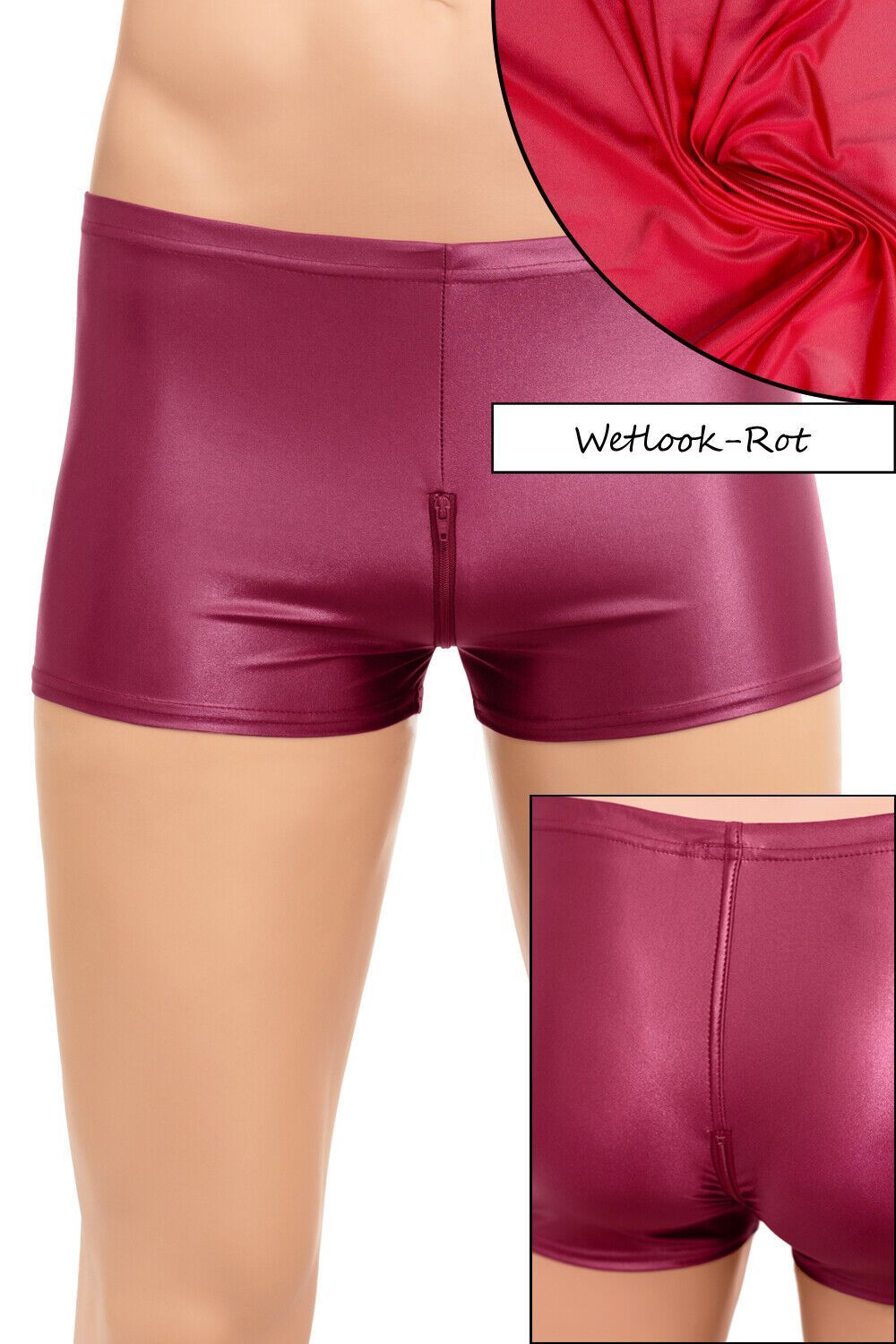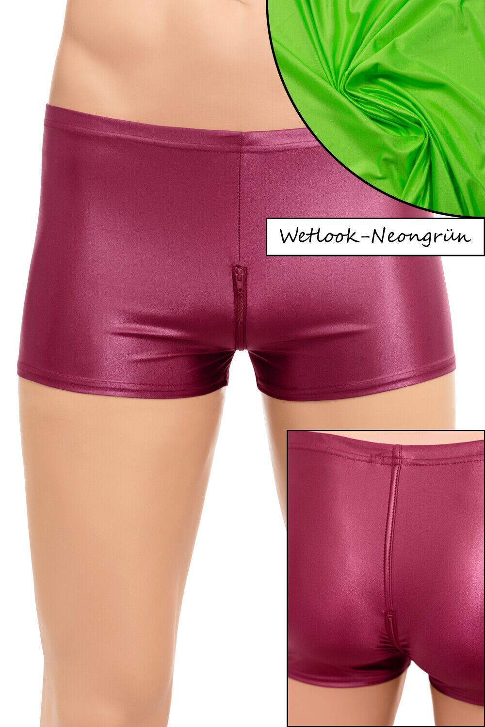 Herren Wetlook Shorty Schritt-RV Po-Konturnaht Hüftsitz stretch shiny hauteng