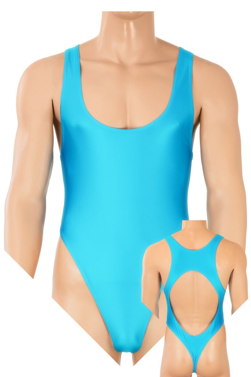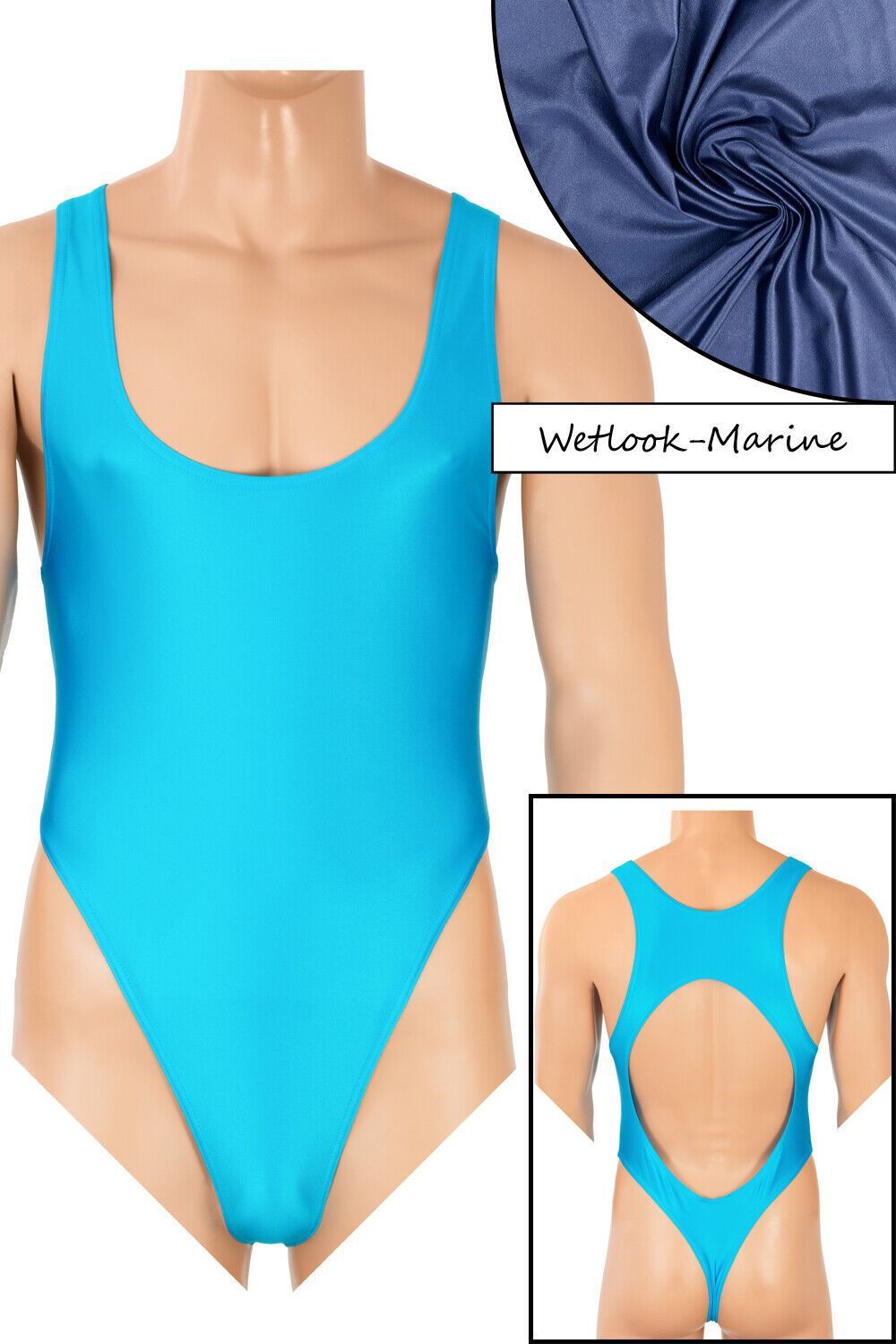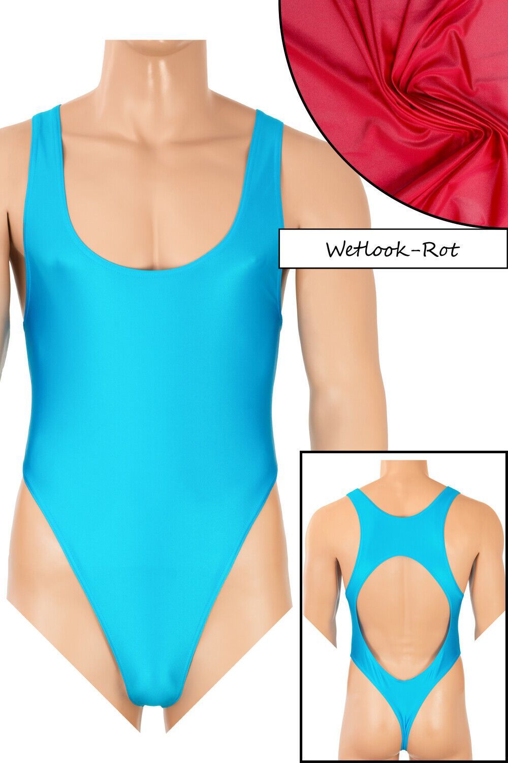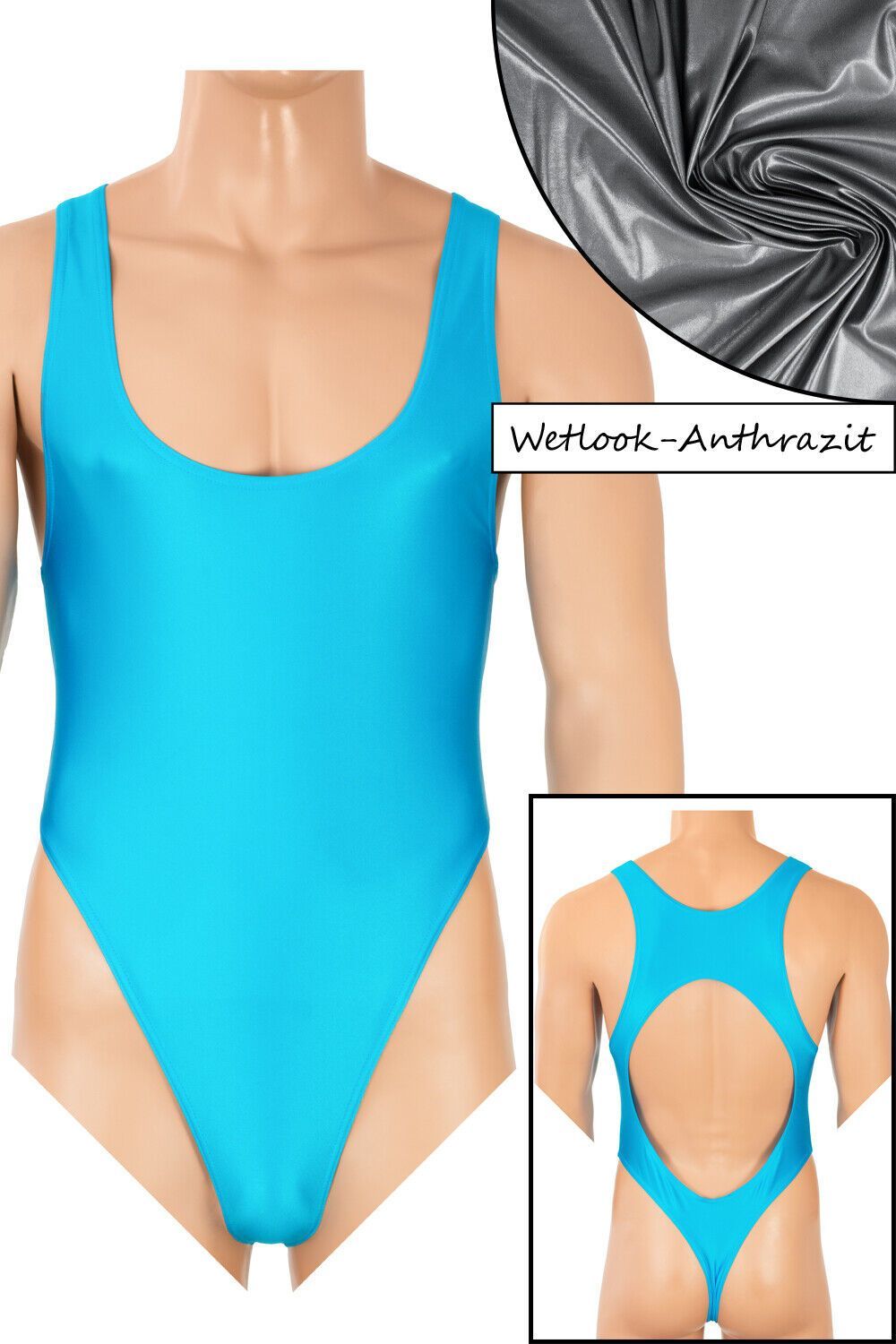 Herren Wetlook Stringbody freier Rücken Boxer Glanz shiny elastisch hauteng S-XL