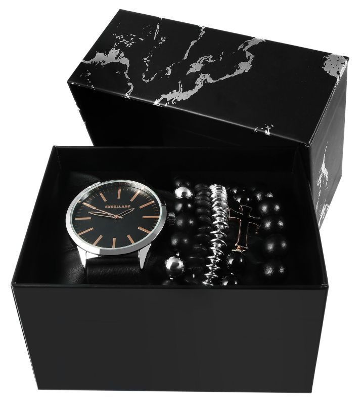 Herrenarmbanduhr fünf Armbändern Geschenkset schwarz/silberfarben Excellanc