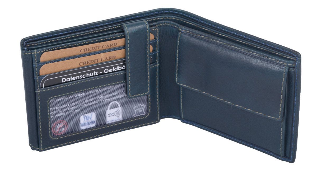 Herrenbörse aus blauem Echtleder mit Foto-Sichtfenstern