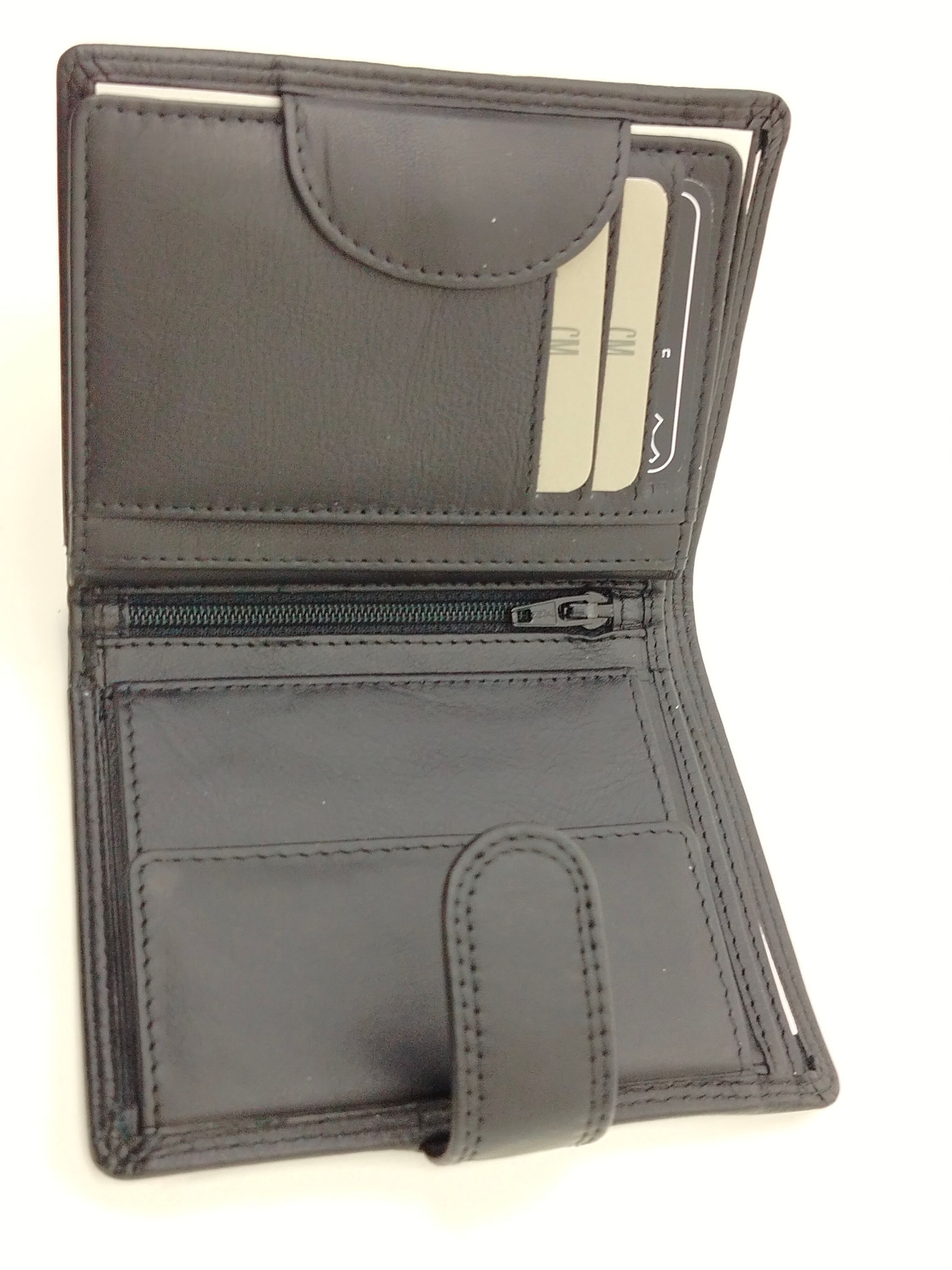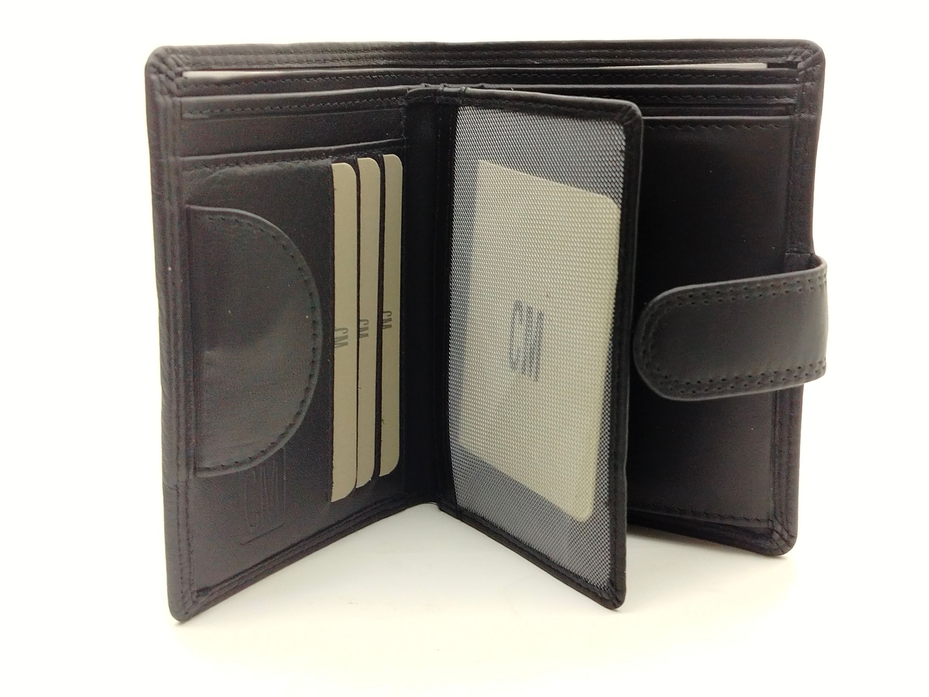 Herrenbörse Herren Geldbörse Leder Brieftasche Kombibörse CM, mit Lasche schwarz