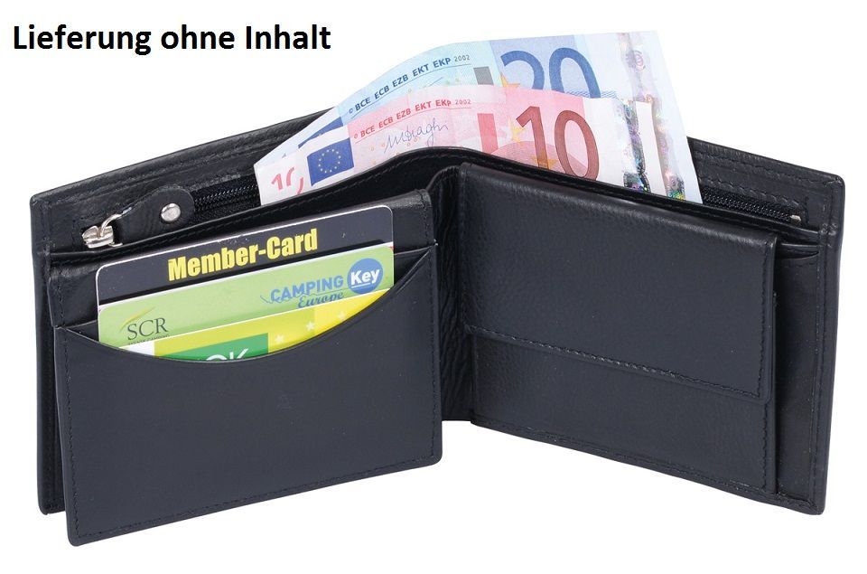 Herrenbörse mit Reißverschluss-Scheinfach, Lederbörse schwarz