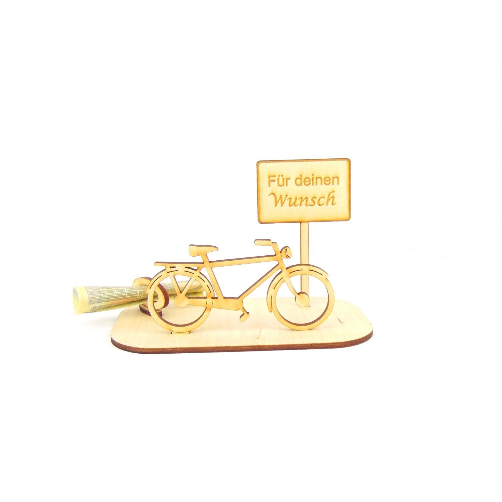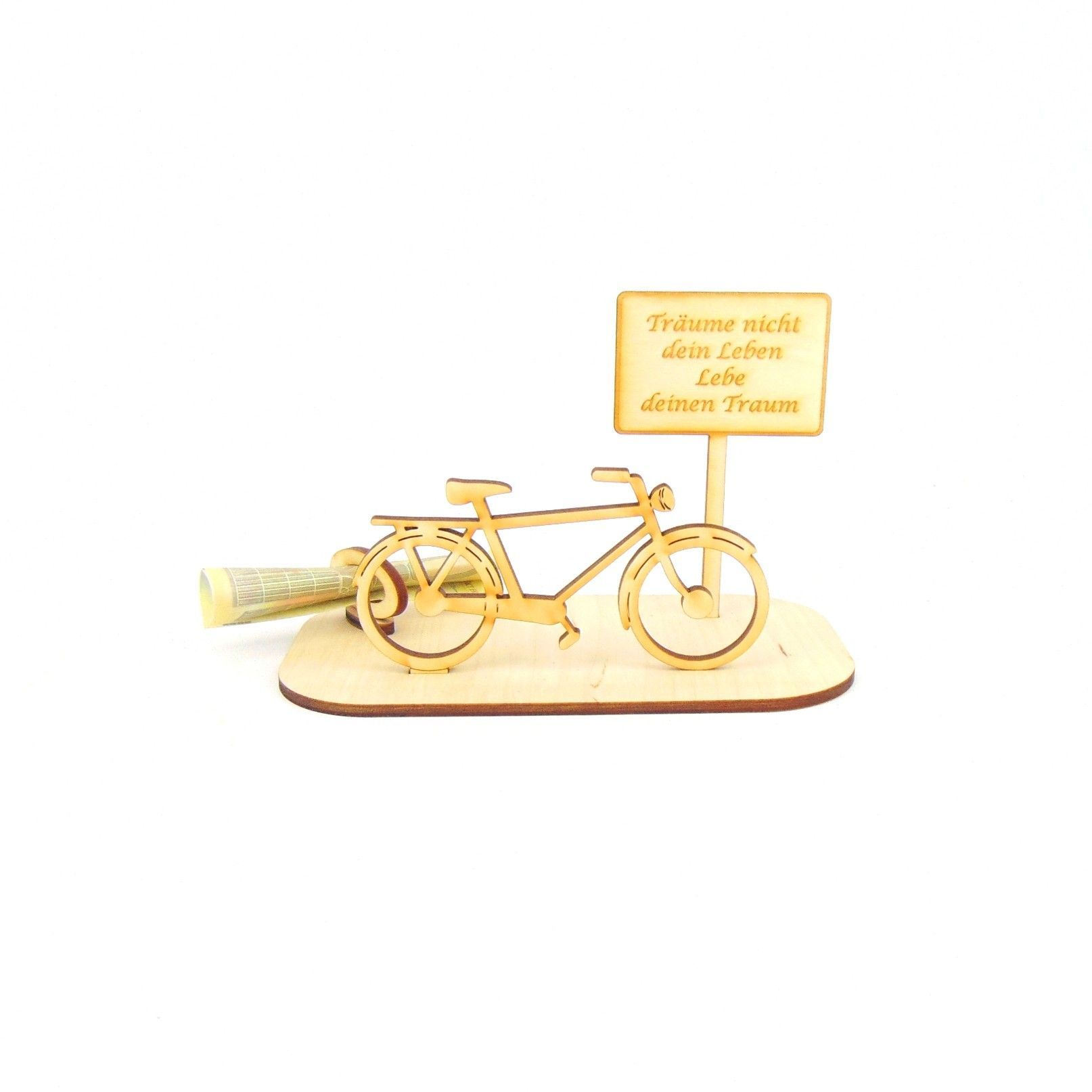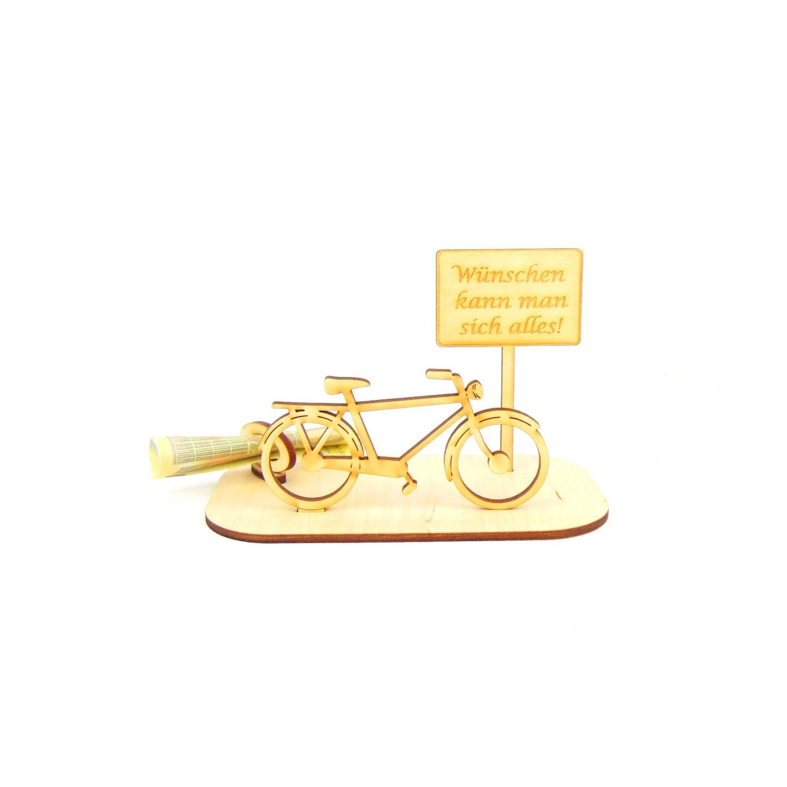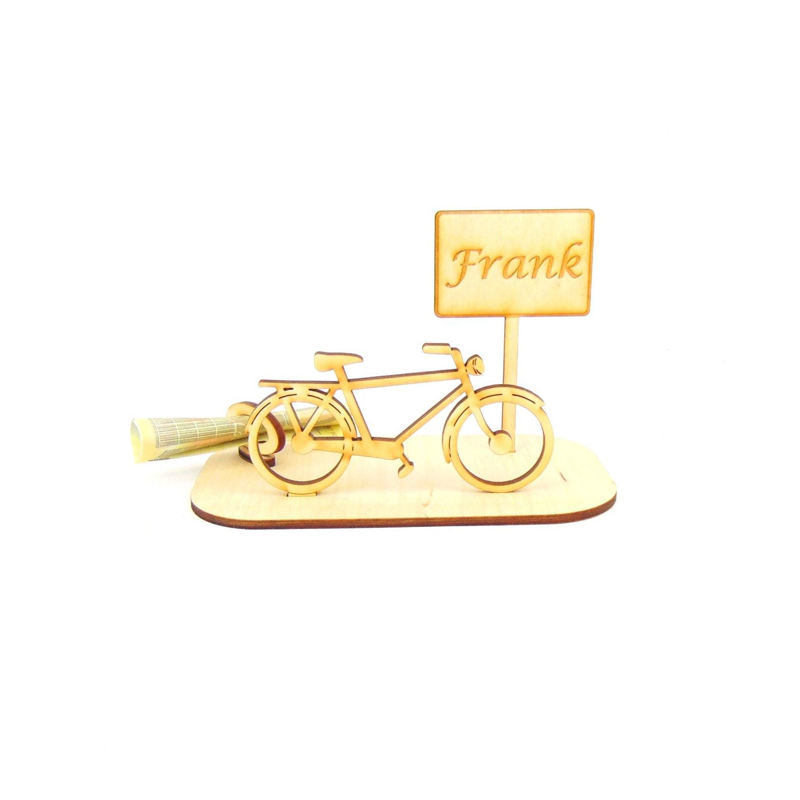 Herrenfahrrad Geld und Gutschein Geschenk aus Holz "Wünschen" Personalisiet -K24-