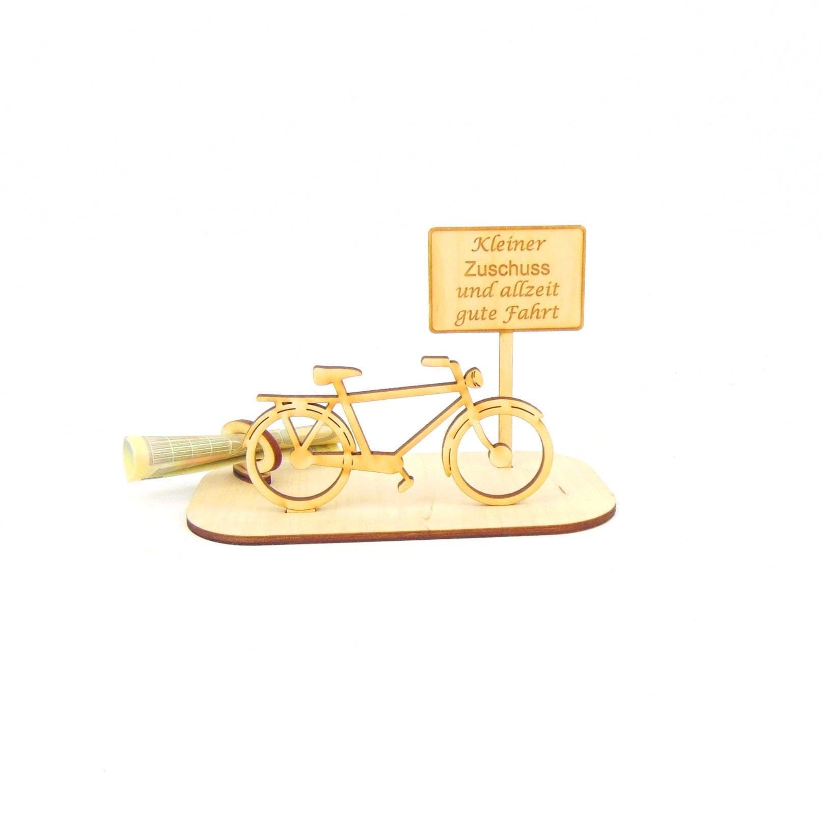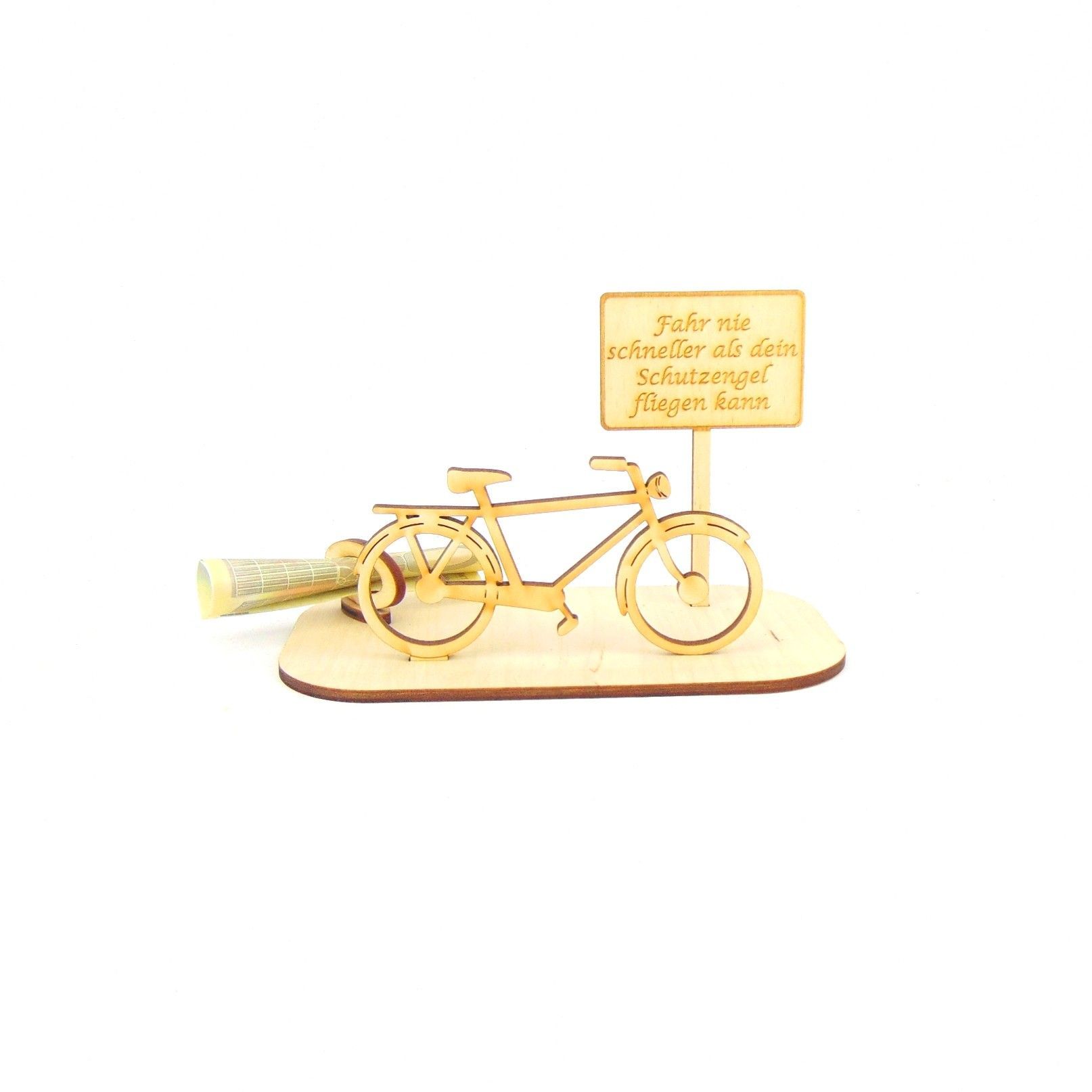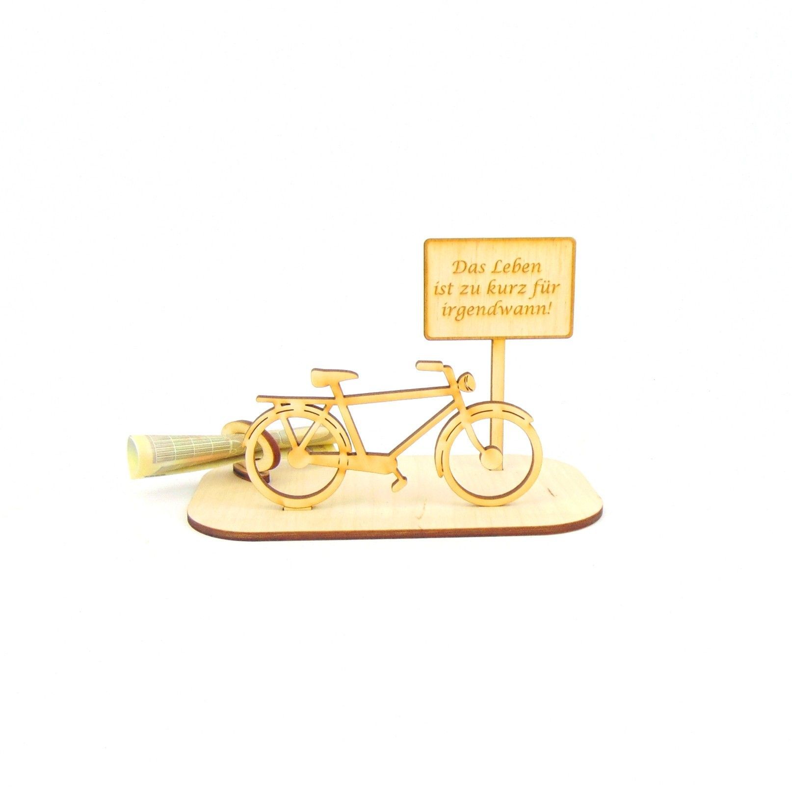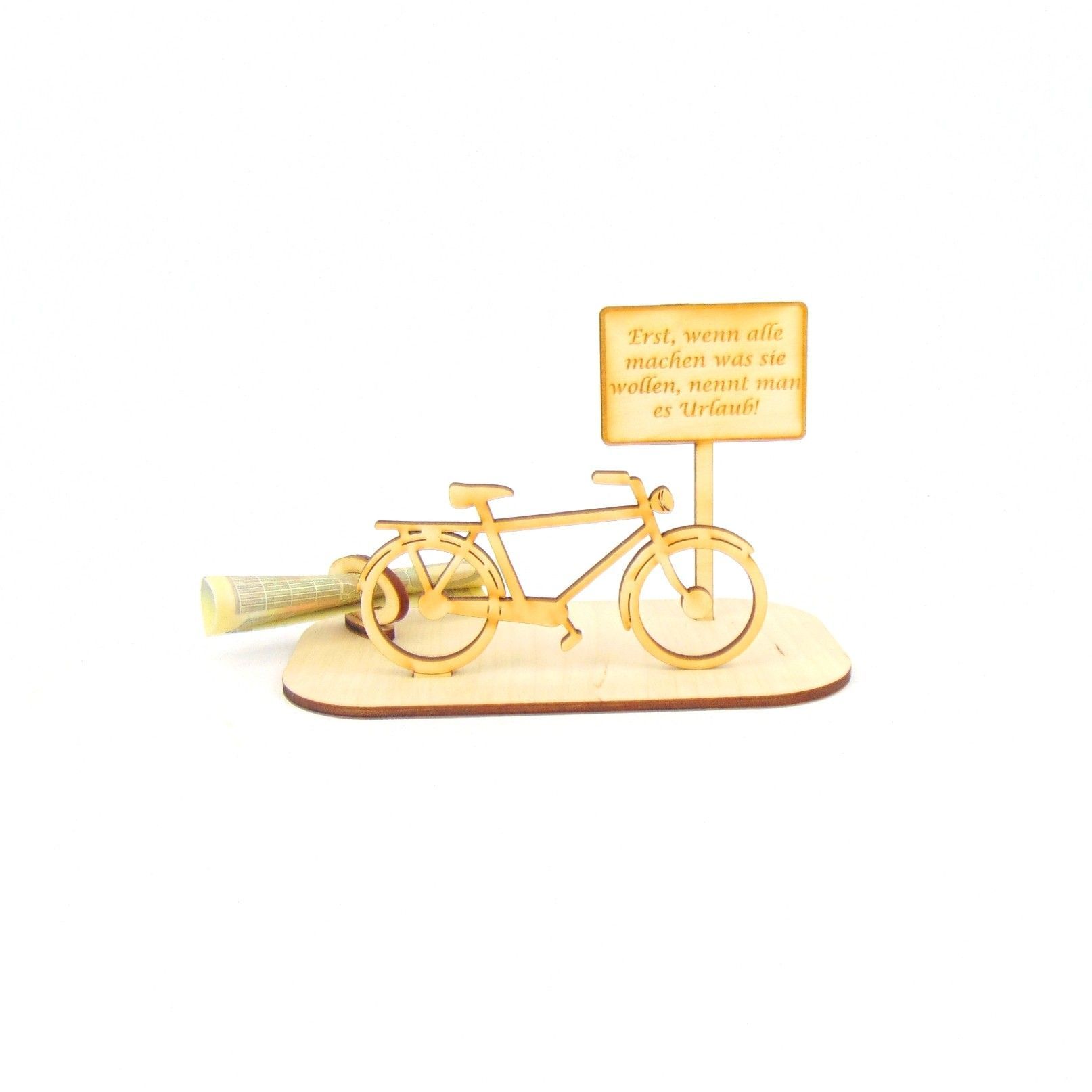 Herrenfahrrad Geld und Gutschein Geschenk aus Holz "Wünschen" Personalisiet -K24-