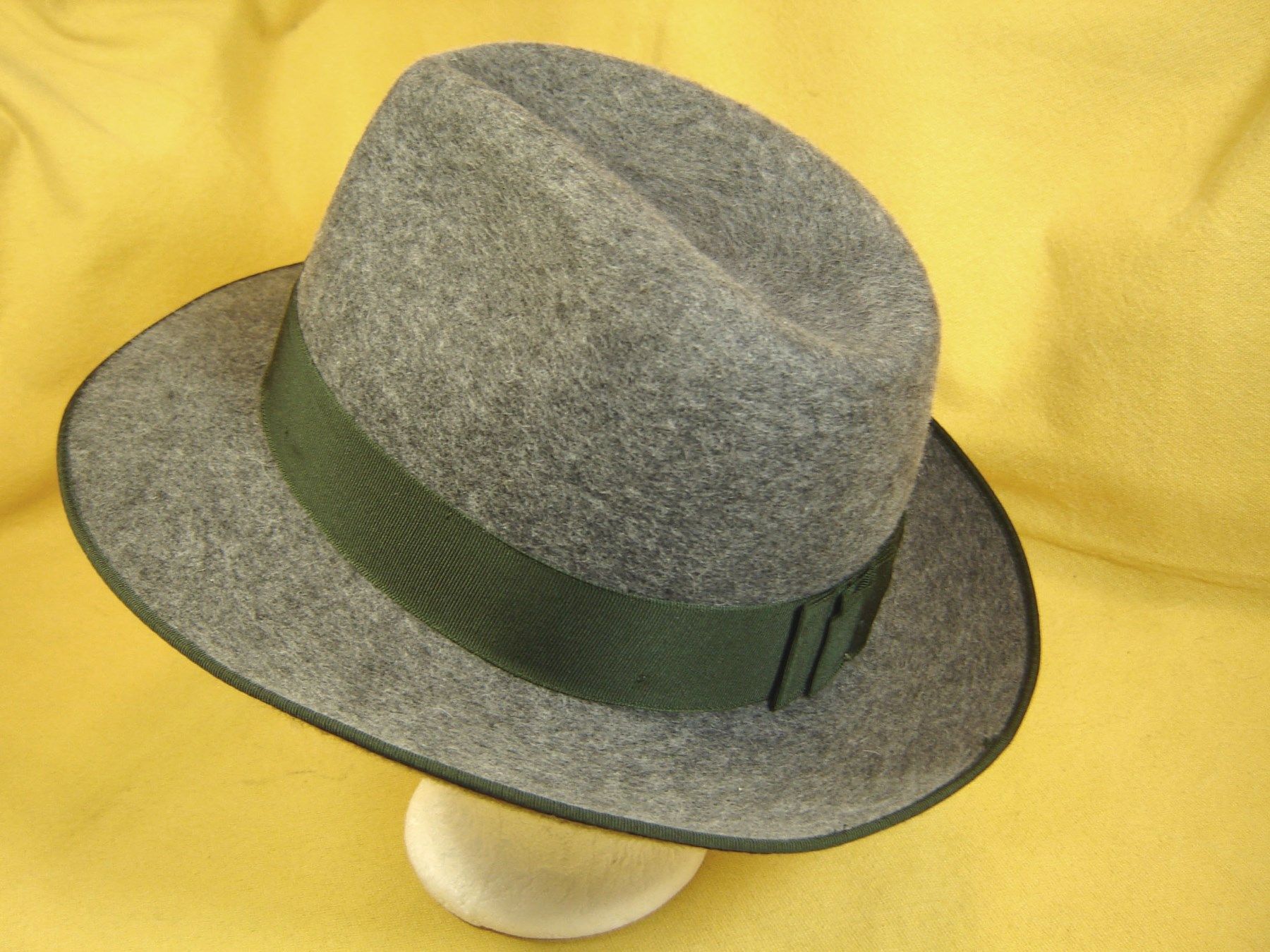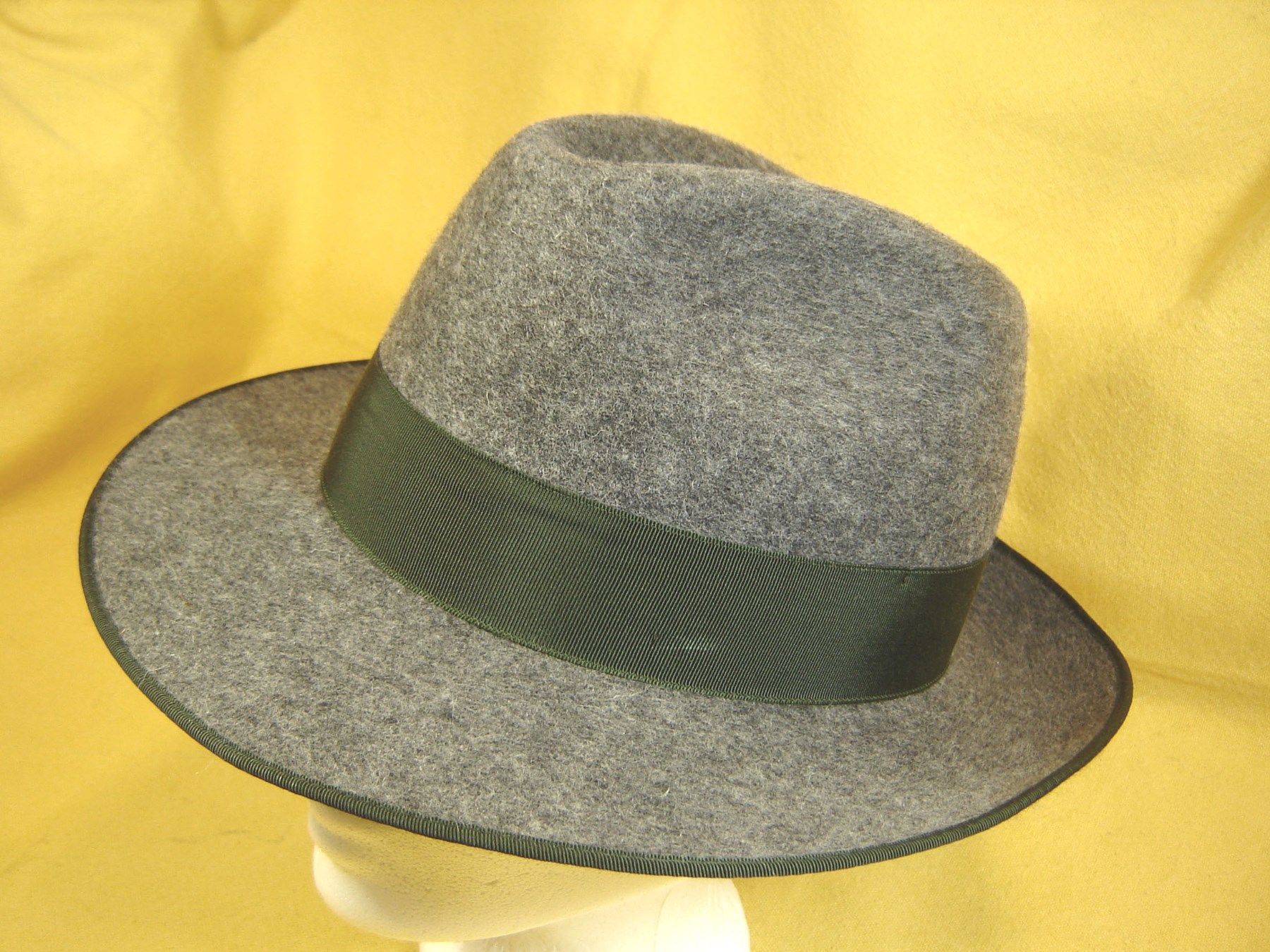 Herrenhut Forsthut Schützenhut Loden grau meliert mit Band grün Jägerhut Gr 57 58
