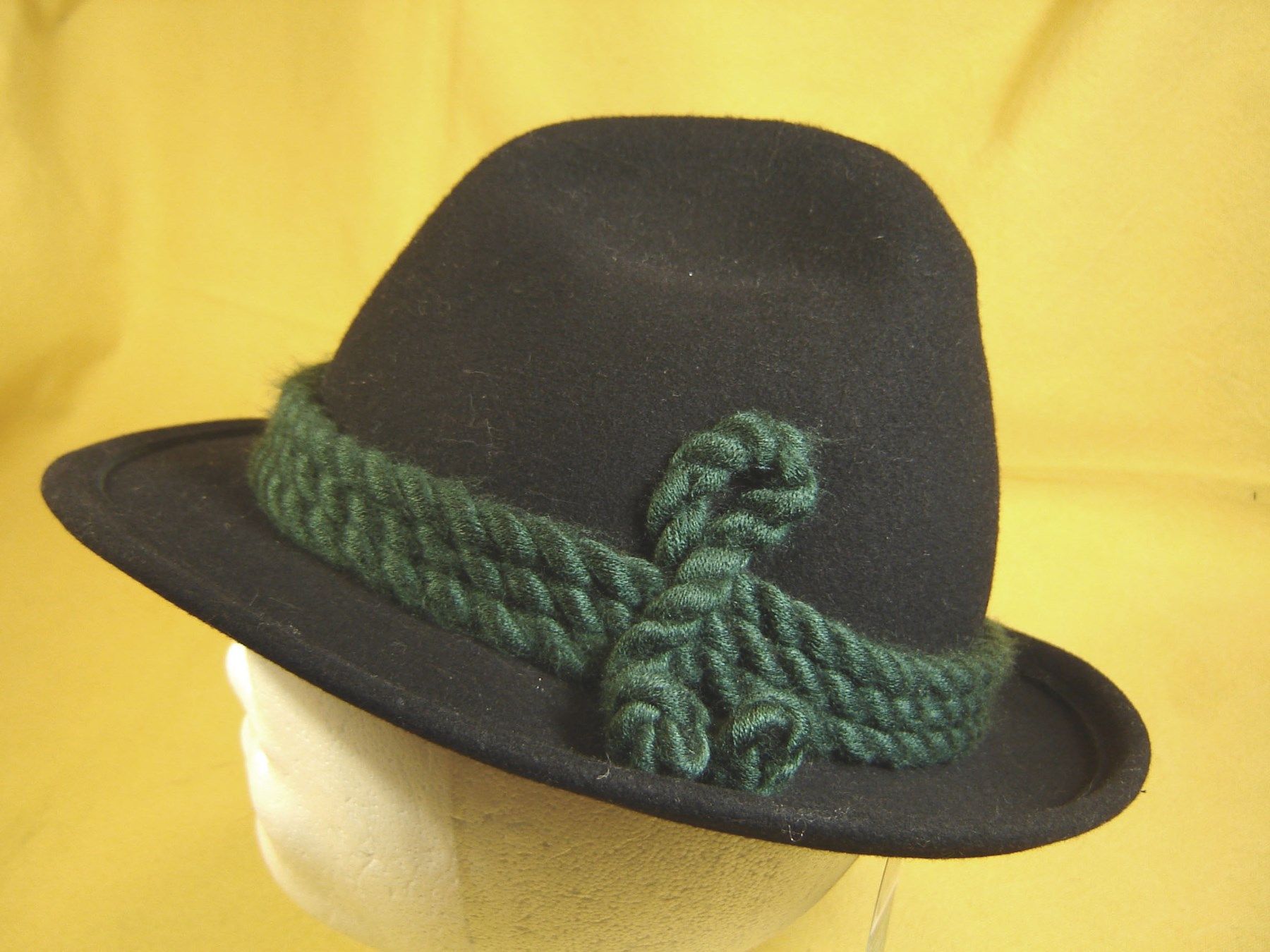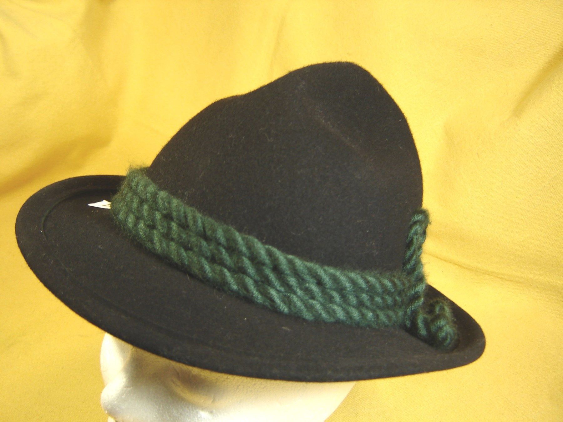 Herrenhut Trachtenhut Loden schwarz mit Kordel grün Wanderhut Gr 53 Drsp33