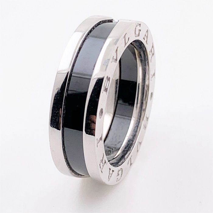 Herrenring aus 18 kt Weißgold mit Keramik Gr 62 EU