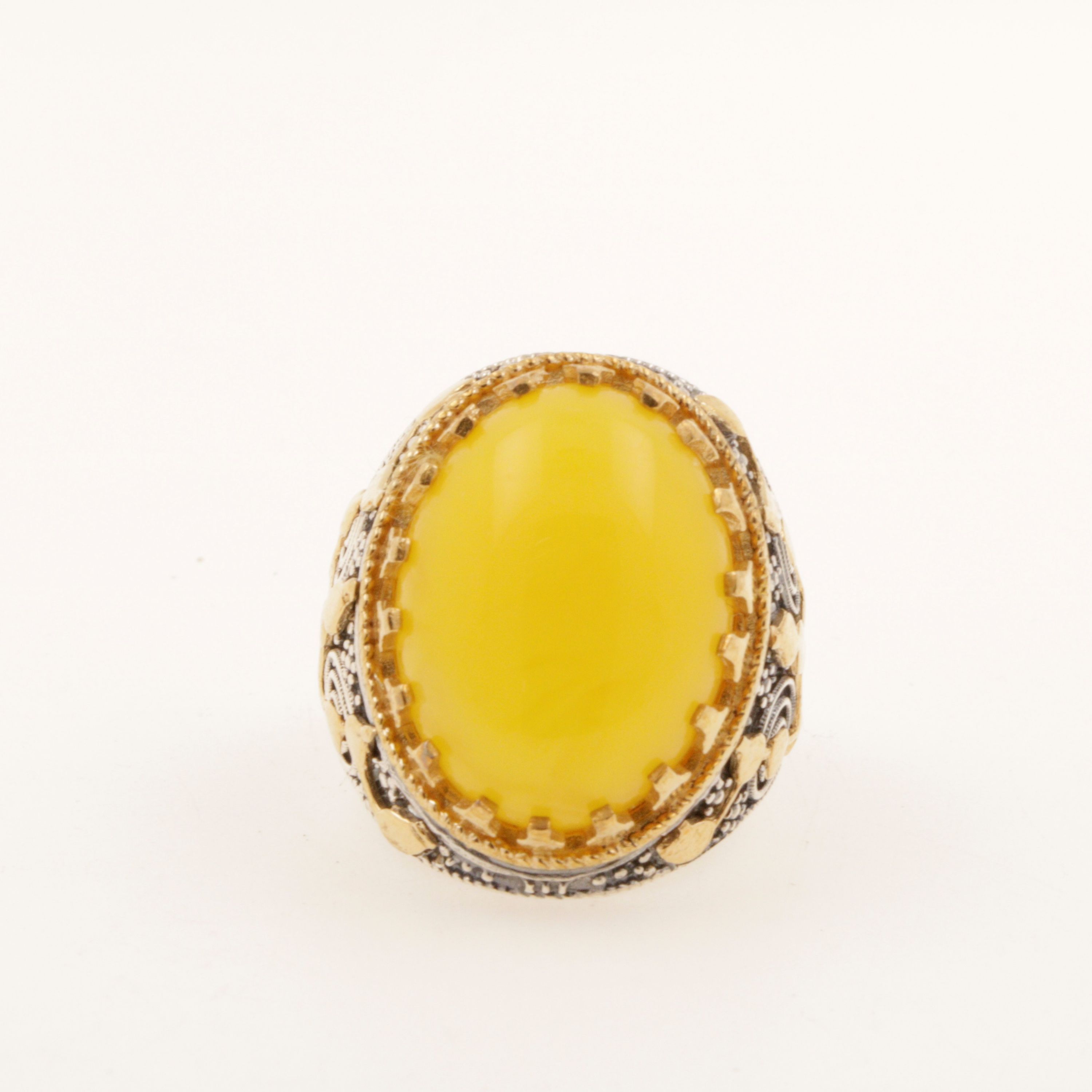 Herrenring aus 925er Silber mit Bernstein Gr 57 EU