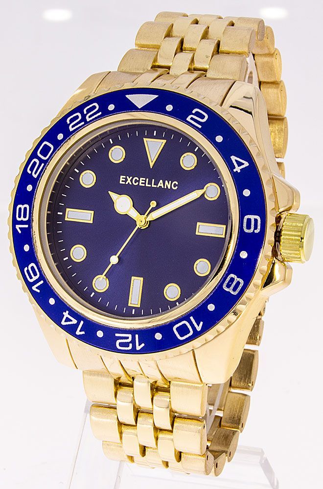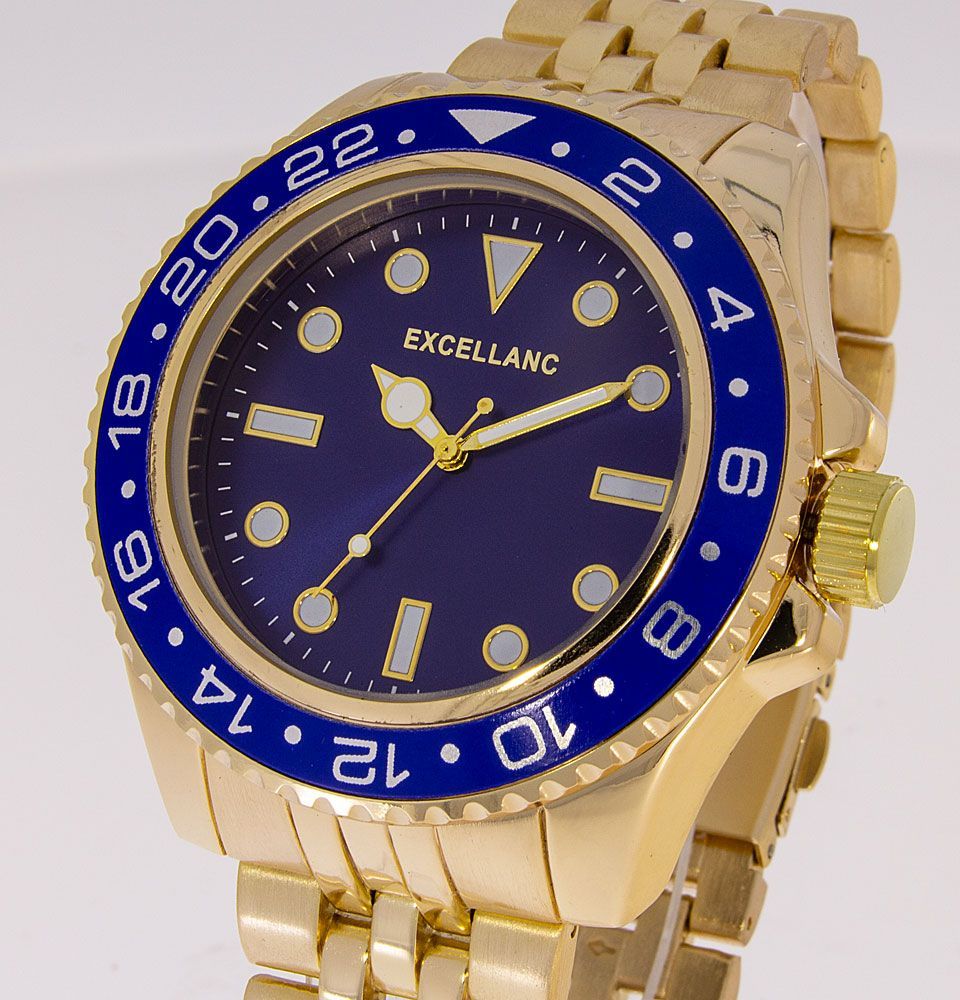 Herrenuhr Excellanc goldfarben blaue Lünette