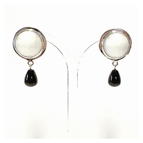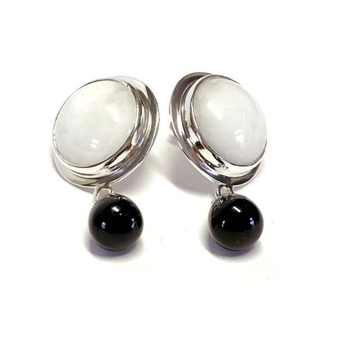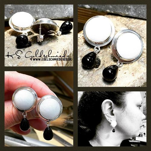 herrliche Ohrstecker - Einzelstück - in 925/- Sterling Silber mit Kascholong und Onyx