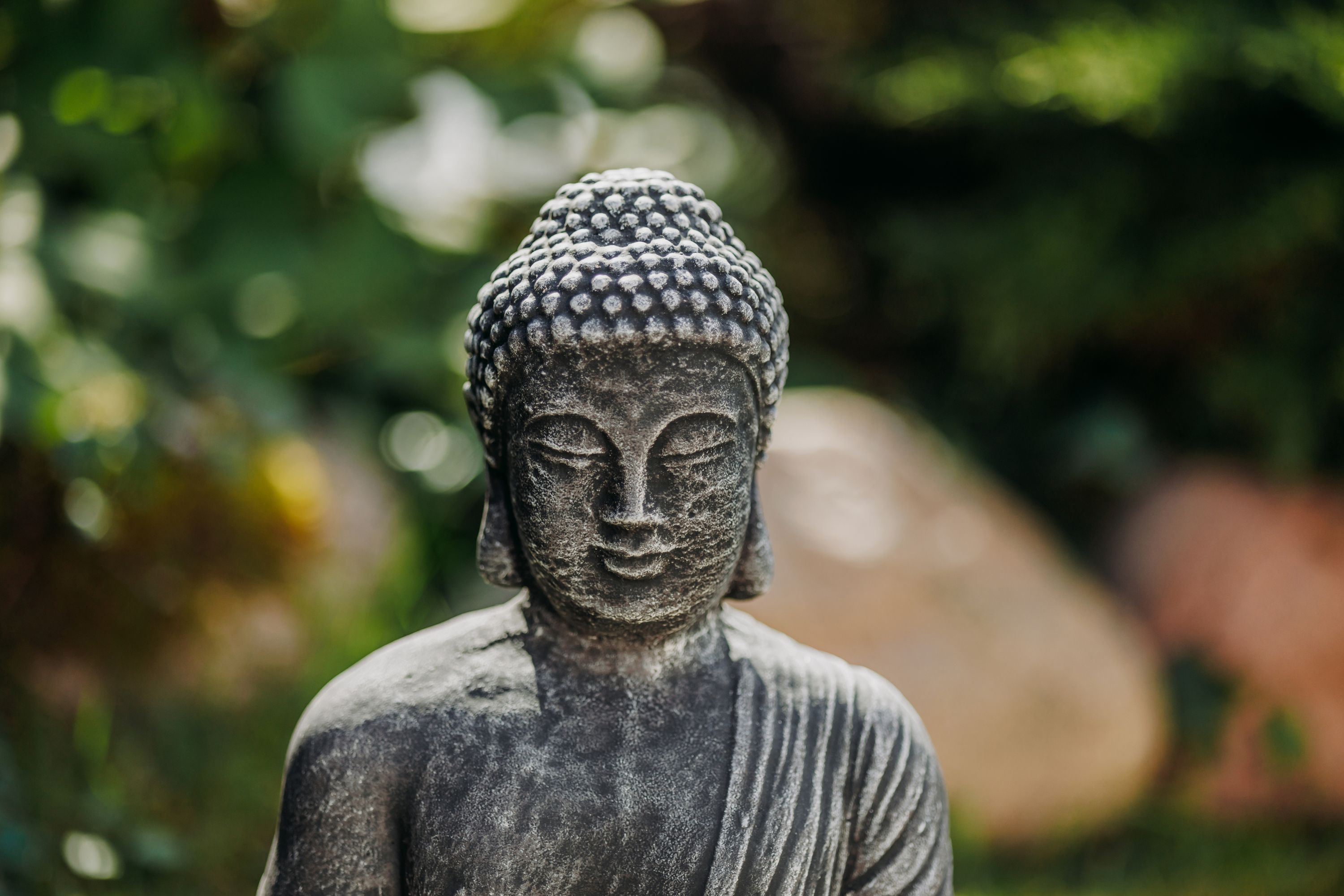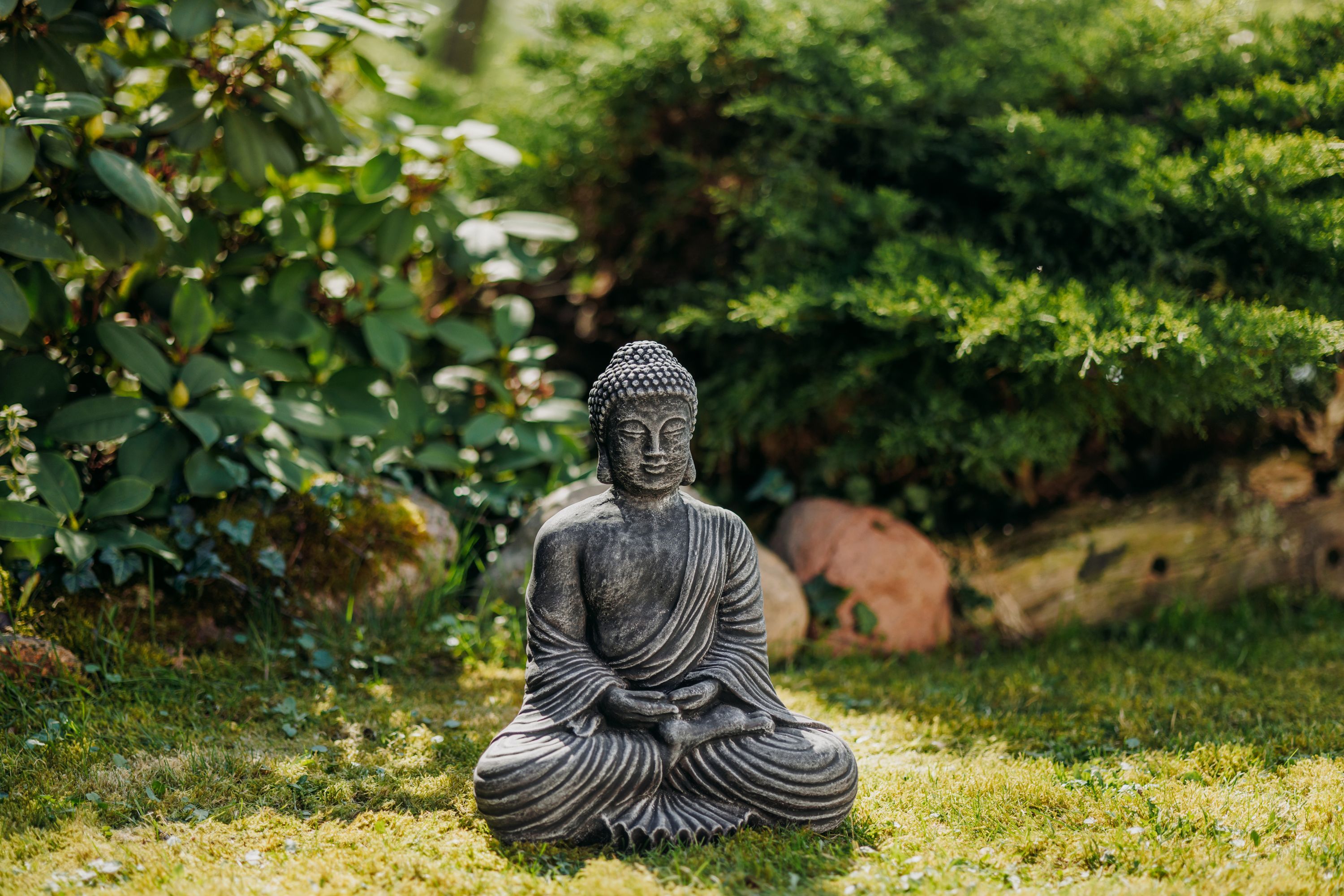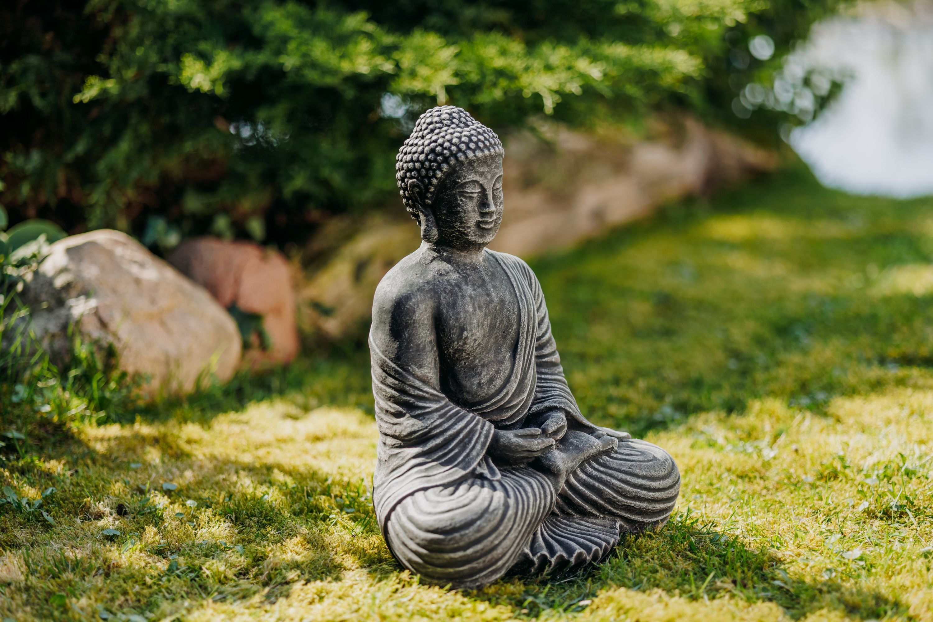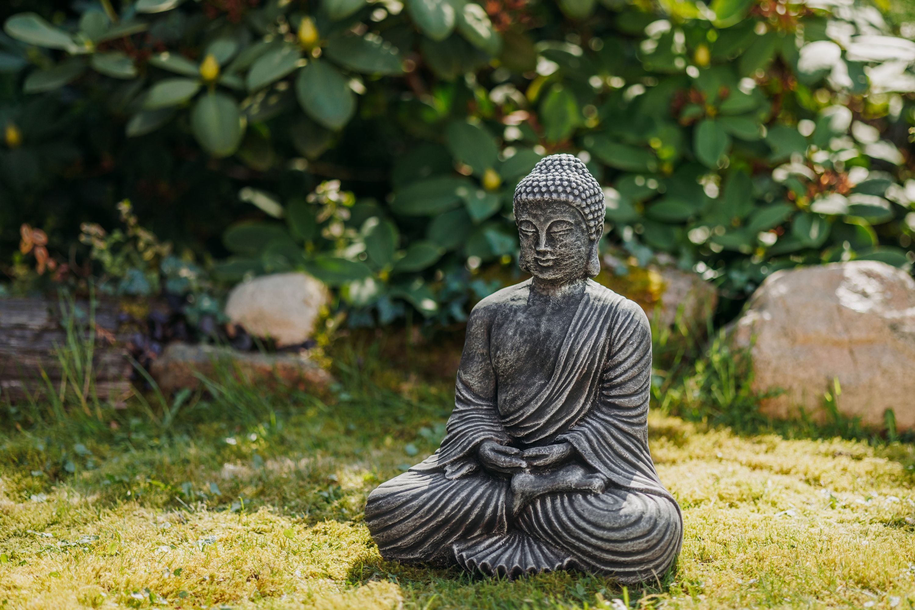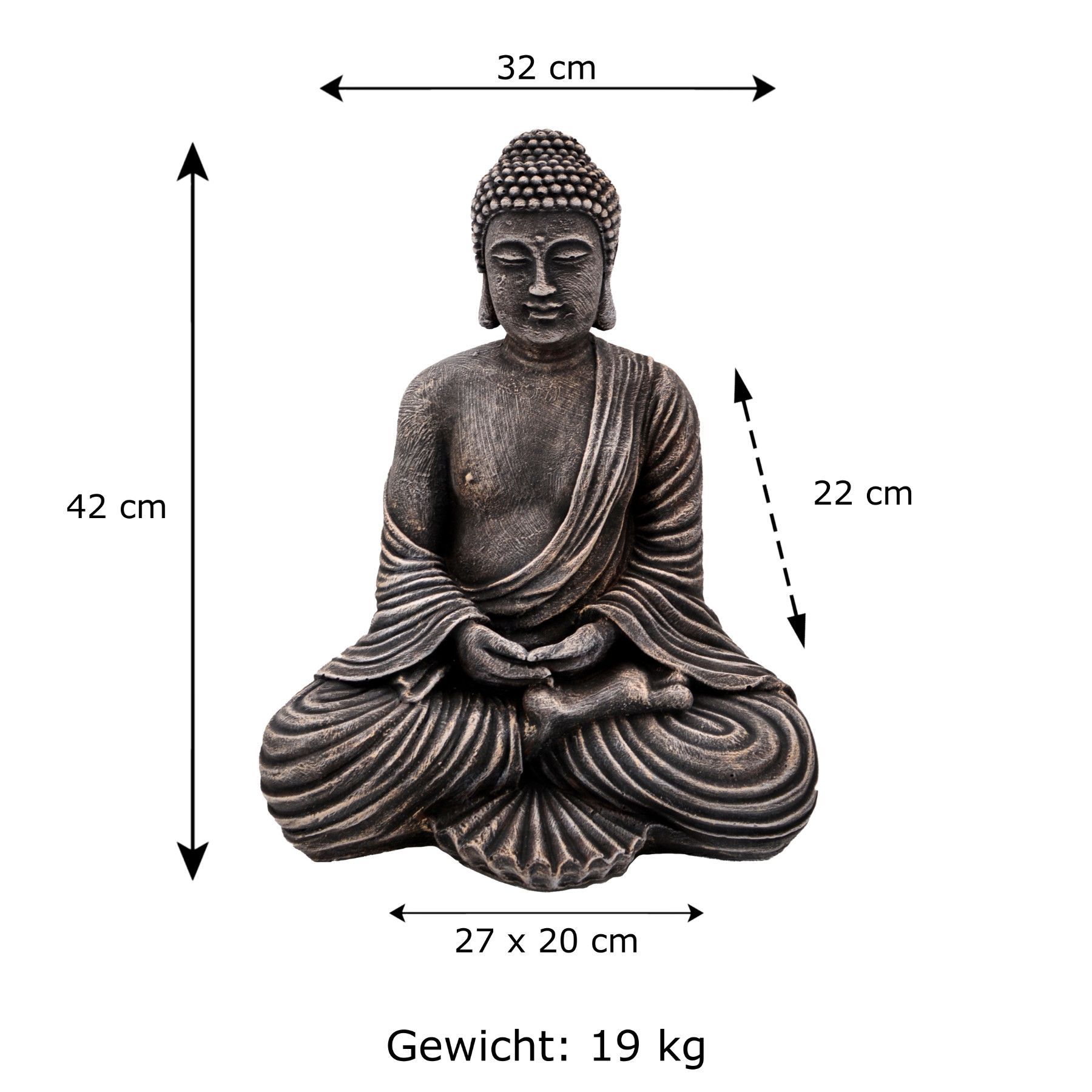 Herrlicher massiver Stein Buddha antik Tempelwächter aus Steinguss frostfest