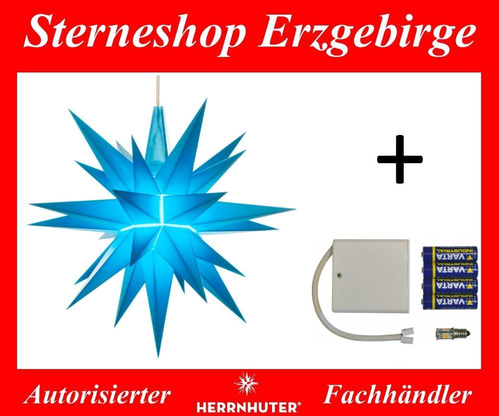 Herrnhuter Ministern A1e blau (LED) Kunststoffstern 13 cm komplett mit Batteriehalter